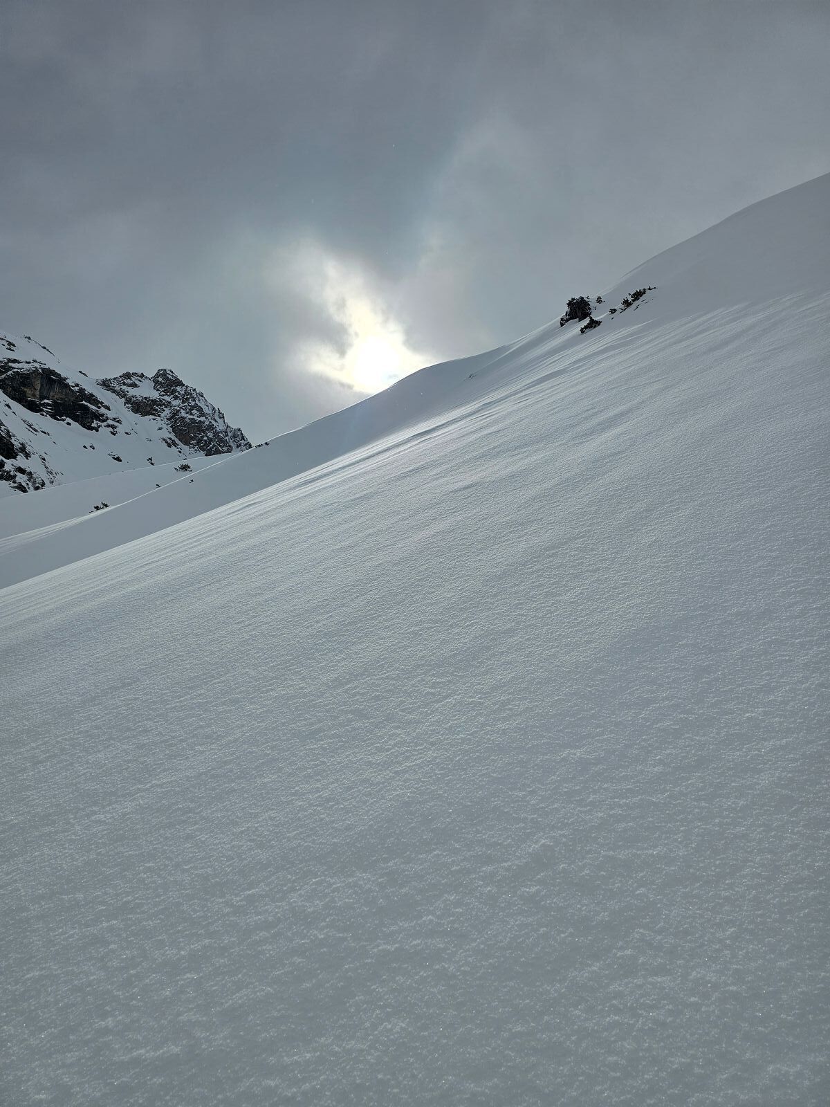 Lawinengefahr ging heute gegen Null, eher waren Abrutschen oder vom Winde verweht werden die Probleme.