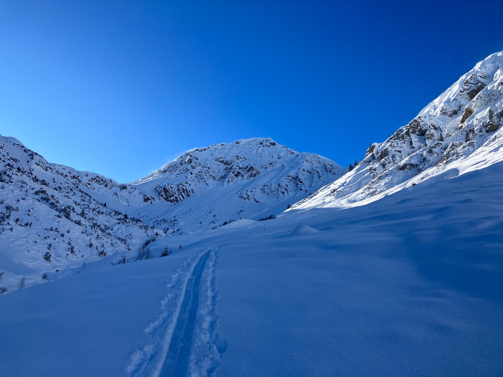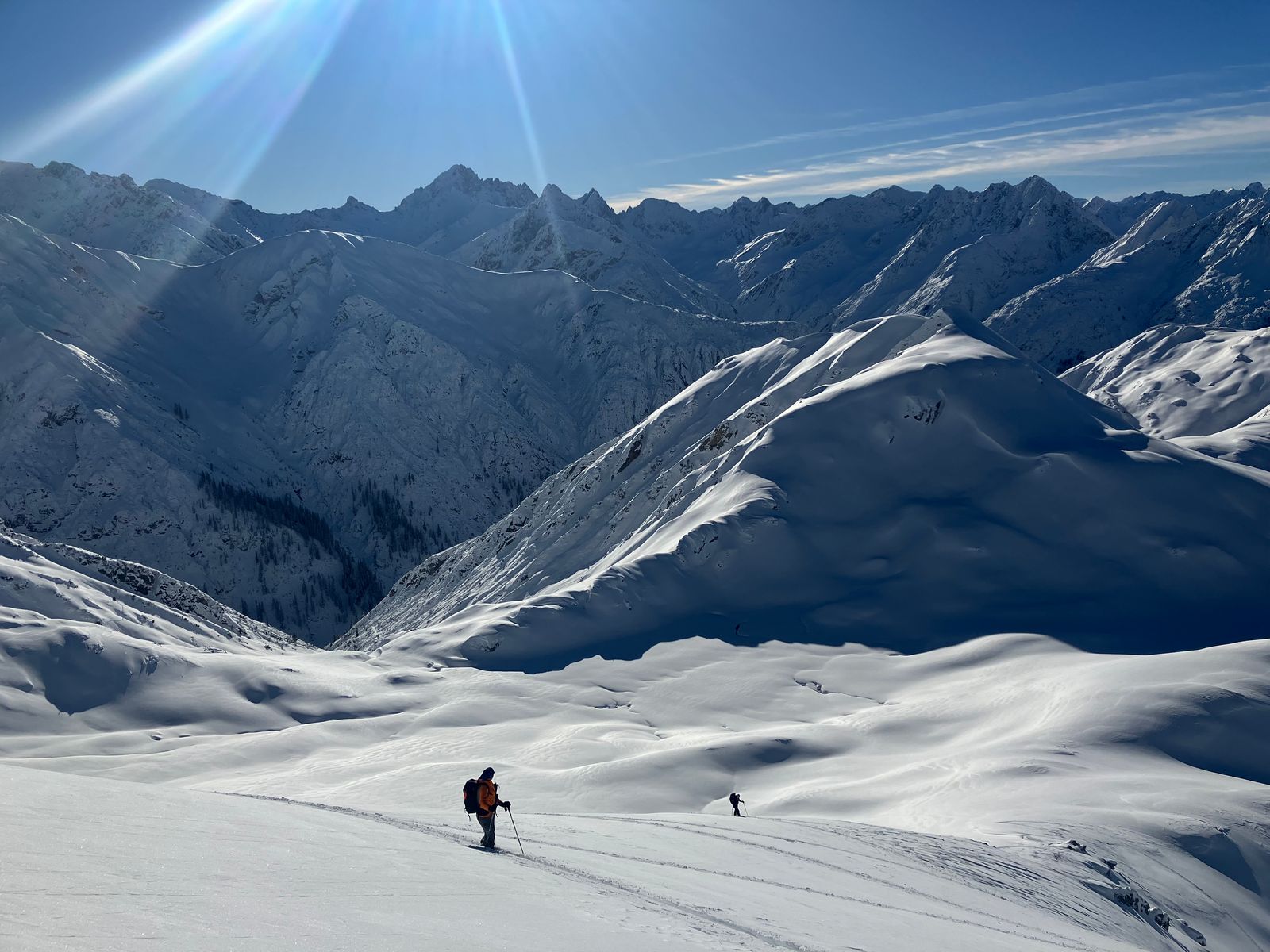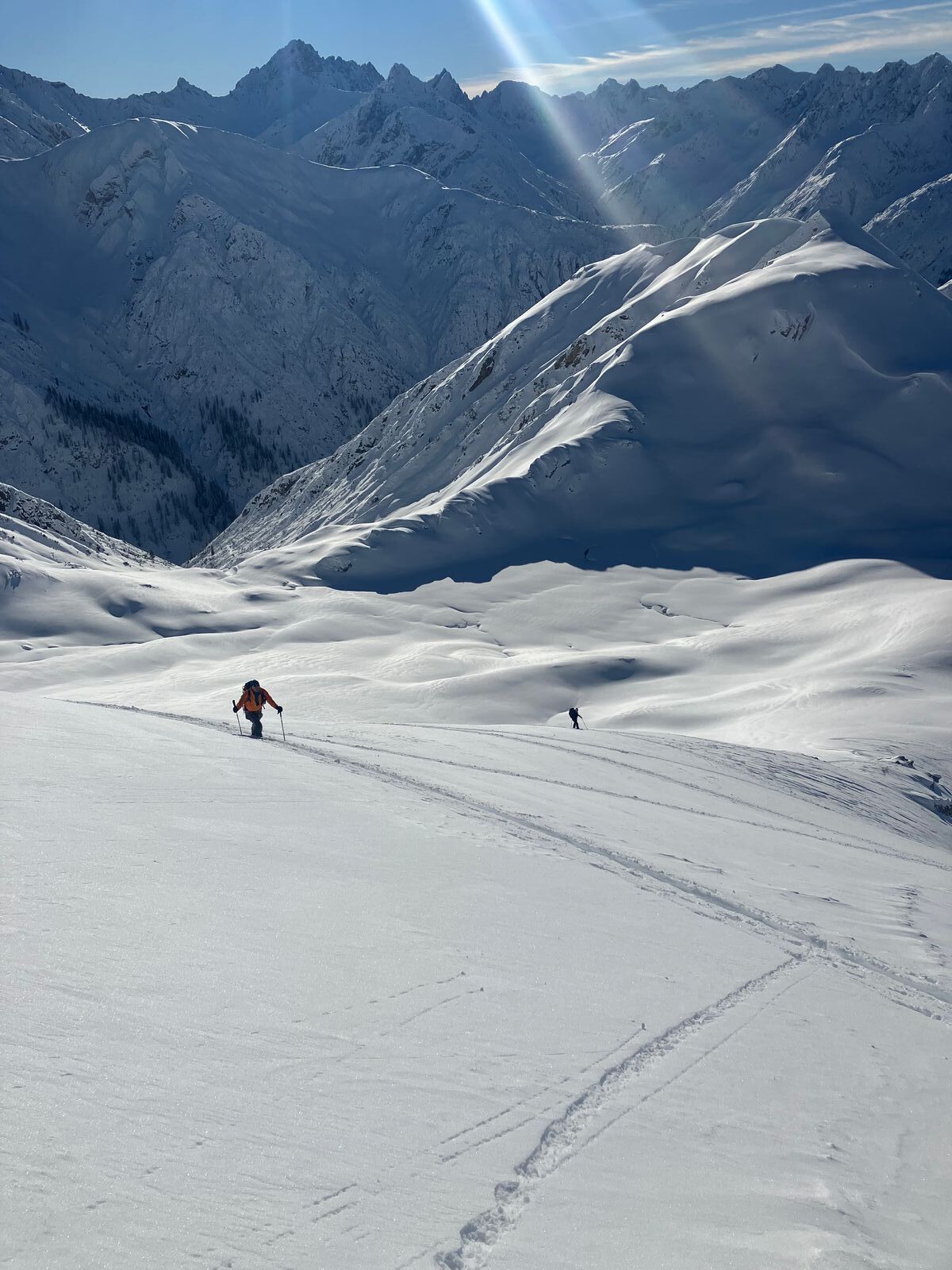 Erst danach wird’s besser: Richtung Pleisenhütte kann man dann größtenteils endlich aufsteigen, ohne die Ski ständig wieder abzuschnallen