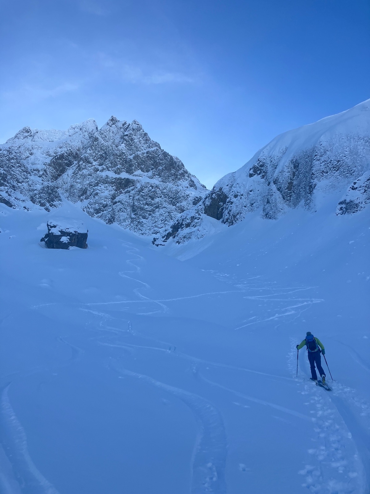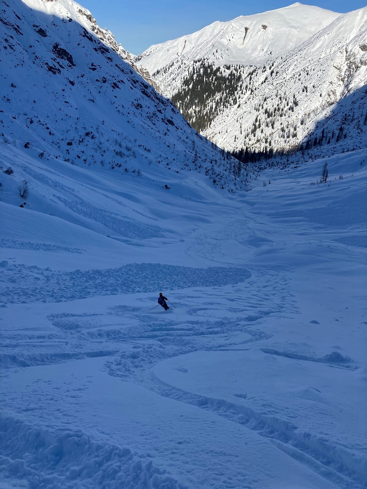 Der Abschnitt durch die Latschen ist dagegen eher wieder eine Mischung aus Abfahren, Tragen und vorsichtigem Balancieren.