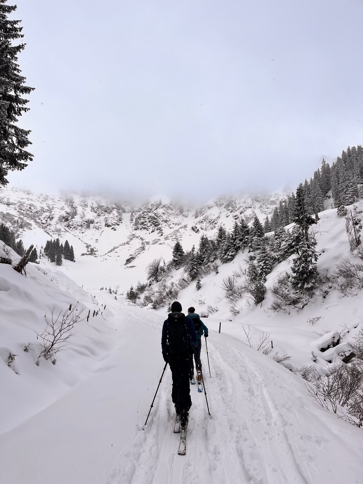 Tour in den Auracher Graben Richtung Staffkogel. Bis zur Abzweigung Hochwildealm immer mal wieder kurz abschnallen, danach nur noch für die Bachquerungen.