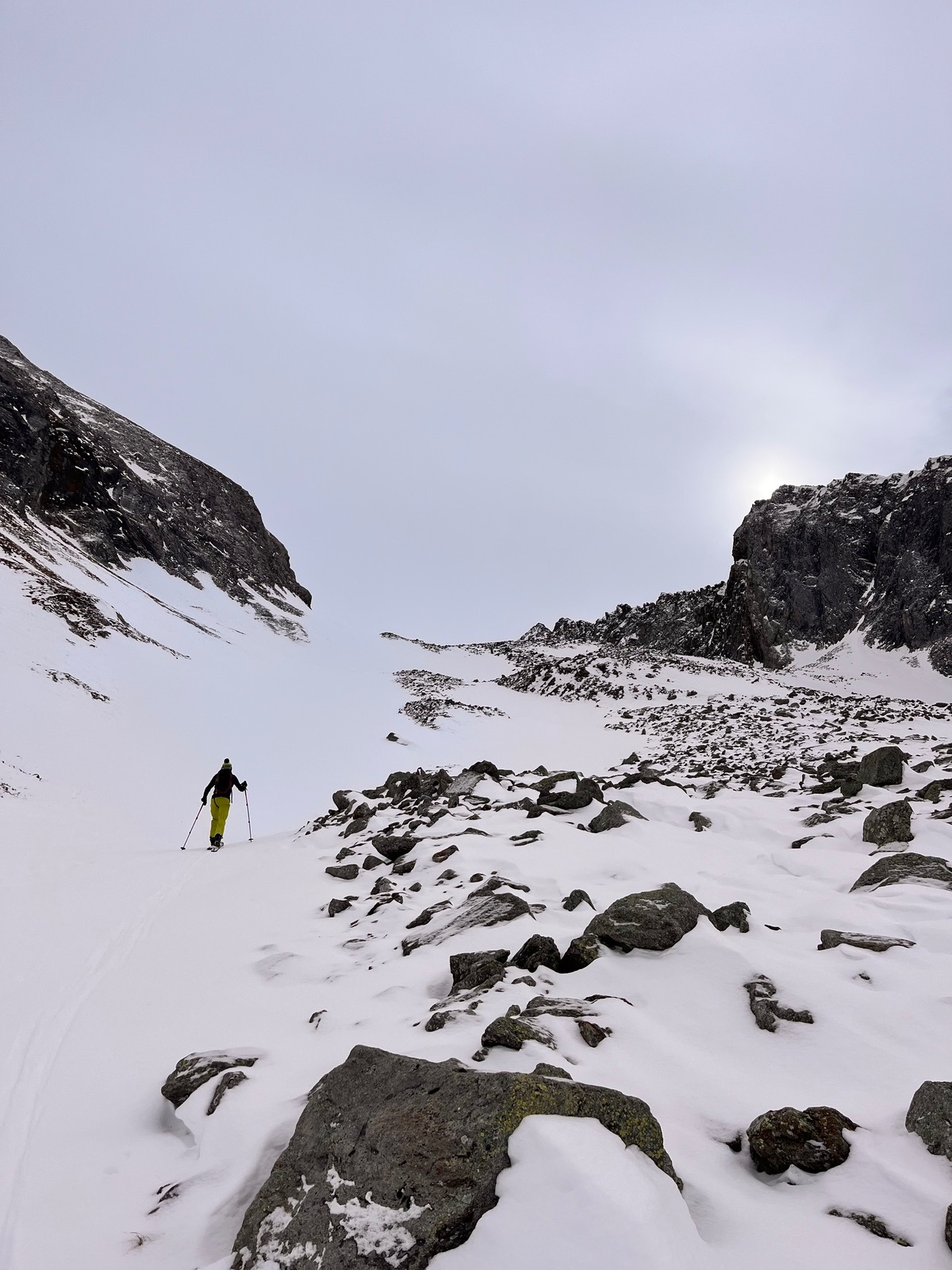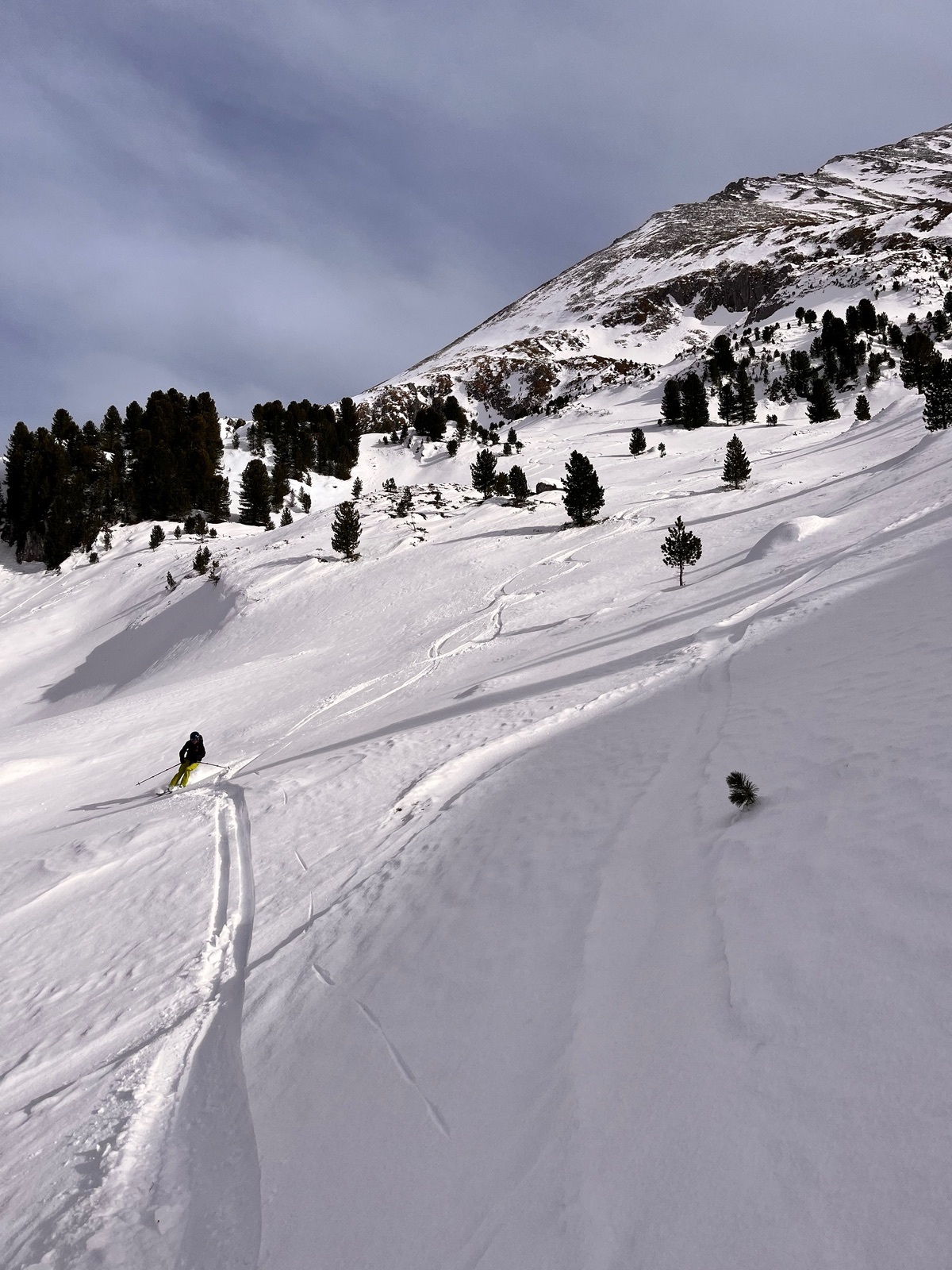 Dann Aufstieg zum Joch vor dem Staffkogel. Hier haben wir abgefellt, die letzten Höhenmeter hoch zum Staffkogel klangen nicht lohnend bei den Leuten, die ihn runter sind. Abfahrt dann direkt runter in den Auracher Graben. Schnee noch erstaunlich pulvrig, daher recht spaßig.
