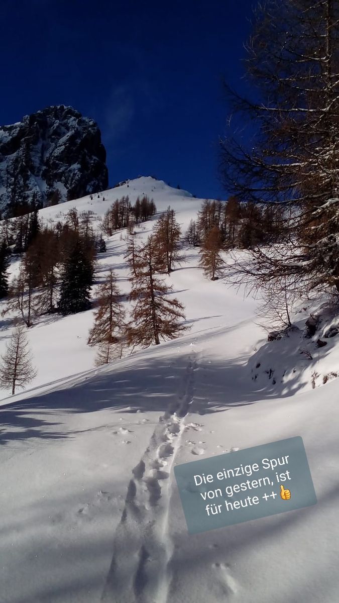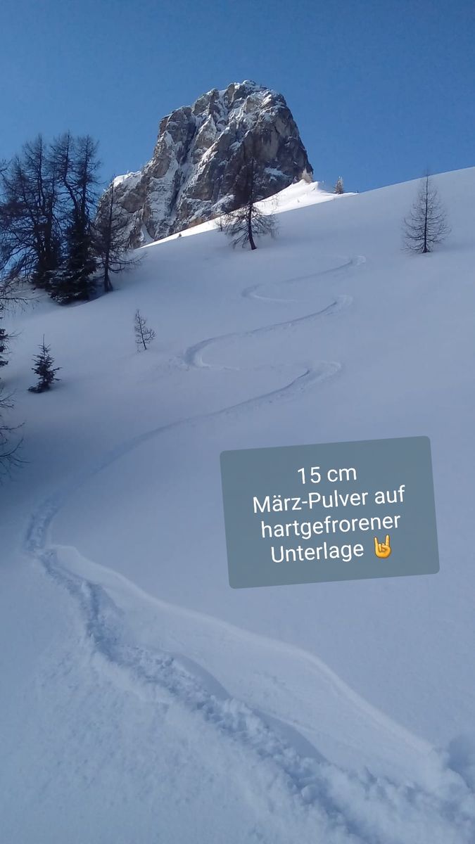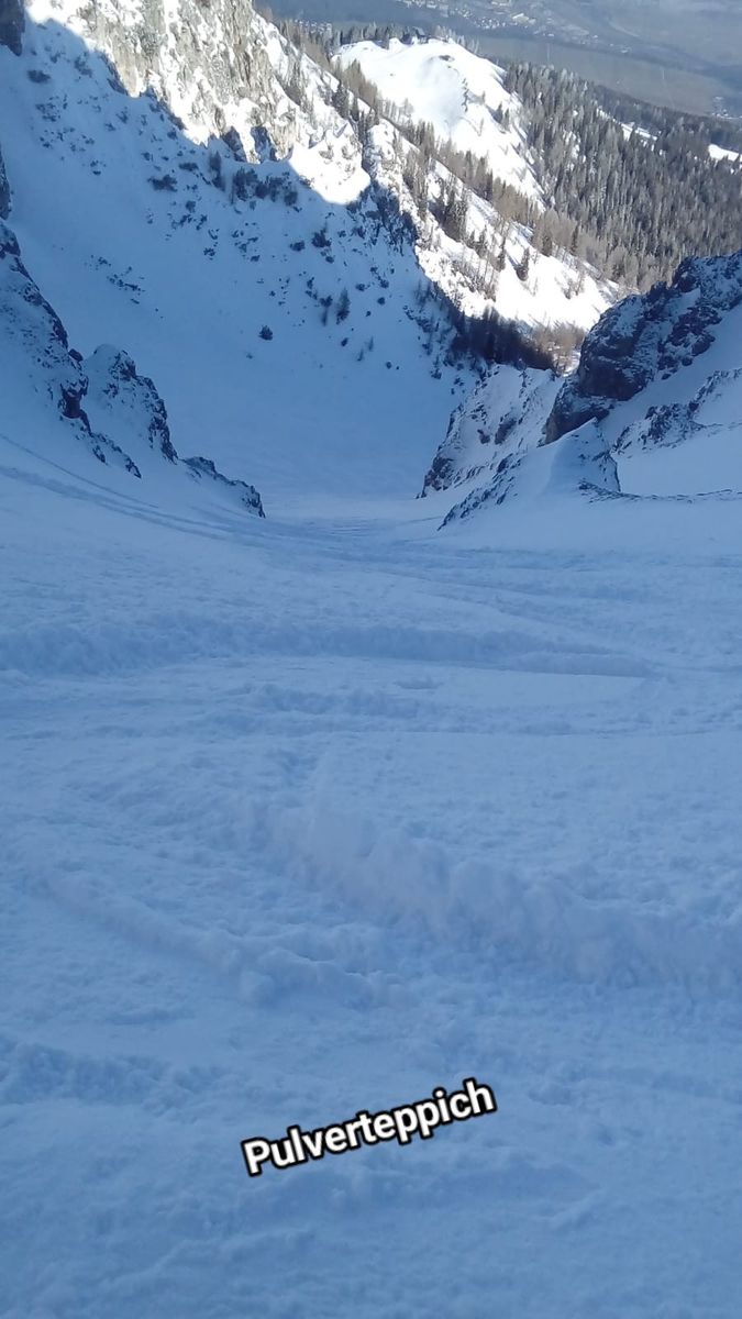 Vor der "Hitzewelle" in dieser Woche hatte ich den Wunsch, keinen Triebschnee, keinen Harschdeckel, Kälte, Sonne und Pulver. Perfekt, alles wunschgemäß vorgefunden. Die "Mayerrinne" habe ich gemieden, weil die jährlich zunehmden "Kolonnen" , ausgehend von der Talstation Axamer Lizum, nerven. Alternativer Aufstieg folglich von der Nordost Seite. Gestartet bin ich 6.15 Uhr. Evtl. eine halbe Stunde zu spät. Bei der Abfahrt ostseitig hat die Sonne schon leichte Feuchtigkeit produziert. Die folgende Nordabfahrt war mit 15-20 cm Pulver belegt. Bingo! Begegnet bin ich 3 Aufsteigern. Passt!