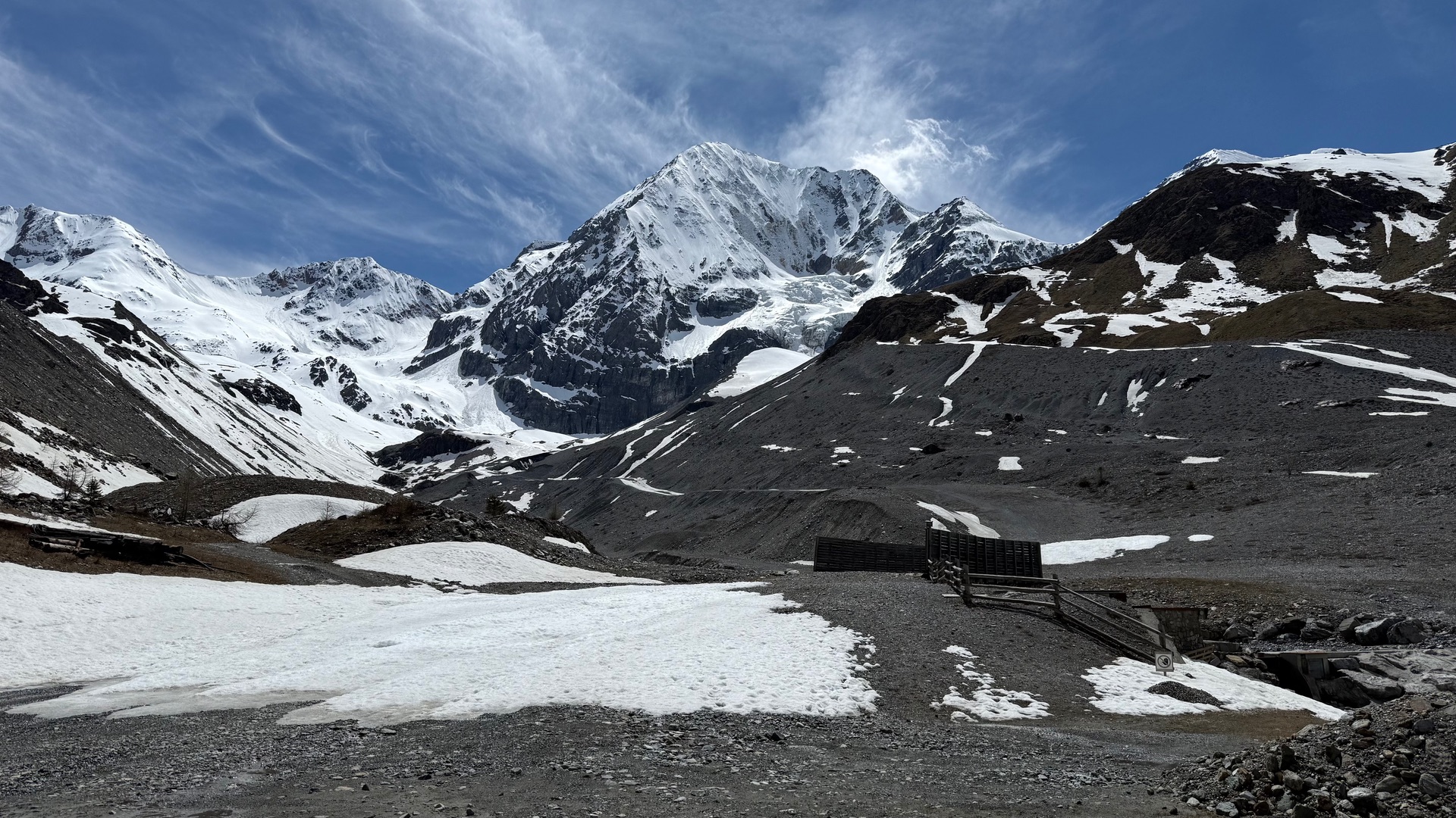 Fazit: Immer noch sehr gute Verhältnisse an der Königspitze! Wer sich den langen Zustieg verkürzen möchte, könnte mit eine eBike bis zur Schneegrenze entlang der Piste fahren (auf recht grobem Schotter!). Dabei müssen zwei alte Lawinenkegel passiert werden, die aber schon ein schmales Stück der Straße freigegeben haben.