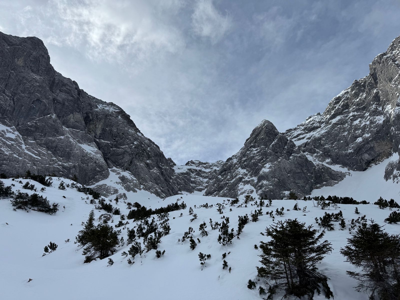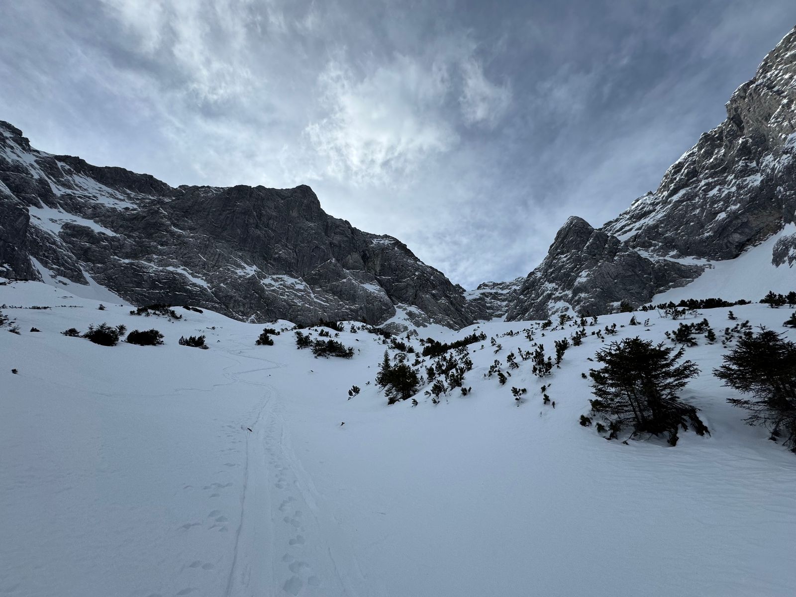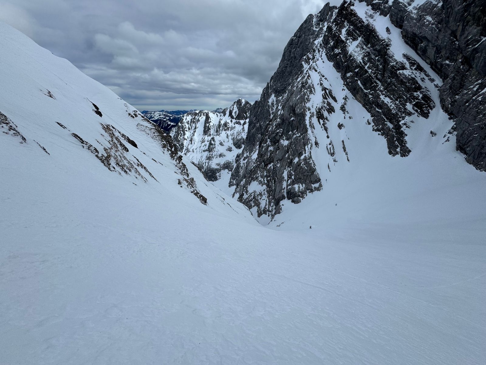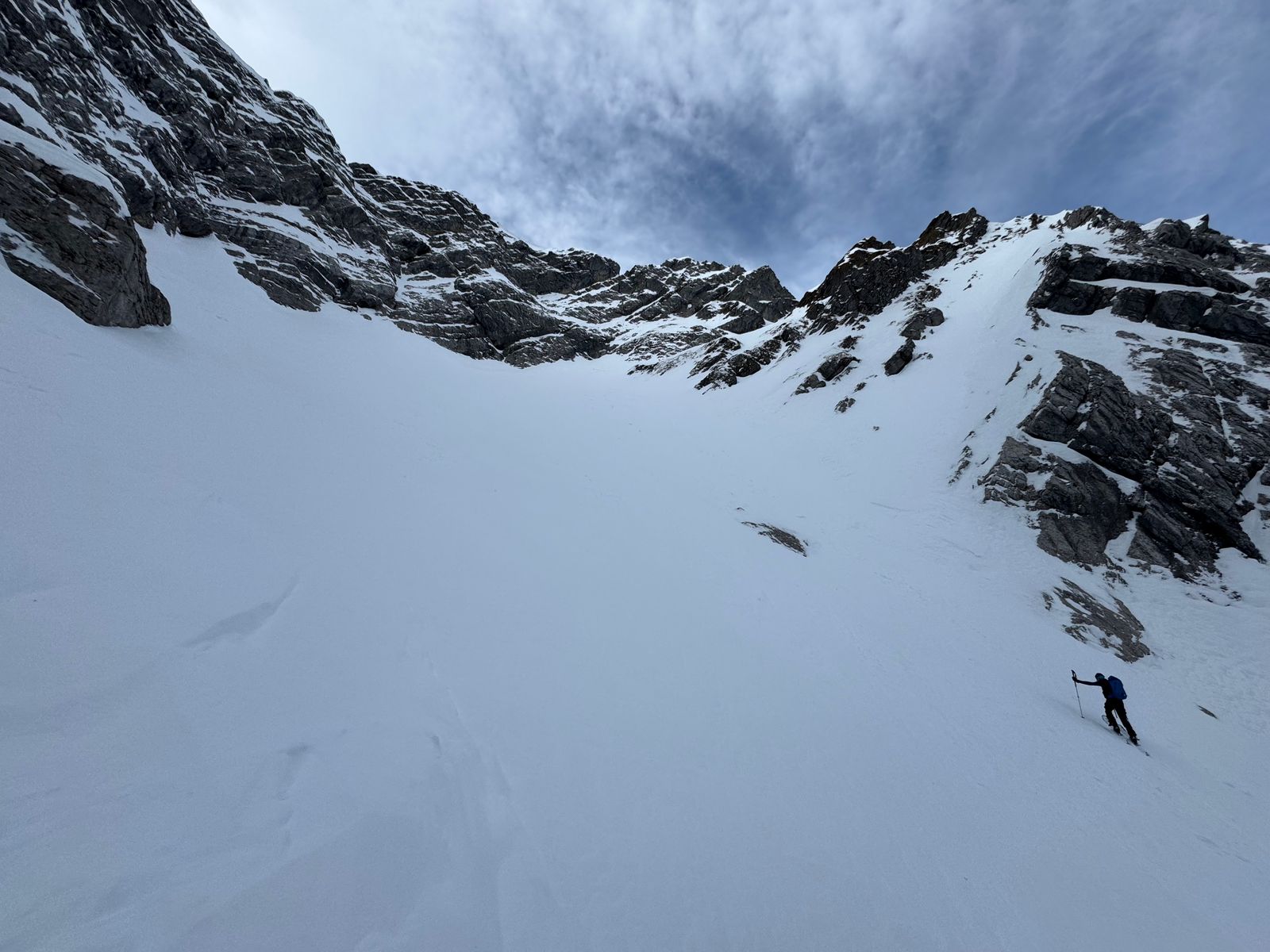 Weiter oben im eigentlichen Kar dann absolut super, aber Schnee schon teilweise sehr verpresst. Schöne Abfahrt aber bei den aktuellen Verhältnissen sind die 3,5h wohl eher schwer zu schaffen. Besser etwas mehr Zeit für Pfadfinder-Arbeit einplanen.
