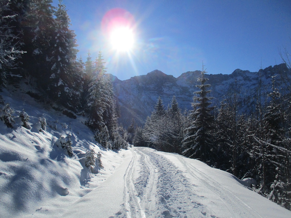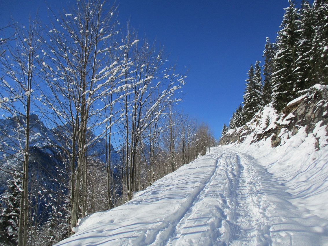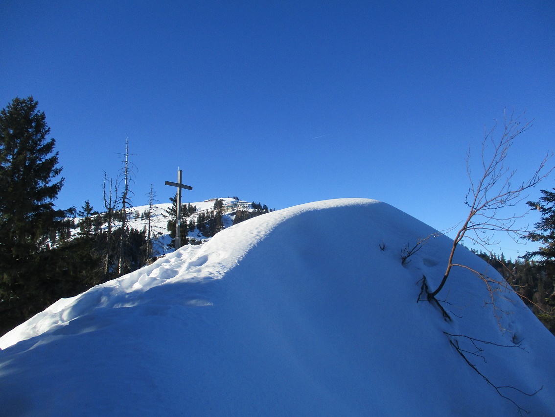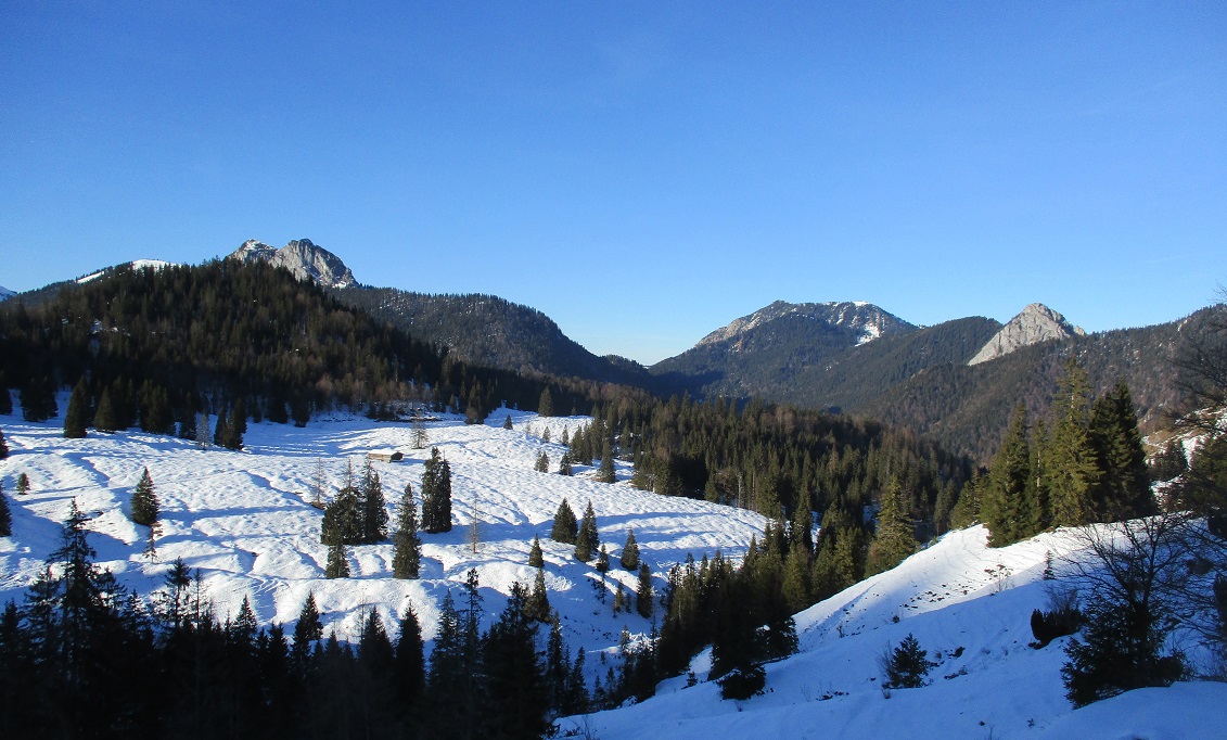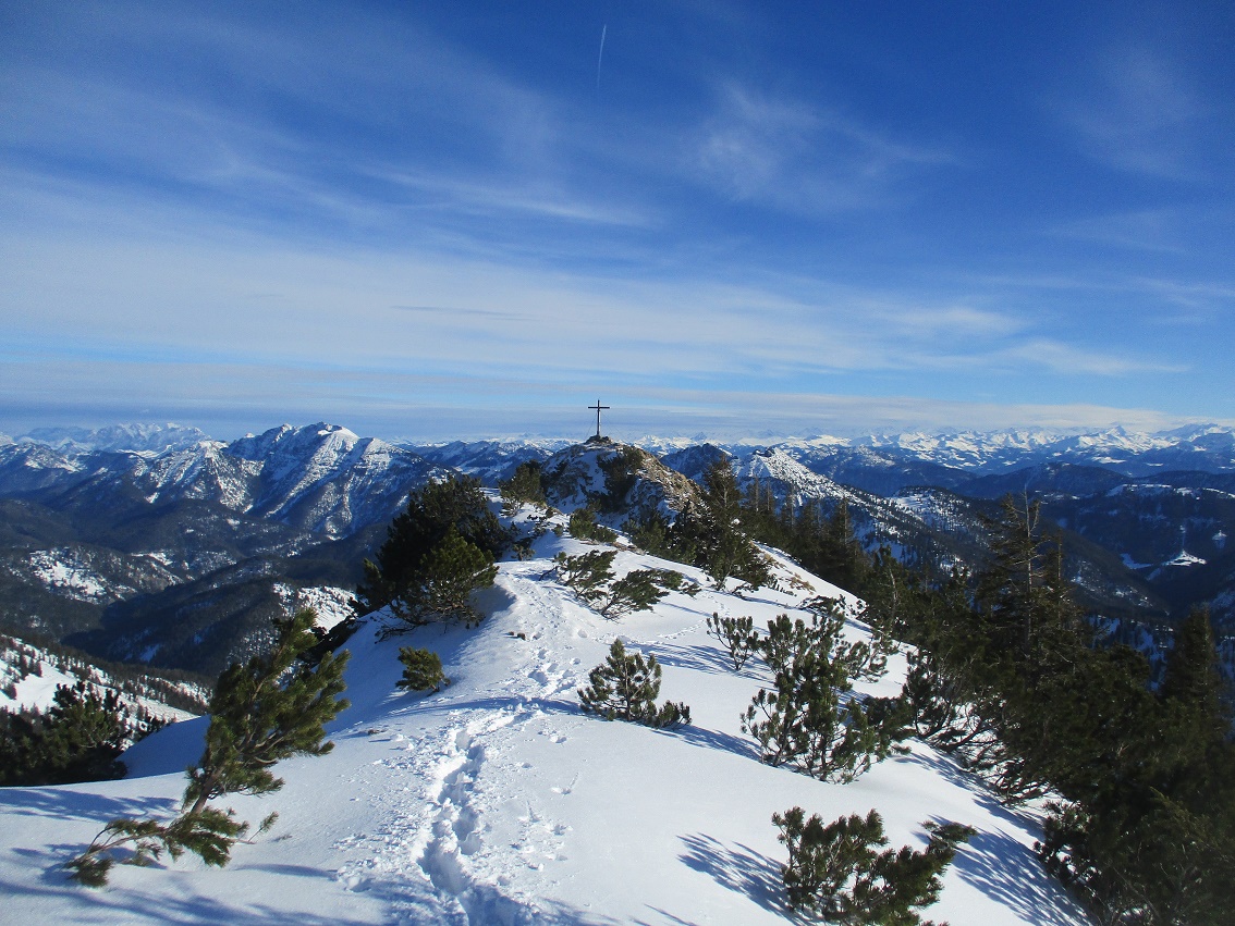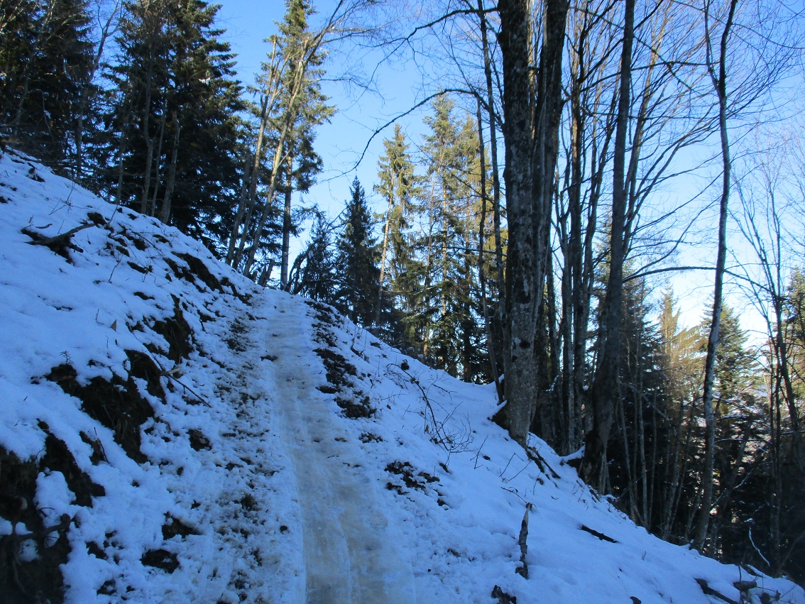 Tourenverhältnisse: Na ja , der Aufstieg war das schönste / Schnee vom P. weg / Rodelbahn hart und eisig aber fahrbar / statt einer Skispur gab es heute eine breite, feste Trittspur / nur oberhalb der Königsalm in den Schattenhängen noch Pulverschnee / sonst harter Altschnee - in der Sonne Sulz - auch teilweise Bruchharsch war geboten