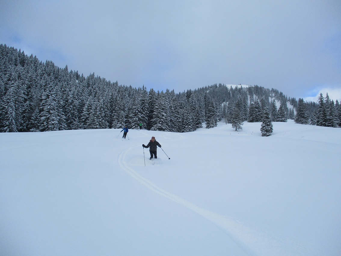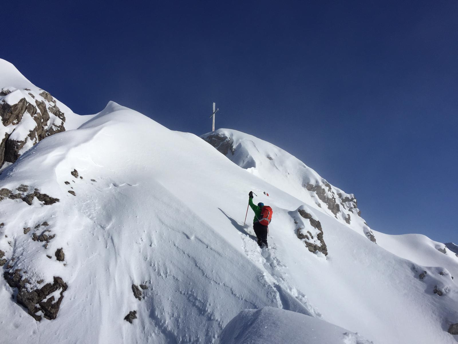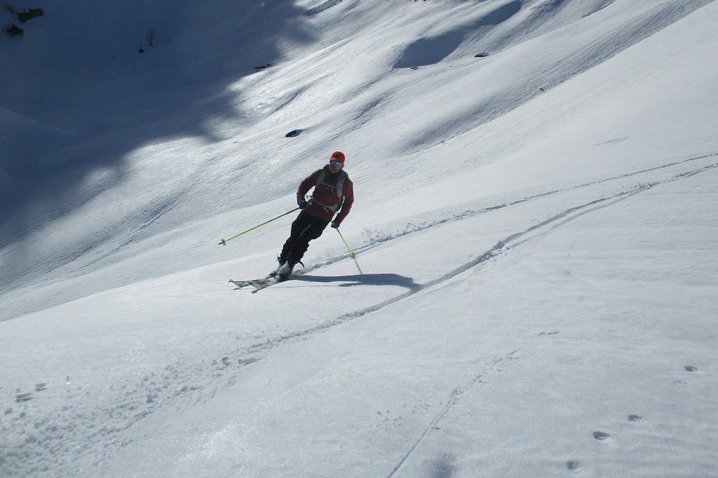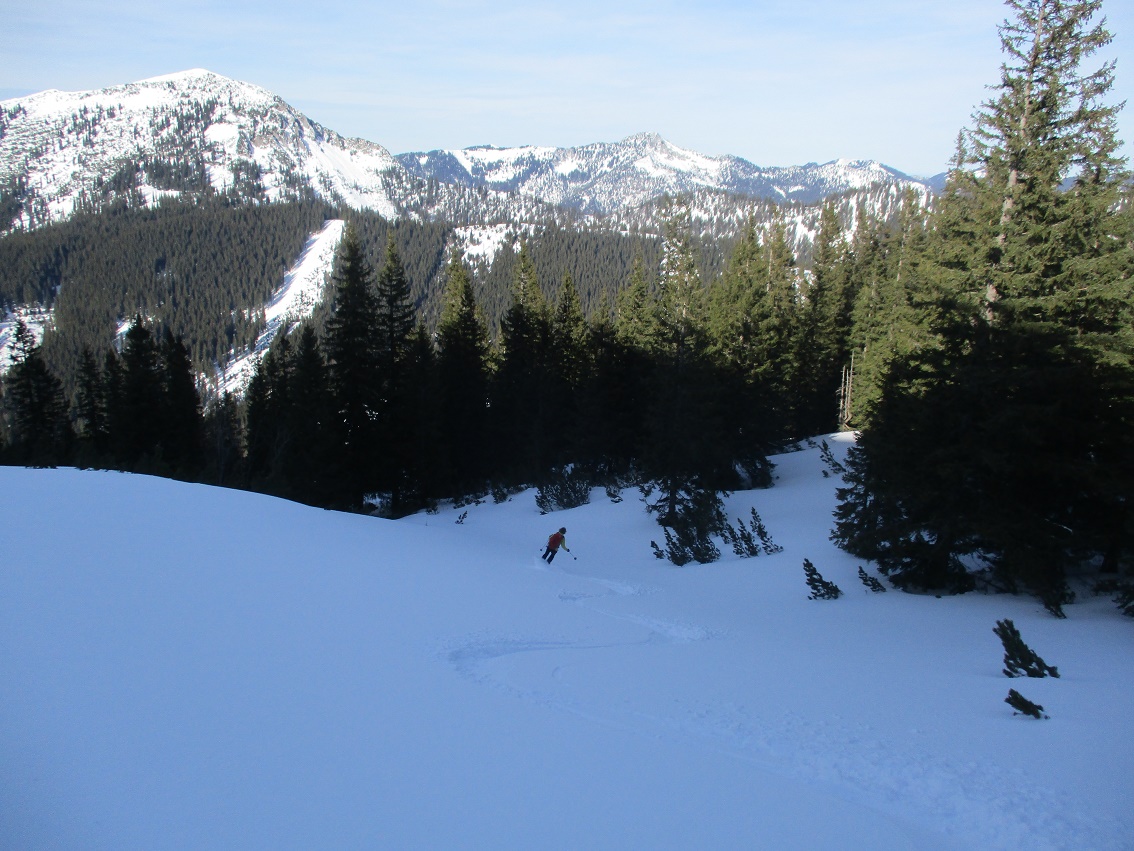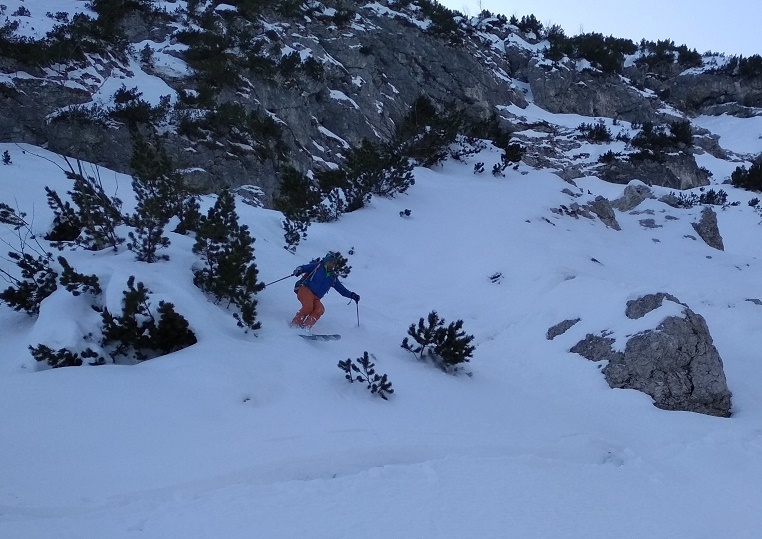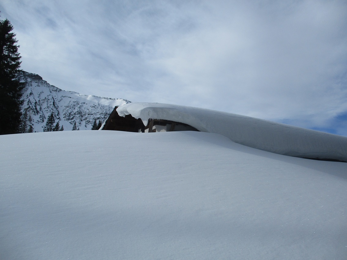 Tourenverhältnisse: Sehr gut / von 10 bis 20 cm schöner Pulverschnee auf tragendem Altschnee / die Sonne zeigte sich sogar kurzzeitig