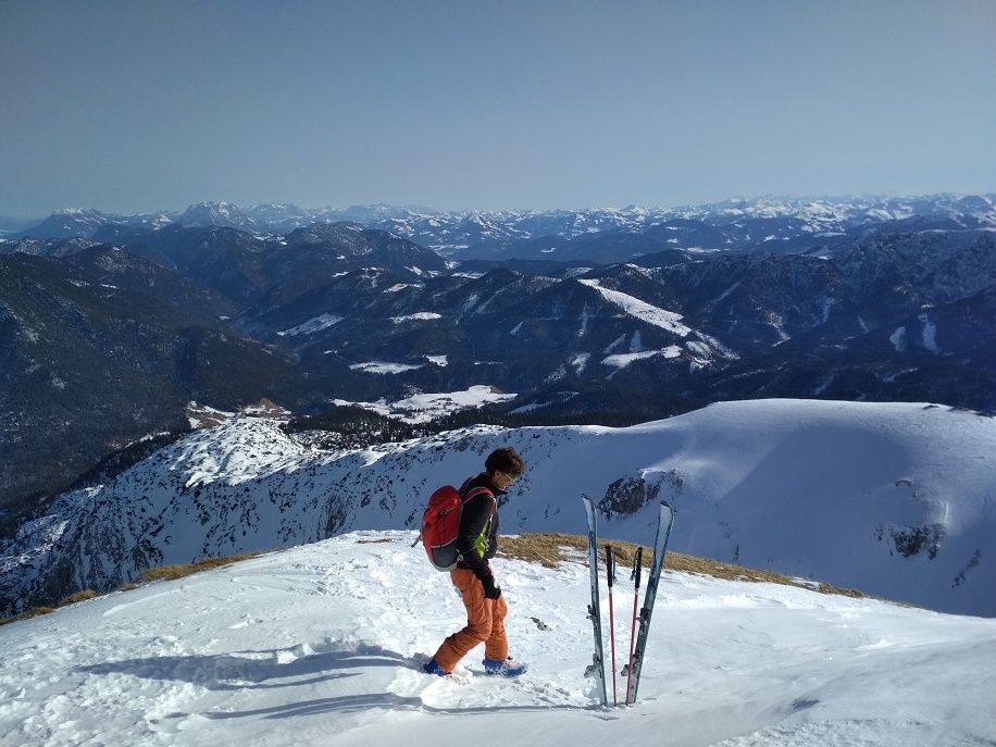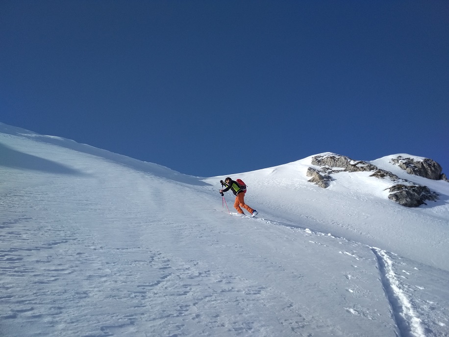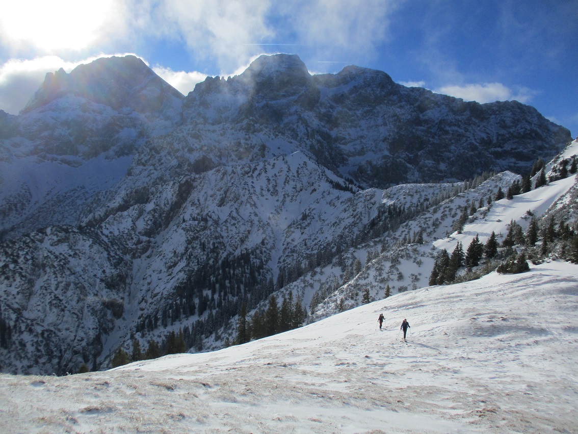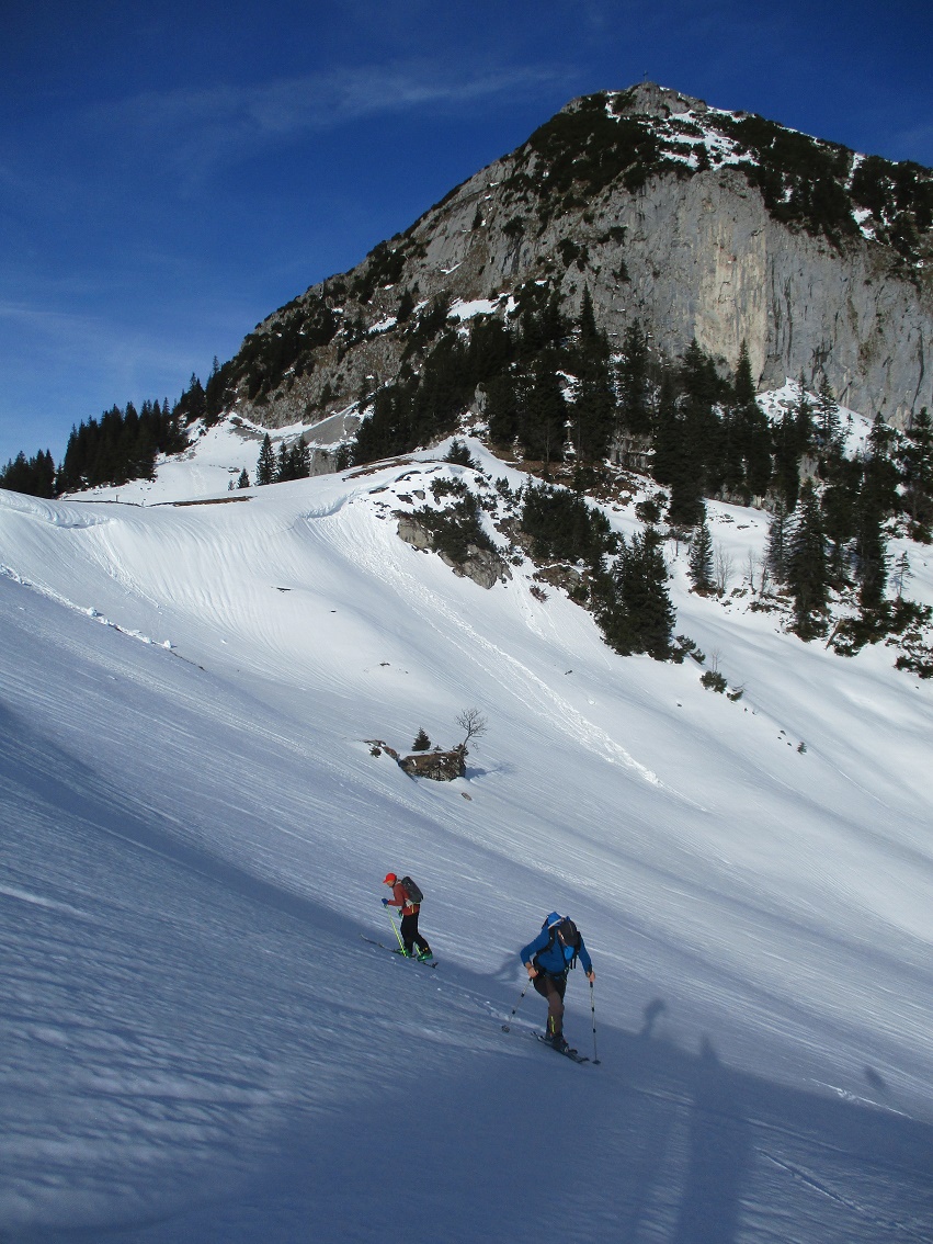 Tourenverhältnisse: Gut aber ausbaufähig ! / es braucht Neuschnee / Pulverschnee - Schnee mit Schmelzharschdeckel - verglaste, abgeblasene Stellen und kurzzeitig Pappschnee = es wurde nicht langweilig / Gipfelanstieg zur Rappenklamm nun gespurt