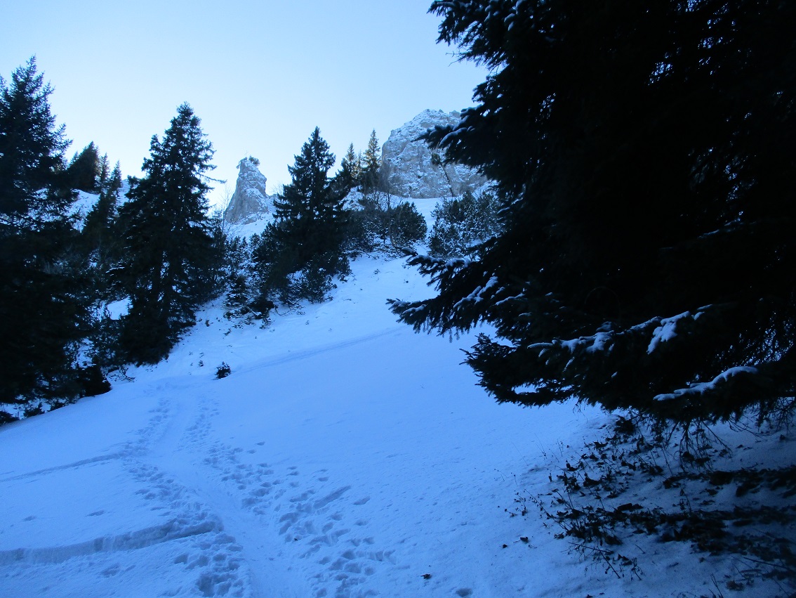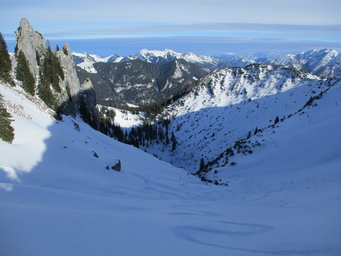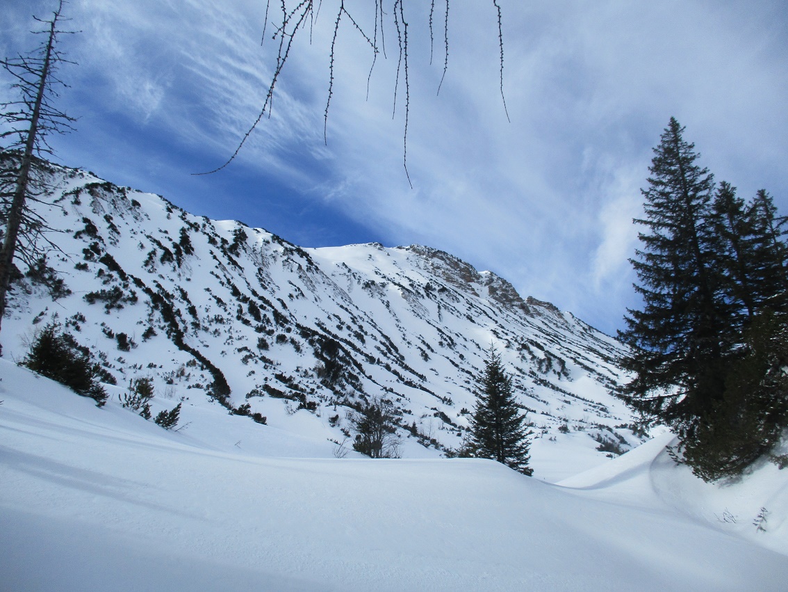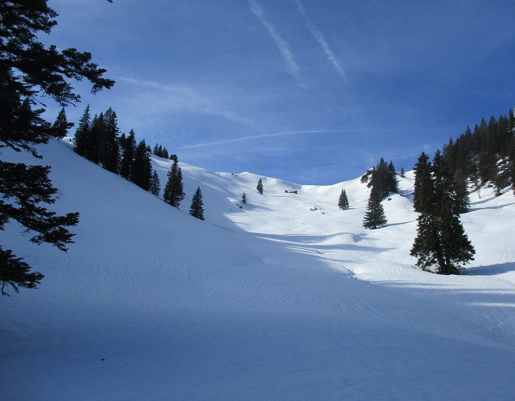Tourenverhältnisse: Gut / ausreichend Schnee vom Start weg / meist Pulverschnee : man muß aber schon den Schatten suchen / gute, teils harte Aufstiegsspuren / tolle Ausichten in einem schönen, lohnendem Gebiet
