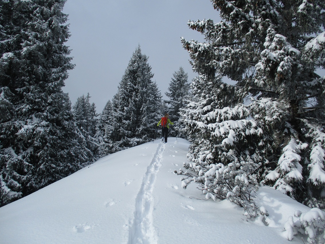 Tourenverhältnisse: Gut - oben sehr gut / Schnee vom Start weg / oben hat's richtig viel Schnee gemacht / tolle Abfahrt durch den Südhang / Spurarbeit zum Rosskopf / im Stockhang( Schneise ) etwas vorsichtiger abfahren ! / Forstweg geht flott : Dank schnellem Schnee / Heute noch Pulverschnee !