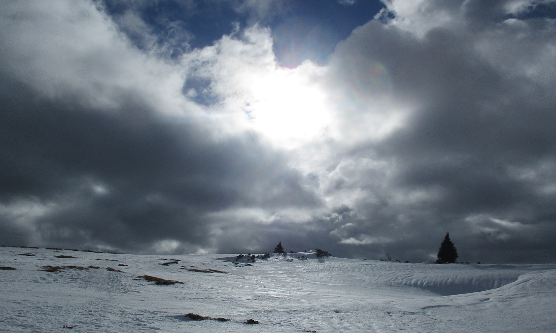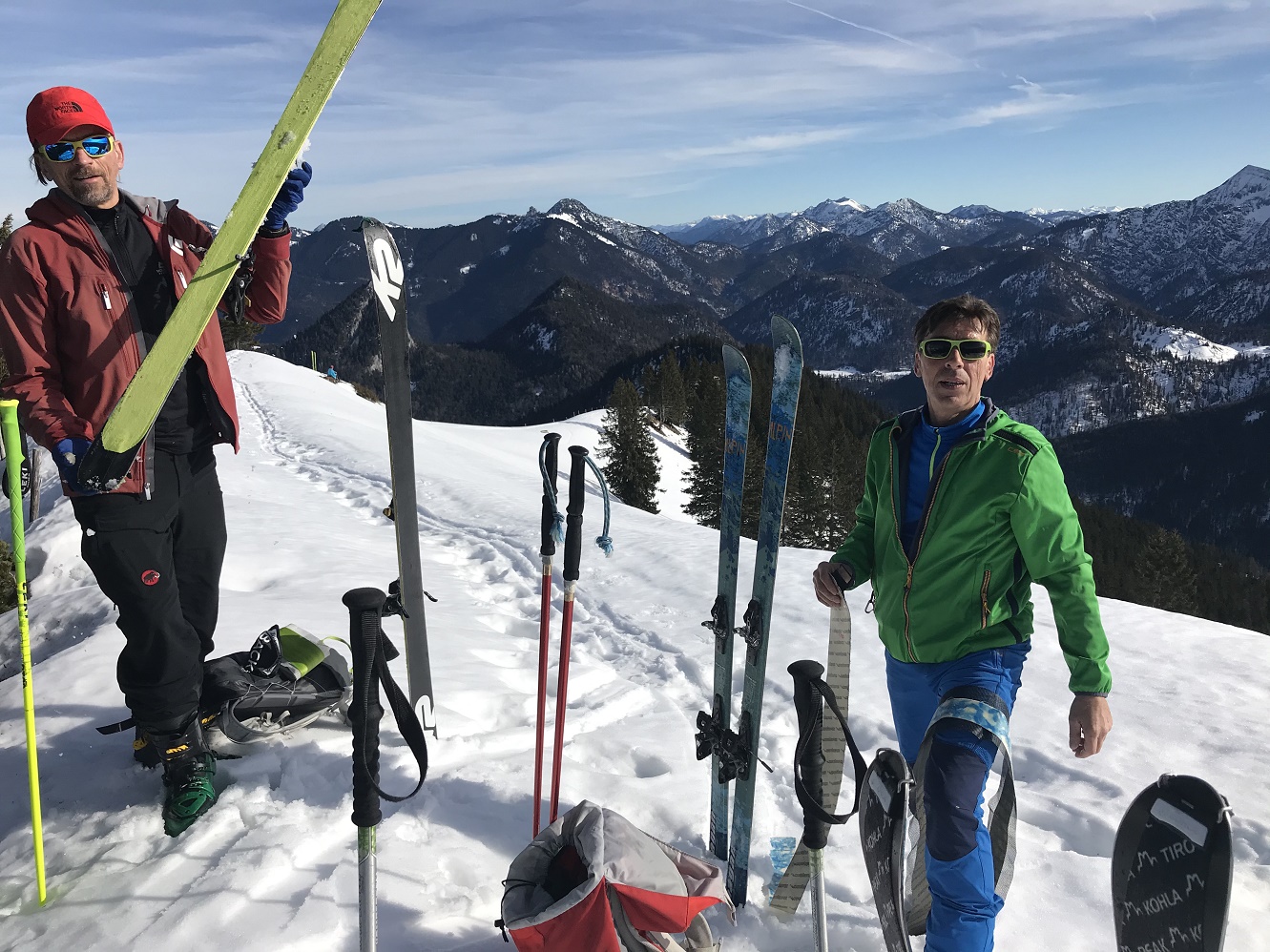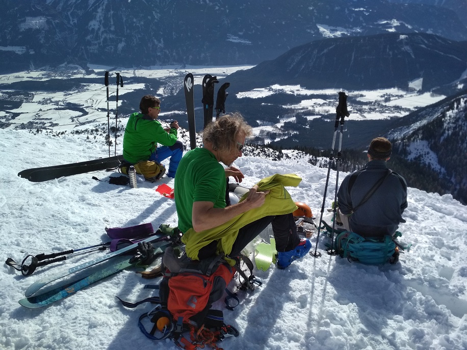 Tourenverhältnisse: Gut bis sehr gut / 2 - 20 cm Neuschnee auf tragendem, harten Harschschnee / Plusgrade / in den schattigen Nordhängen noch Pulverschnee / noch viel Platz für eigene Spuren