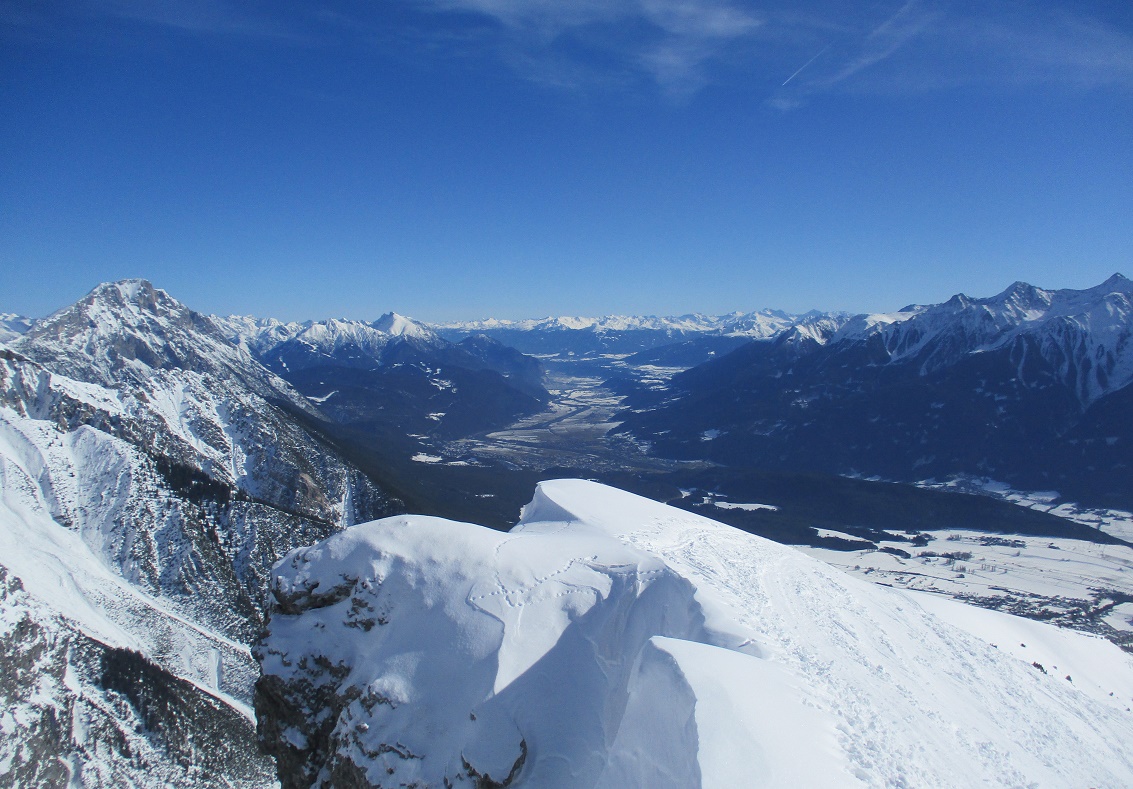 Tourenverhältnisse: Besser als Nichts / Piste recht gut in Schuss / Über dem Kolbensattel anfangs ruppig / Gipfelhänge pulvrig / Tipp : früh starten wg. der Leit