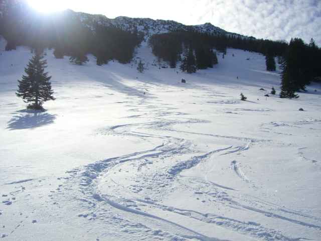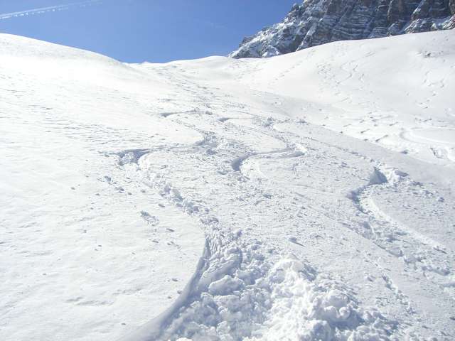 Tourenverhältnisse: am Di abends aufs Stahlhaus (insgesamt 4 Gäste), Mi 6:20 Start Route grossteils wie in TT beschrieben, wir haben halt den Schlumkopf auch noch mitgenommen, am Schneibstein keine(!) Harcheisen nötig (auf der ganzen Reibn nicht) absolut lässige Spur, kaum Wind, Funtenseetauern mit Ski bis zum Gipfel, Abfahrt zum Kärlingerhaus, am Do erst ganz normal zur Hundstodscharte und Abfahrt in die Schönwies, dann sind wir aber aufs Seehorn und runter nach Weissbach/Lofer da wir mitgekriegt haben, dass das Wimbachgries fast vollständig aper ist. Abfahrt vom Seehorn bester Firn und mit 3x abschnallen mit Ski bis Parkplatz