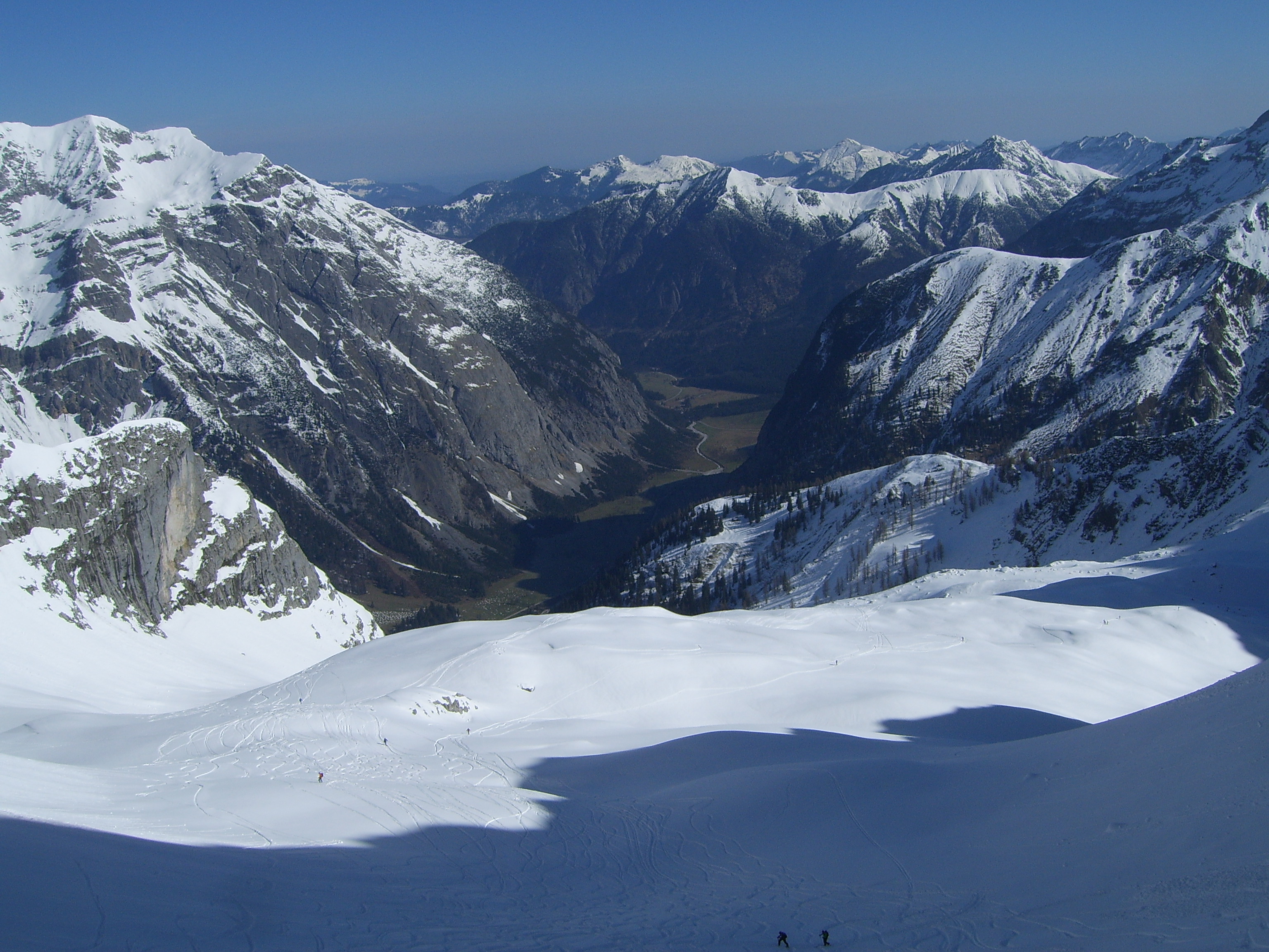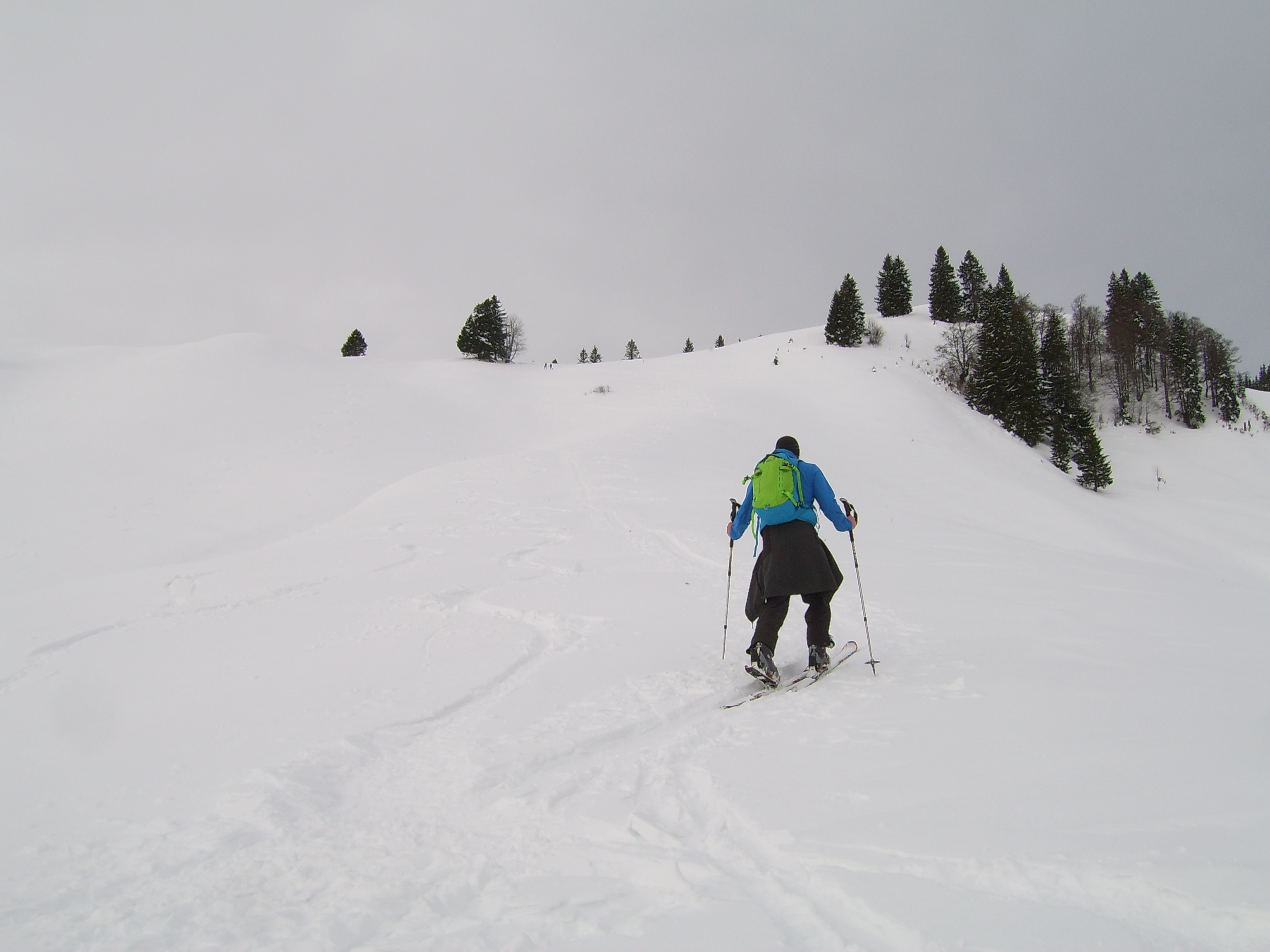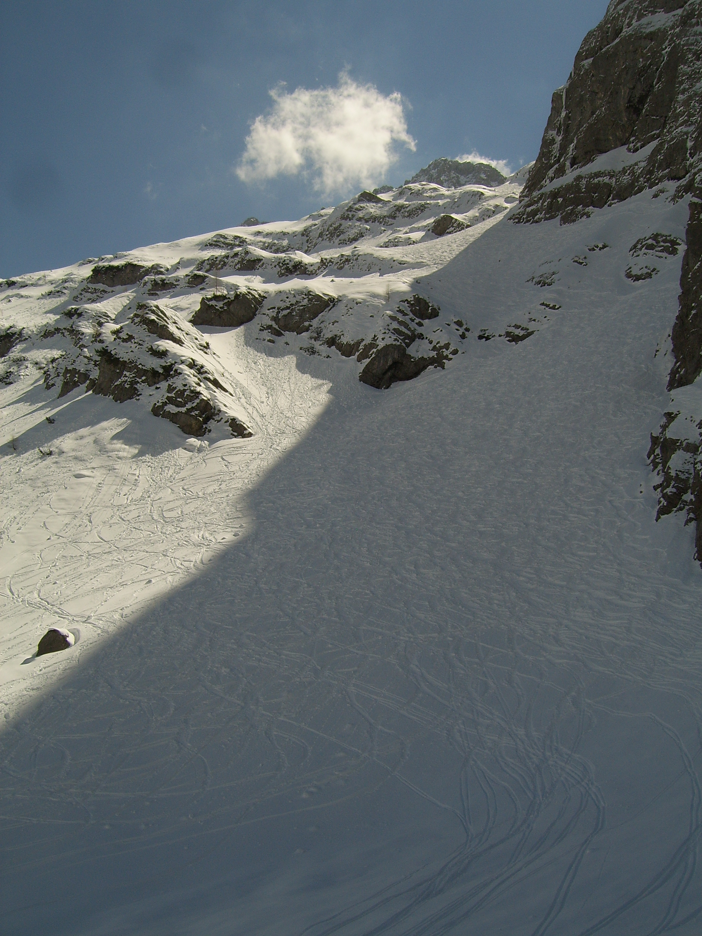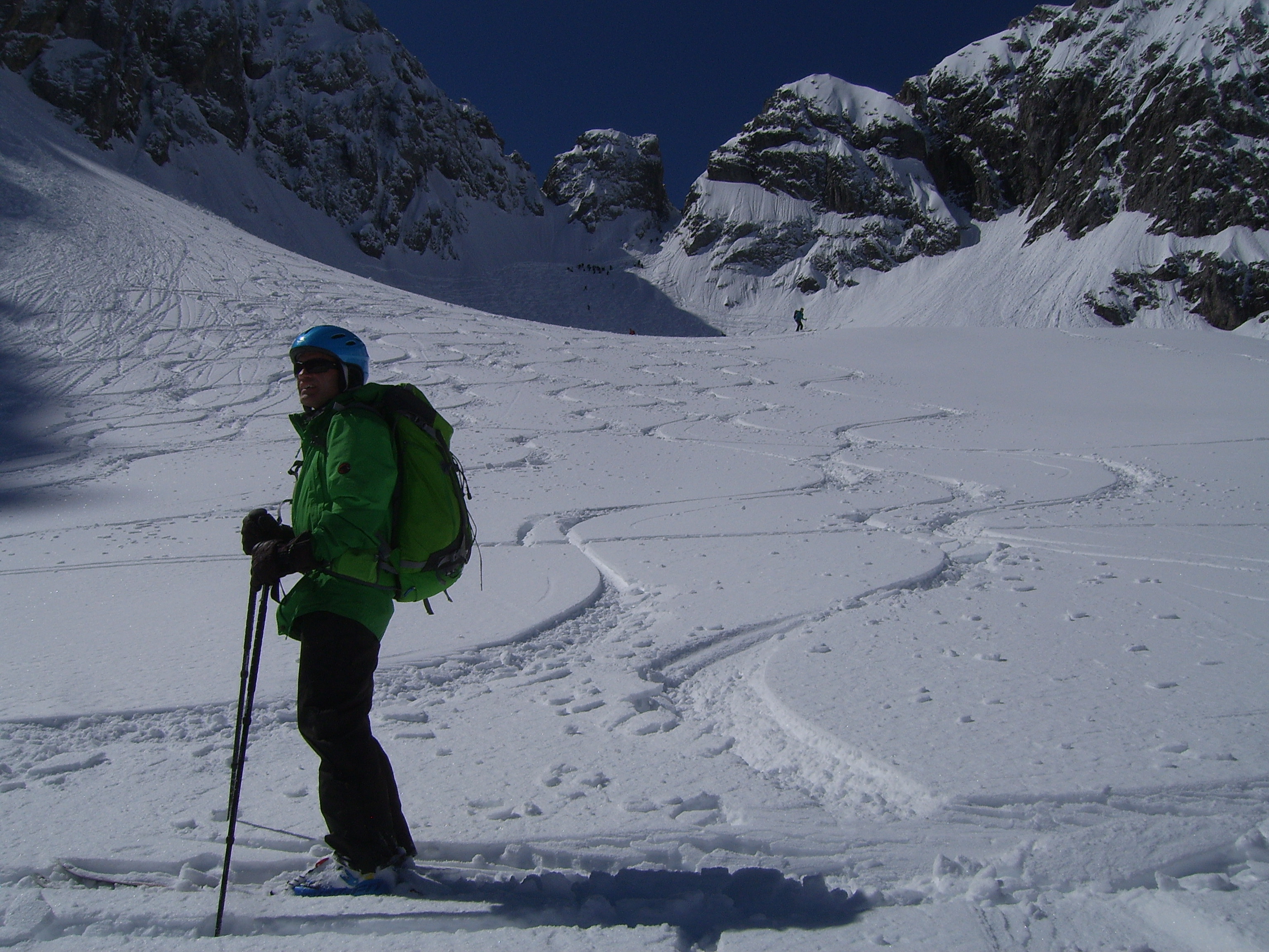 Tourenverhältnisse: Der Aufstieg zur Hütte war am Donnerstag noch auf den frisch gefallenen Neuschneeresten möglich. Jetzt beginnt der Schnee erst nach dem Vernagtegg auf ca. 2500m.Sehr gute Bedingungen auf den durchgeführten Touren. Kaum Spalten gesehen, nur weit abseits der üblichen Routen. Schnee: zwischen 10-30cm windbehandelter Pulver, jedoch super zu fahren. Kammnah allerdings hart gepresst oder abgeblasen. Von Tag zu Tag zunehmender, teils starker Wind meist aus Nord, entsprechende Verfrachtungen inklusive. Insgesamt wenig Schnee im Gebiet.