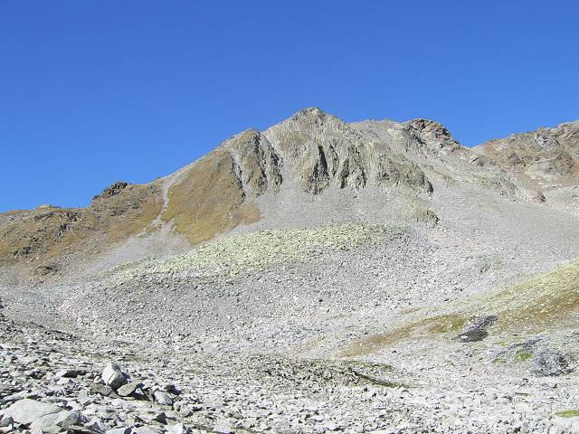 der gesamte Aufstieg am Grieskogelferner (Gipfel in Bildmitte)