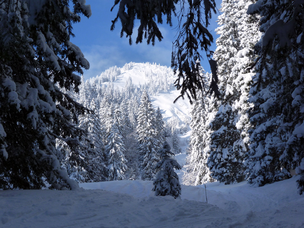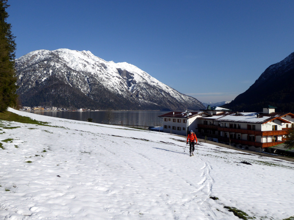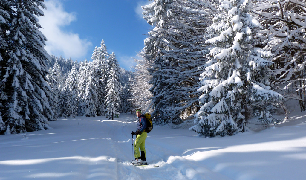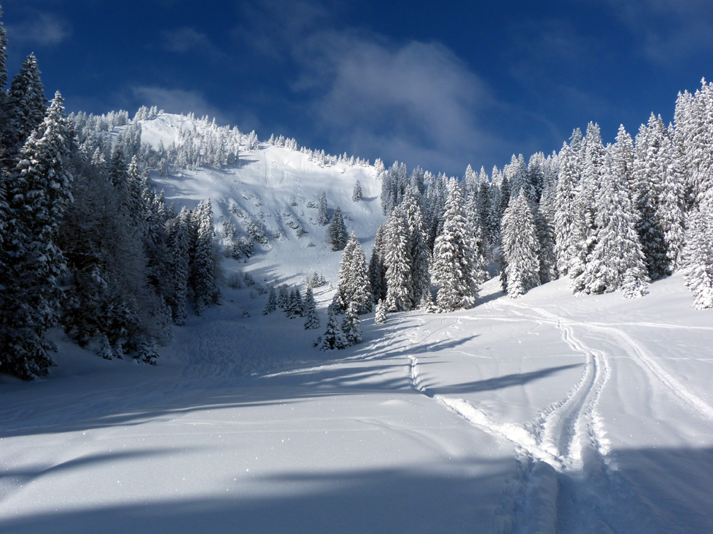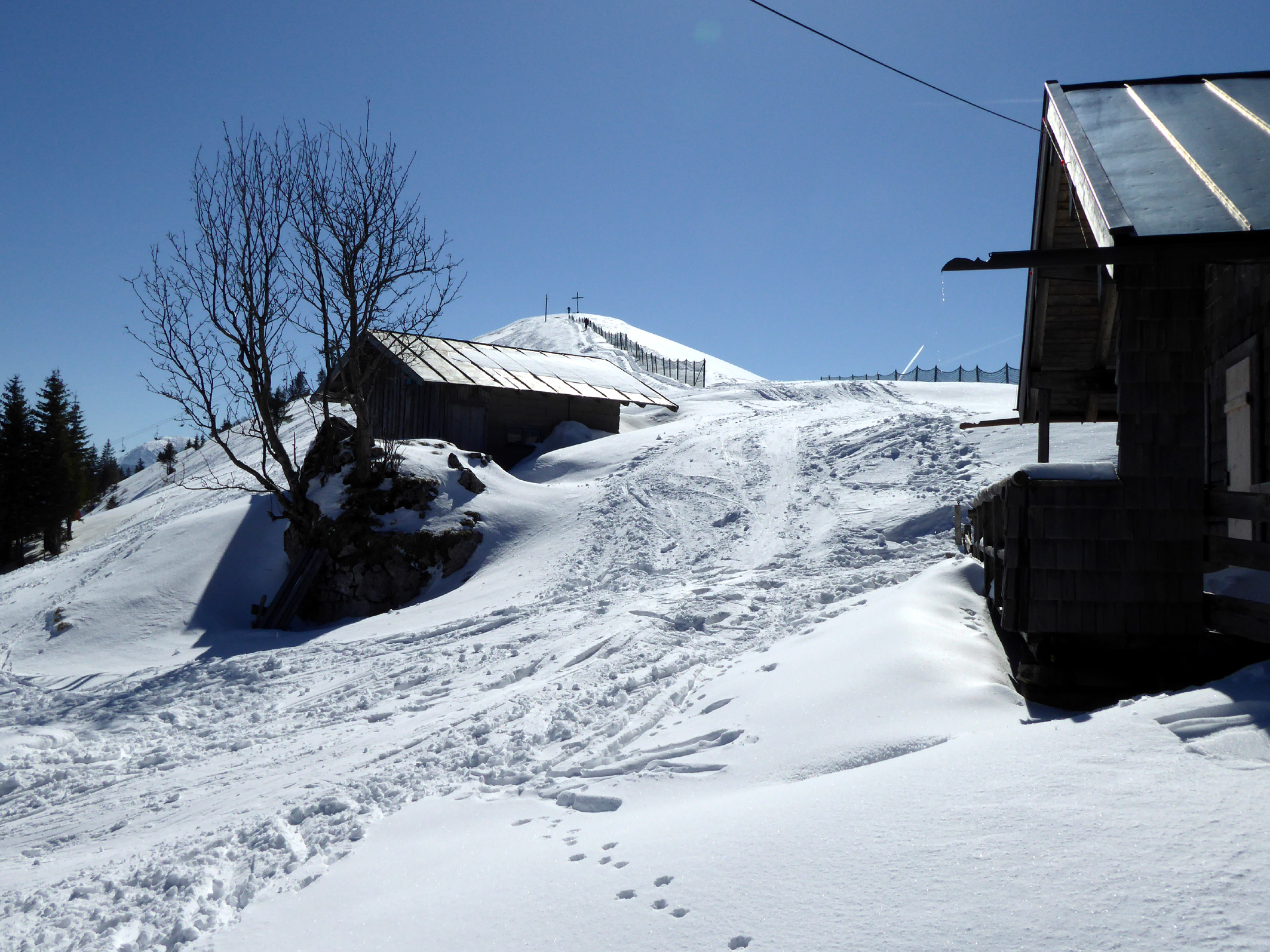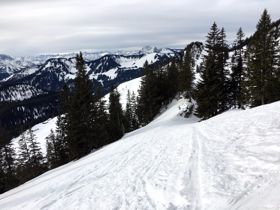 Tourenverhältnisse: Von der Brauneck-Bergstation Querfahrt zur Strasser-Alm, dort angefellt, via Idealhang zum Sattel zwischen Latschenkopf und Achselköpfen. Abfahrt in den Probstenkessel, Aufstieg zum Rothörlsattel und weiter zum Skigipfel.Abfahrt wieder in Probstenkessel, Aufstieg zum Sattel, Abfahrt bis zum Florilift, Aufstieg zum Brauneck, Abfahrt via Garland. Gut 1200 Hm im Aufstiegm 1900 in der Abfahrt. In schattseitigen Lagen noch Pulverschnee (Probstenkessel), sonnseitig schon gut gesetzter und sehr kompakter (fast firniger) Schnee. Auf den Brauneck-Pisten gute Bedingungen am Idealhang und auf der Garlandabfahrt, die Passage zwischen Strasser-Alm und Finstermünzkessel braucht drigend Neuschnee.