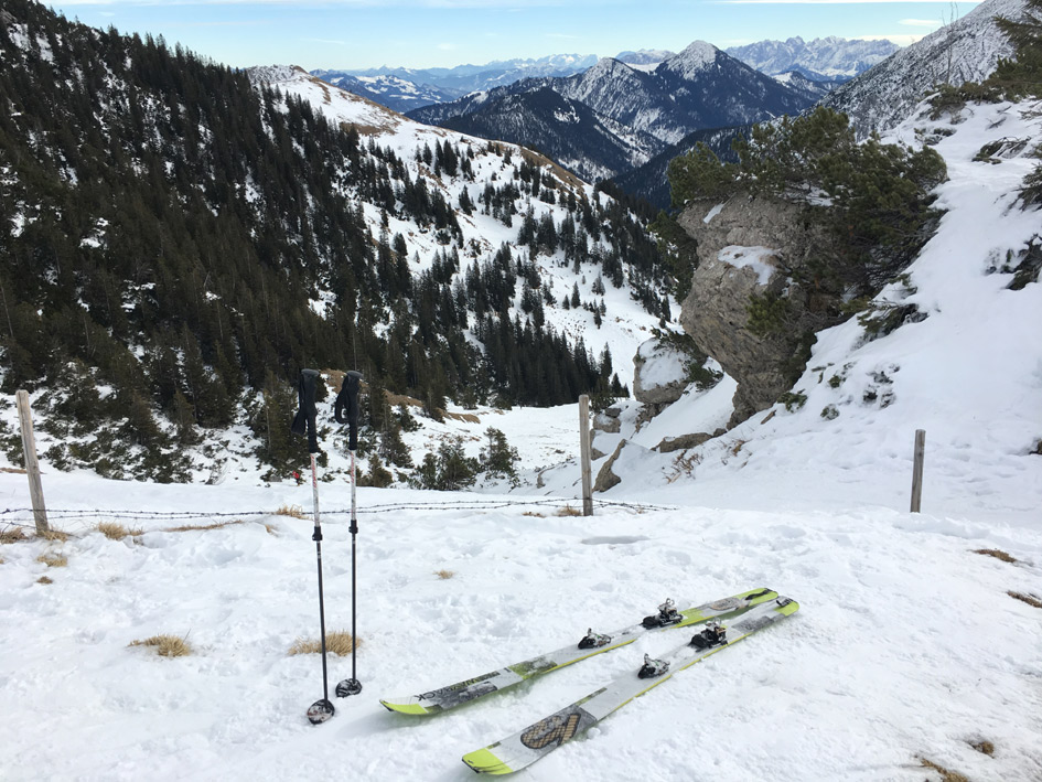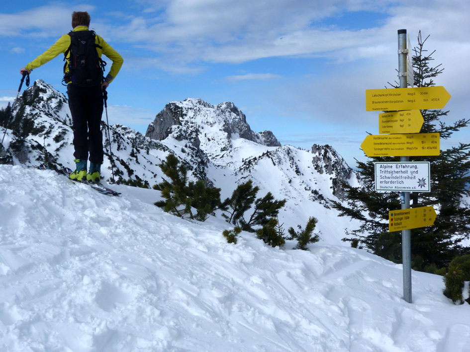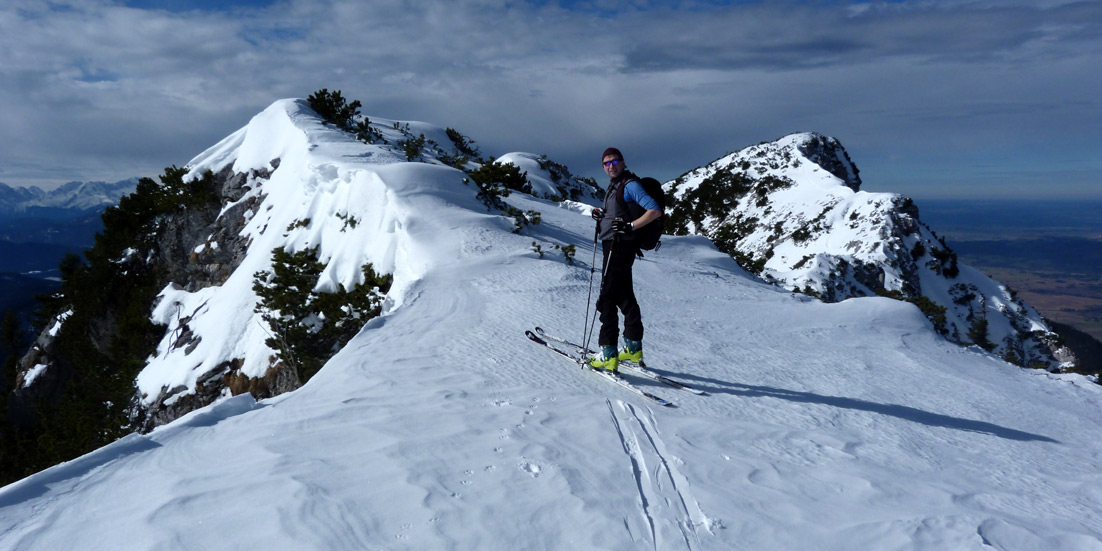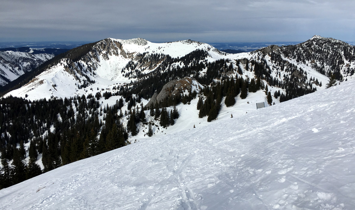 Gipfel und Höhe: Benediktenwand, 1800 m (wir sind nur bis zum Skigipfe, ca. 1770 m)