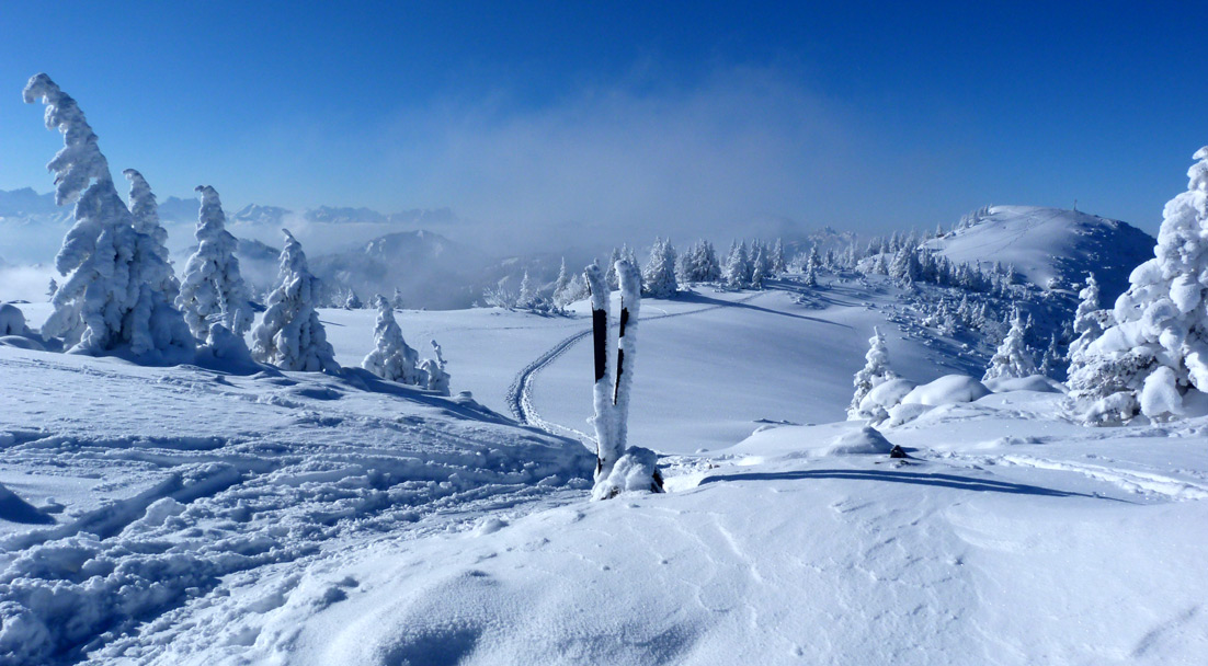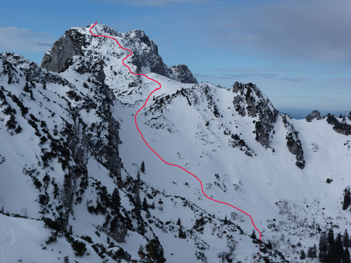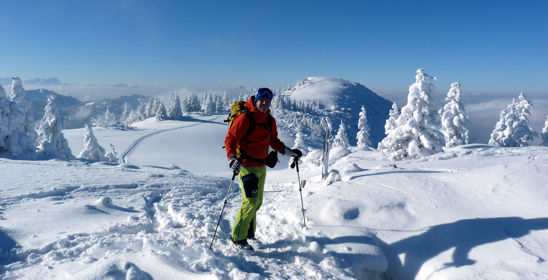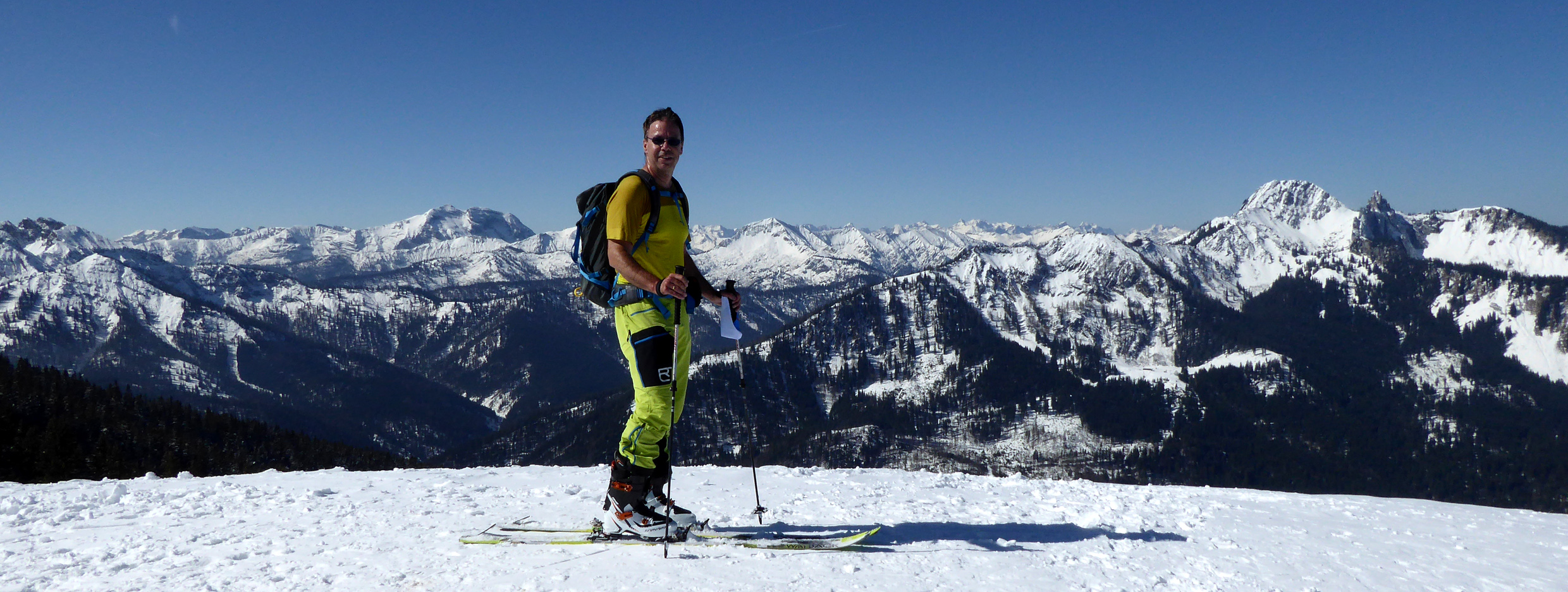 Gipfel und Höhe: Benediktenwand, 1800 m (wir sind nur bis zum Skigipfe, ca. 1770 m)