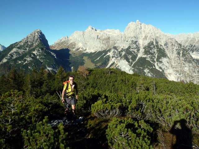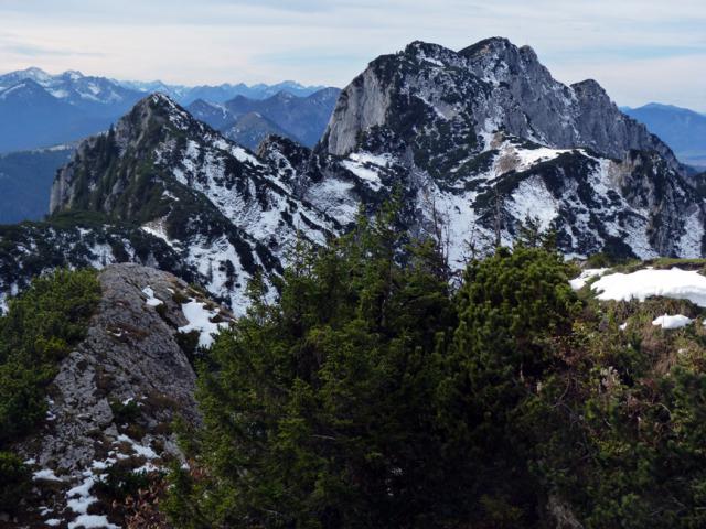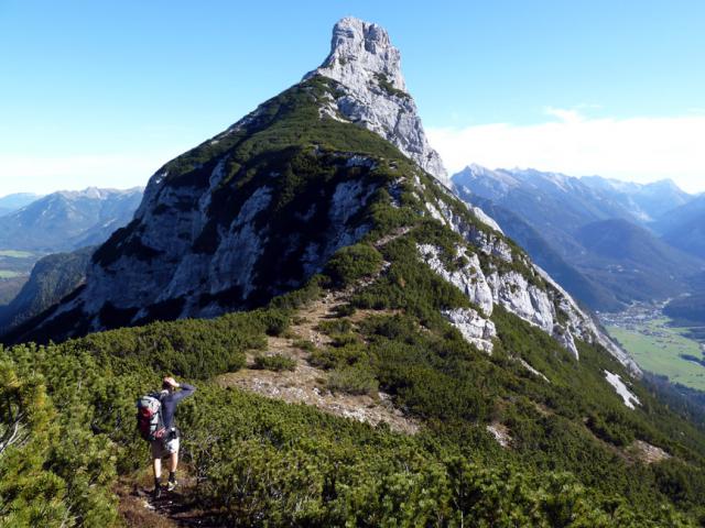 Tourenverhältnisse: Bestens! Wir sind andersherum gegangen als in der Beschreibung (http://www.tourentipp.de/de/to…nspitze-Bergtour_614.html), also rauf den steilen Steig zum Weißlehnkopf und runter zum Hohen Sattel. Entgegen der o.g. Beschreibung ist der Steig von Ahrn über Zwirch- und Weißlehnkopf inzwischen unübersehbar markiert, vollkommen problemlos zu finden und im Bereich der Latschen auch komfortabel ausgeholzt. Gipfelanstieg in leichter Kletterei (II). Heute alles trocken und schneefrei.