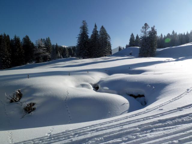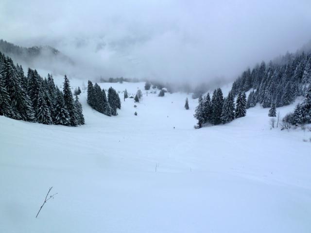Ich war heute "nur" zum Freeriden im Skigebiet Spotzingsee (Stümpgling / Sutten / Roßkopf) unterwegs. Unglaublich viel und toller Schnee! Bei diver´sen Varianten am Roßkopf-Nordhang habe ich den Pulver bis zu den Oberschenkeln vor mir hergeschoben. Es schneite heute Vormiitag unaufhörlich und sehr ergiebig, ca. 30-40 cm Neuschnee auf guter Unterlage. Traumhafte Verhältnisse, sofern die Lawinenlage Hangbefahrungen zulässt (Roßkopf in alle Richtungen war aufgrund vieler Befahrungen okay; teils waren die frischen Spuren nach einer Stunde wieder zugeweht). Vorsicht, teils recht stürmischer Wind mit Verfrachtungen. Das "Problem": Steil geht super (aber immer hübsch aufpassen), im flacheren Gelände dagegen bleibt man bei diesen Neuschneemengen schier stecken.
