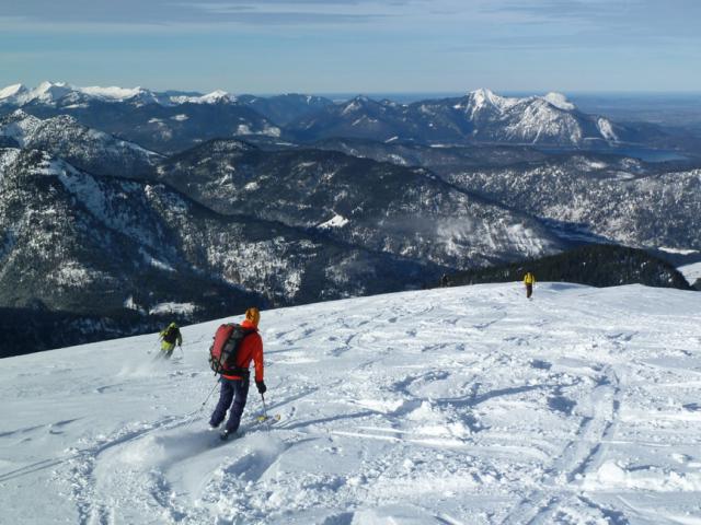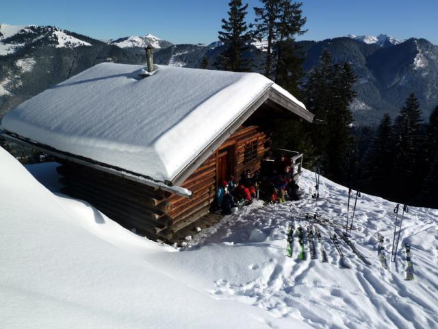 Tourenverhältnisse: Sehr gut! a) Gelände unerwartet wenig verspurt; b) fast überall Pulverschnee. Wir sind von der Hufnaglstube zur Sibli-Alm und von dort vorbei an der Riedereck-Alm zum Marterl vis-a-vis des Plankensteins gegangen; Abfahrt ins Kälteloch des Riederecksees und Aufstieg zum Plankensteinsattel. Dann Abfahrt Richtung Röthensteinalm (rechts am See vorbei) bis zur Nordwest-Schneise, die vom Röthenstein runterkommt (das ist normalerweise die Abfahrt, wenn man "nur" den Röthenstein macht, vgl. http://www.tourentipp.de/de/to…kitour-Tegernsee_643.html). Wir haben den bis zu 40 Grad steilen Hang raufgespurt zum Gipfel, sind dann über die Wechte gesprungen (ca. 100 m vom Gipfel Richtung Plankenstein) und den recht steilen Hang abgefahren. Oben harte Lawinenboller, unten toller Pulver. Ebenso nach einer Hütte (SVT). Danach Slalom durch den Wald, zum Abschluss (vor der Rodelbahn) wurde noch der vereiste Bach überquert. Fazit: Prima Runde, in dieser Variante etwas atypisch (hat außer uns heute keiner gemacht).