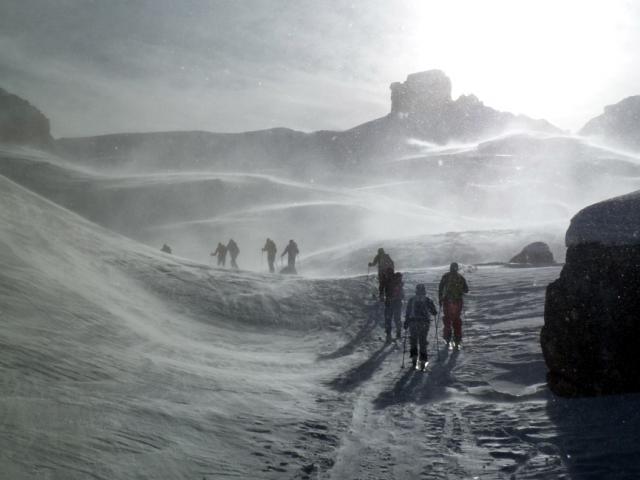 Tourenverhältnisse: Durchweg windverpresster Schnee, oft abgeblasen und hart, insgesamt eher ruppige Abfahrt. Saukalt und windig, teils Schneesturm (vgl. Foto). Generell aber ordentliche Schneelage rund um Fanes- und Lavarellahütte. Landschaftlich tolle Tour! Routenbeschreibung hier: http://www.tourentipp.de/de/to…lo-Skitour-Fanes_132.html