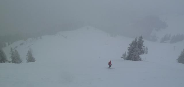 Tourenverhältnisse: In der Nacht zum Mittwoch sind ca. 20 cm Neuschnee gefallen, am Vormittag schneite es weiter. Aufstieg über Familienabfahrt (Bachhang und Stockhang) in den Ahornkessel und weiterhin zum Gipfelhaus. Habe 2x die Schneedecke untersucht - teils ist da vor einigen Tagen wohl schon mal gewalzt worden, denn das Gestrüpp schaut nicht mehr raus, und unter den 20 bis 30 cm Pulverschnee ist eine eisig-harte Schicht. Bei der Abfahrt gegen 12.30 Uhr war sogar eine Pistenraupebreite von der Bergstation mit zum Milchhäusl runter frisch gewalzt. Bin trotzdem weitgehend im Tiefschnee geblieben und hatte keinen einzigen Kratzer im Belag! Fazit: Nach den jüngsten Schneefällen seit heute erstaunlich gute Bedingungen.