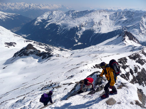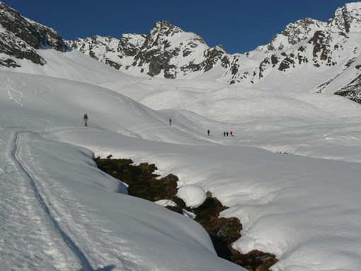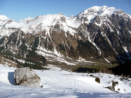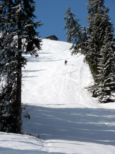 War heute (7.5.) unter den ersten fünf im Hochglückkar. Start um 7 Uhr (ist meines Erachtens nicht zu früh), 15 Min. Ski tragen, dann durchgehend Schnee. In der Abfahrt (9.30 Uhr) oben passabel tragender Harschdeckel, im Mittelteil etwas ruppig, unten super Firn. Hochglückgipfel (zu Beginn des Kars linksherum) wurde auch gemacht.