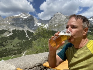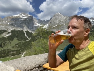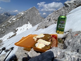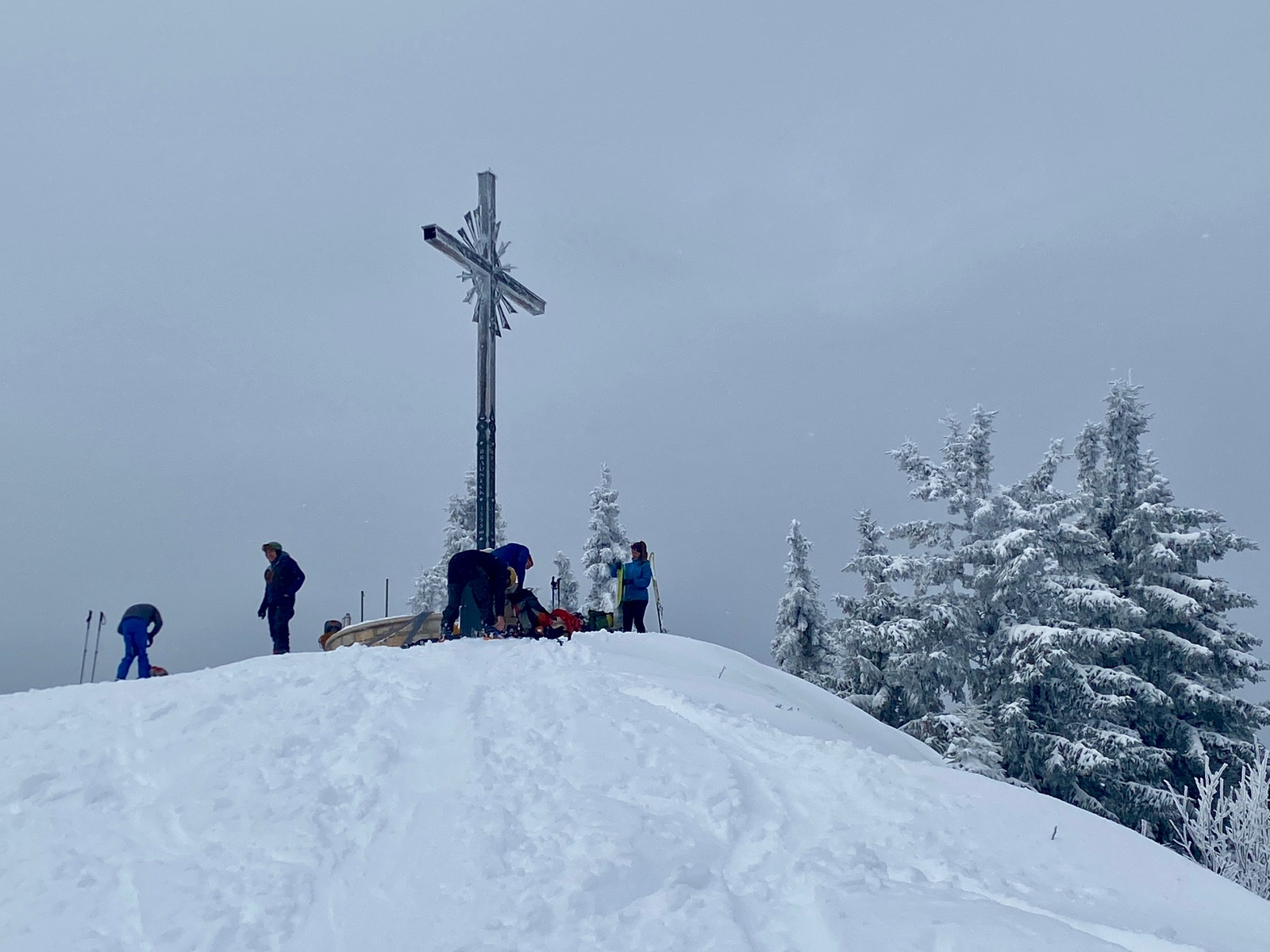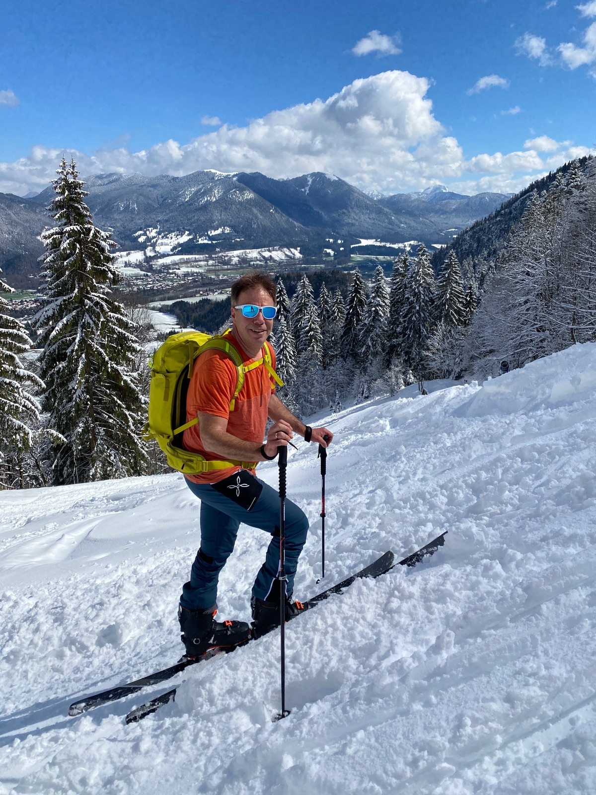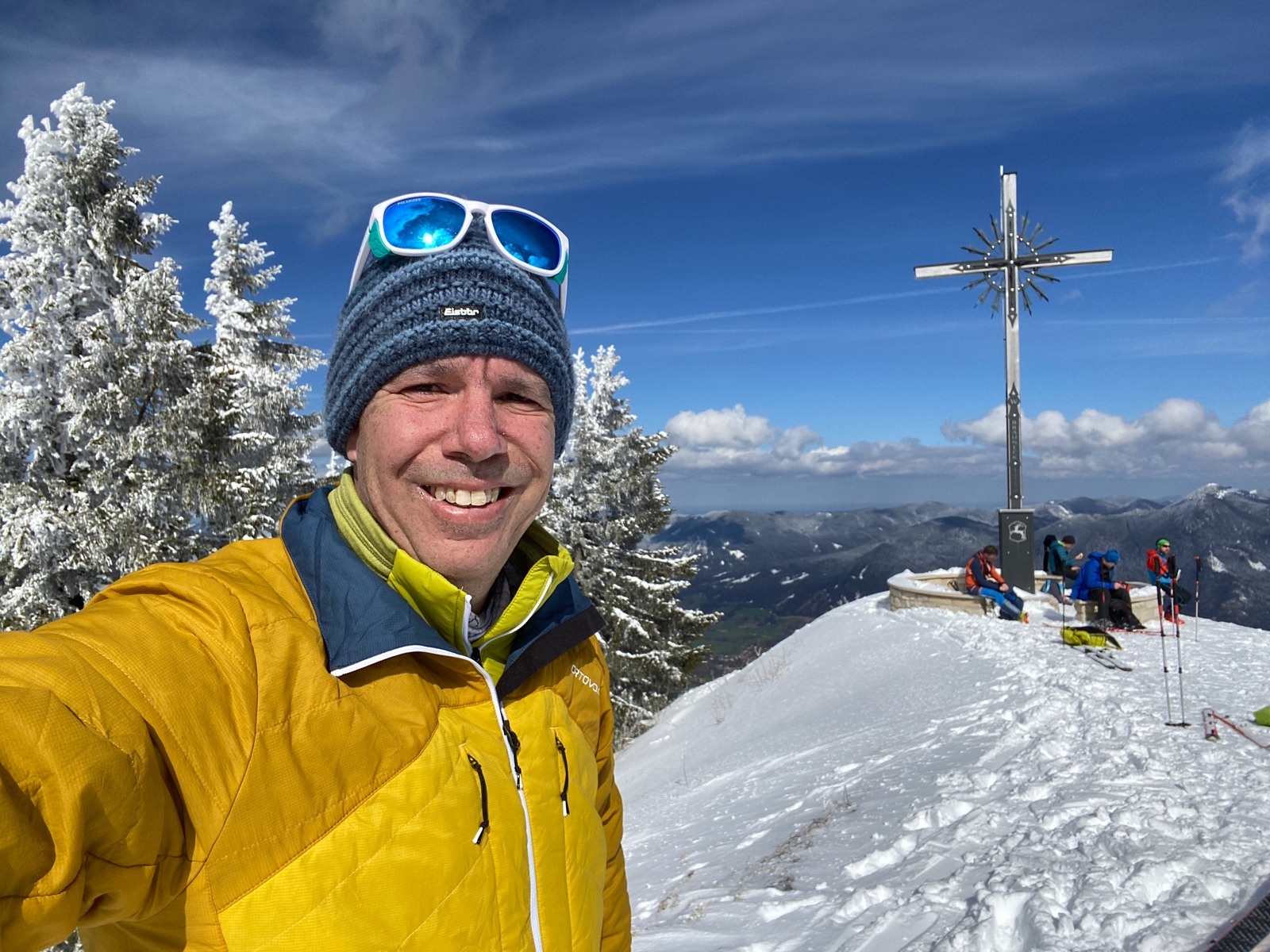 Heute also abermals zum Brauneck, im Doppelpack: zuerst von Wegscheid (Draxlhang) zum Gipfel, dann Garland hinunter, zweiter Aufstieg auf der einsamen Nordseite mit echtem, pistenfreien Skitourenfeeling. Auf ein Weißbier ging es auch noch ins mittlerweile geöffnete Brauneck-Gipfelhaus.