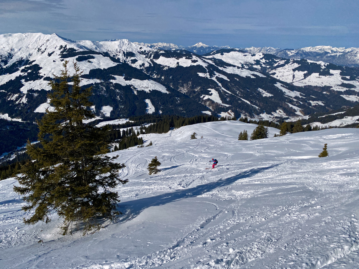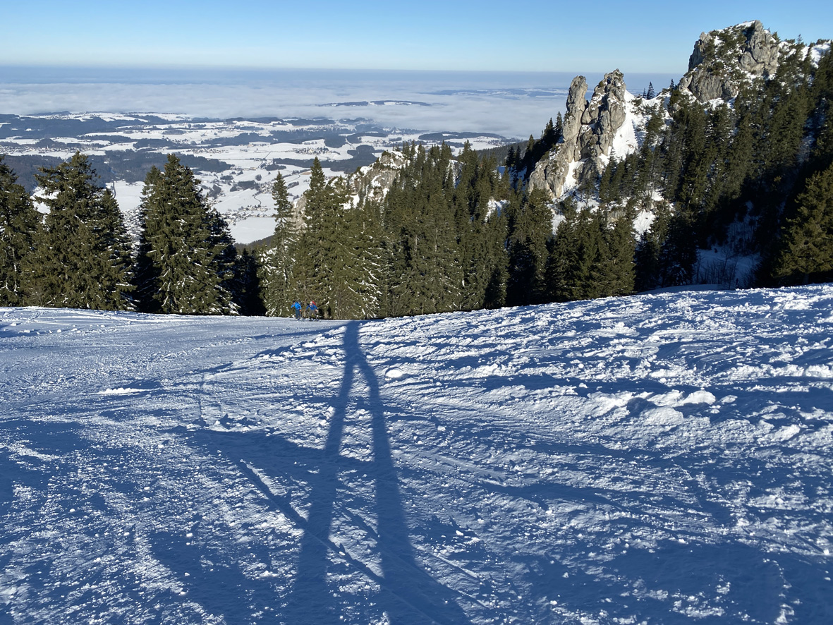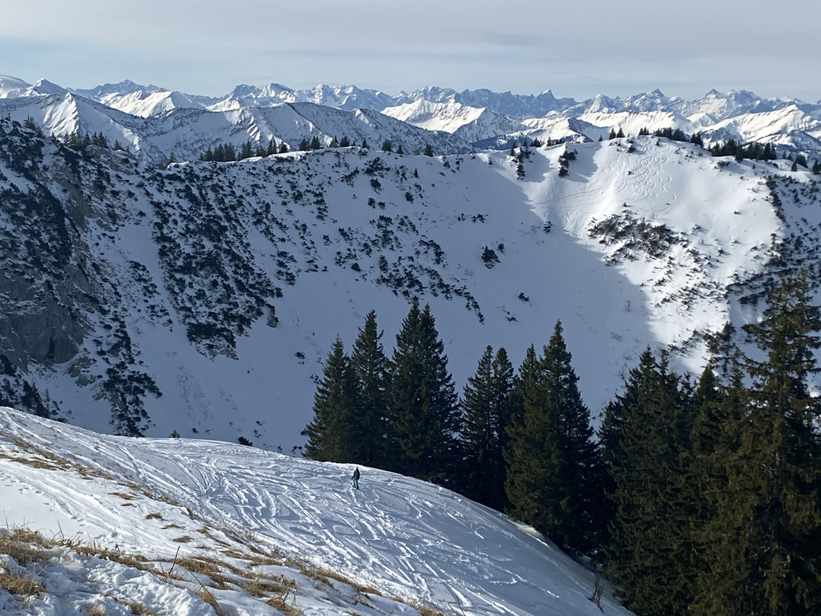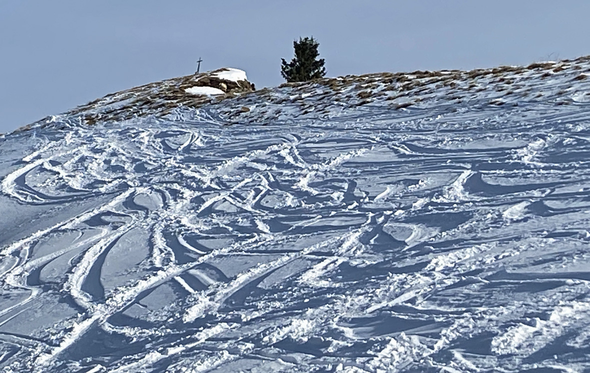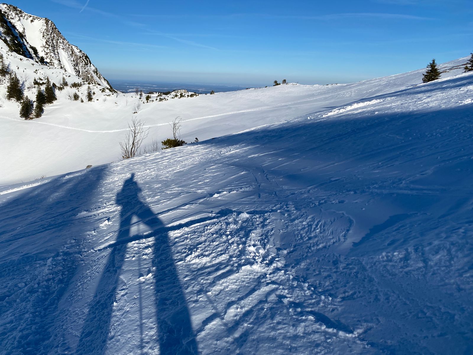 Ab 1200 m Pulverschnee, der nach oben immer besser wird. Nach dem Gipfelradler am Roßkopf Abfahrt über den Nordhang und weiter zum Kurvenlift.