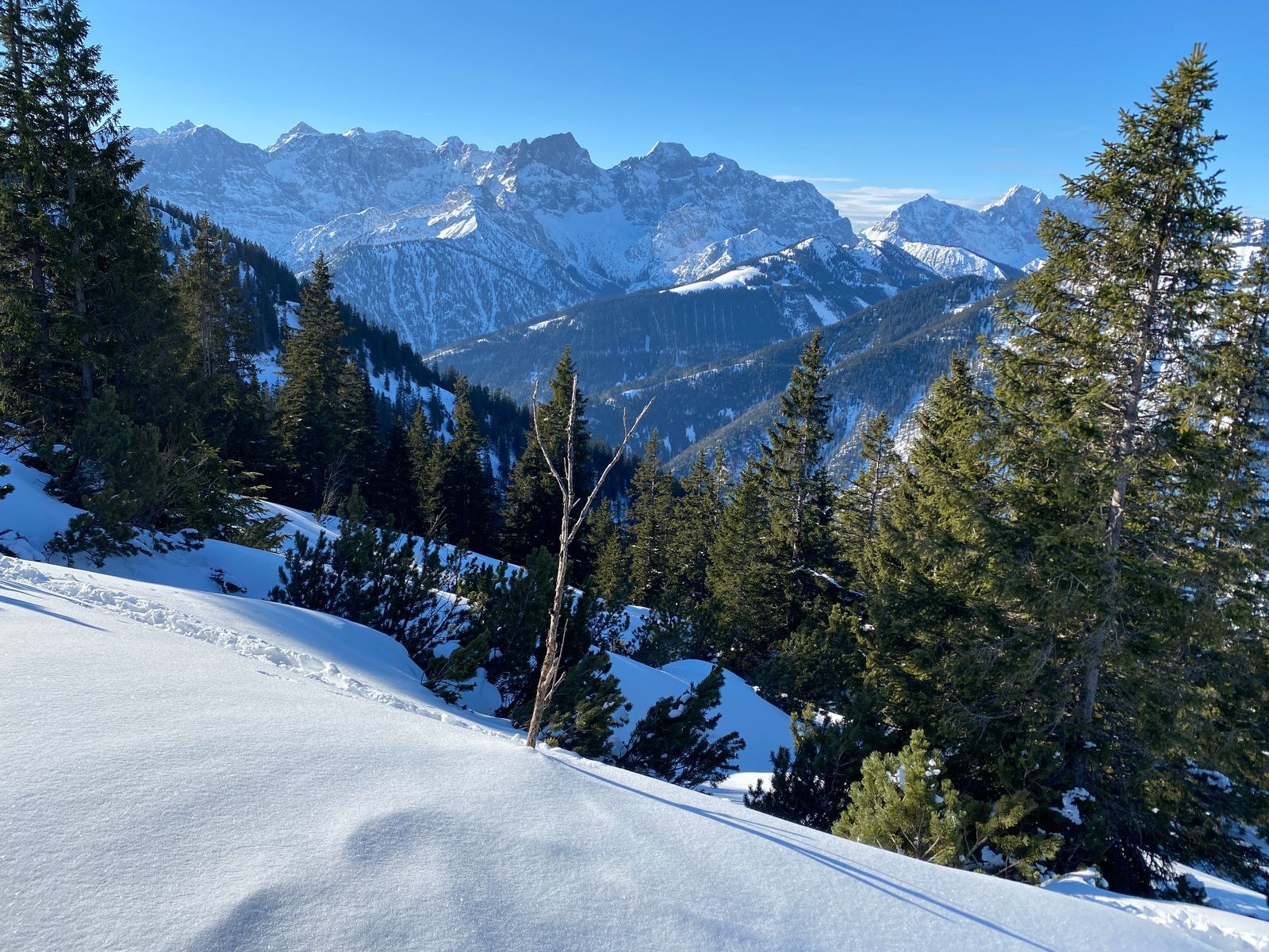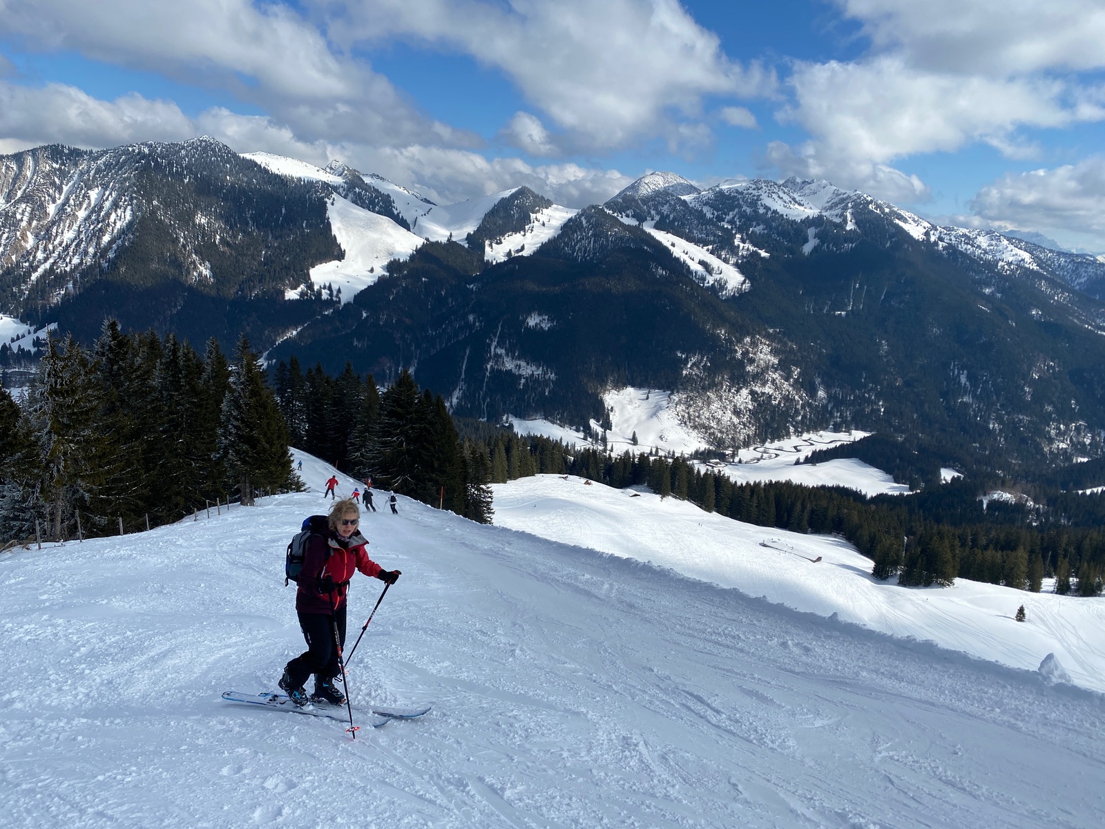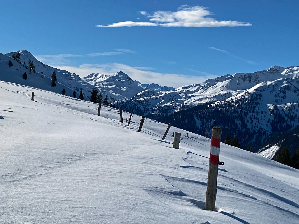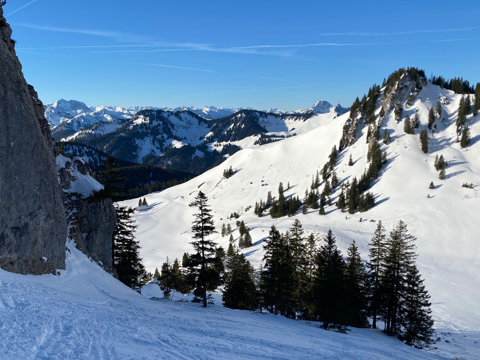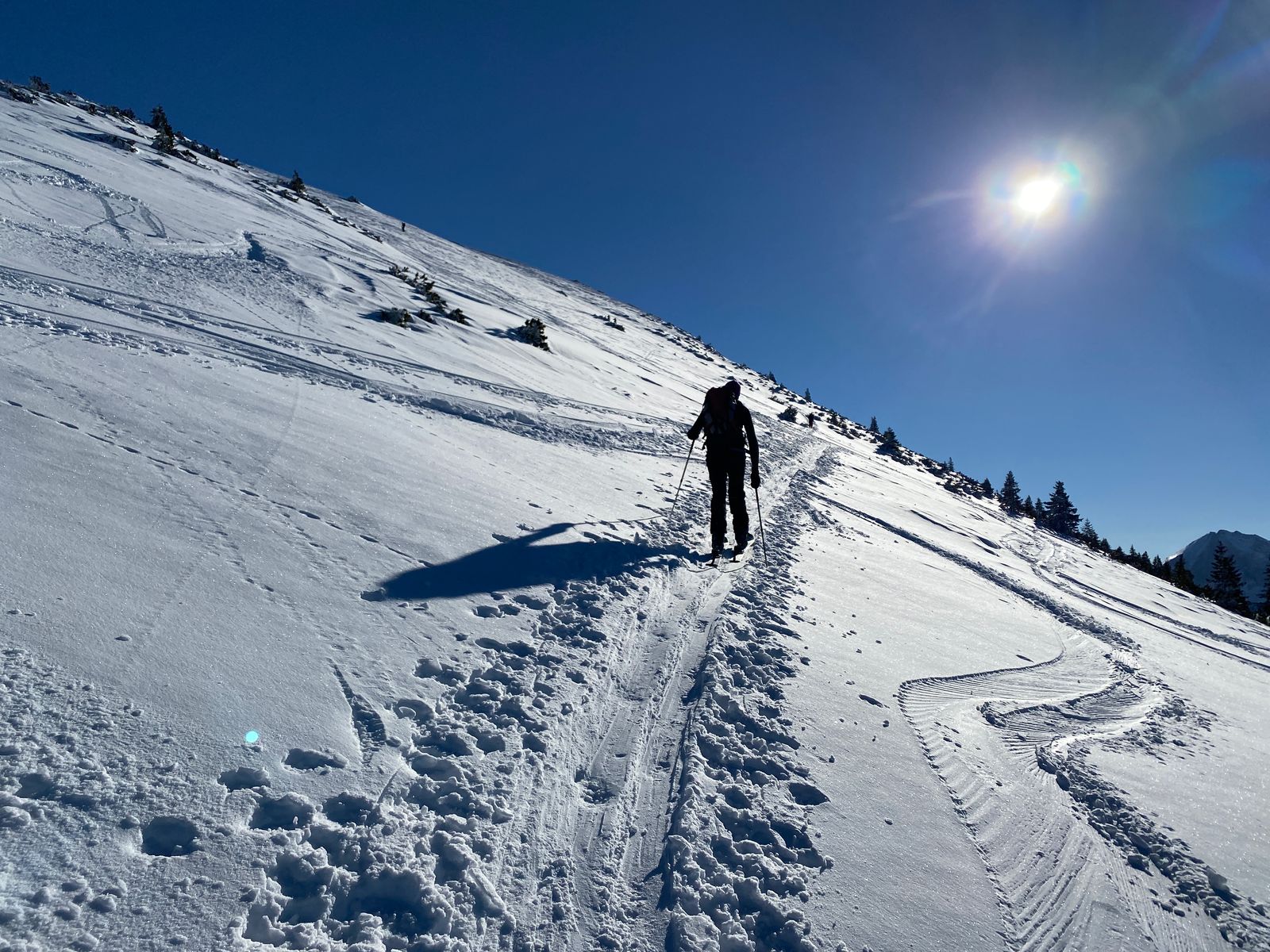 Ab 1200 m Pulverschnee, der nach oben immer besser wird. Nach dem Gipfelradler am Roßkopf Abfahrt über den Nordhang und weiter zum Kurvenlift.