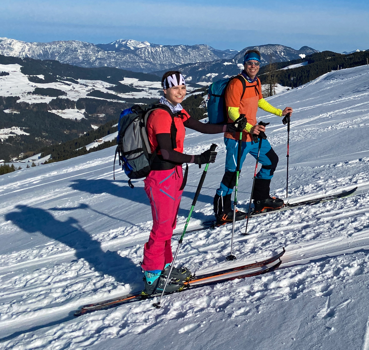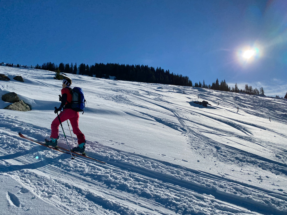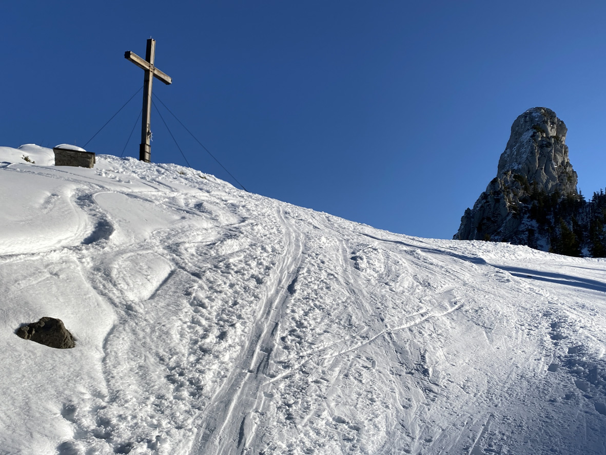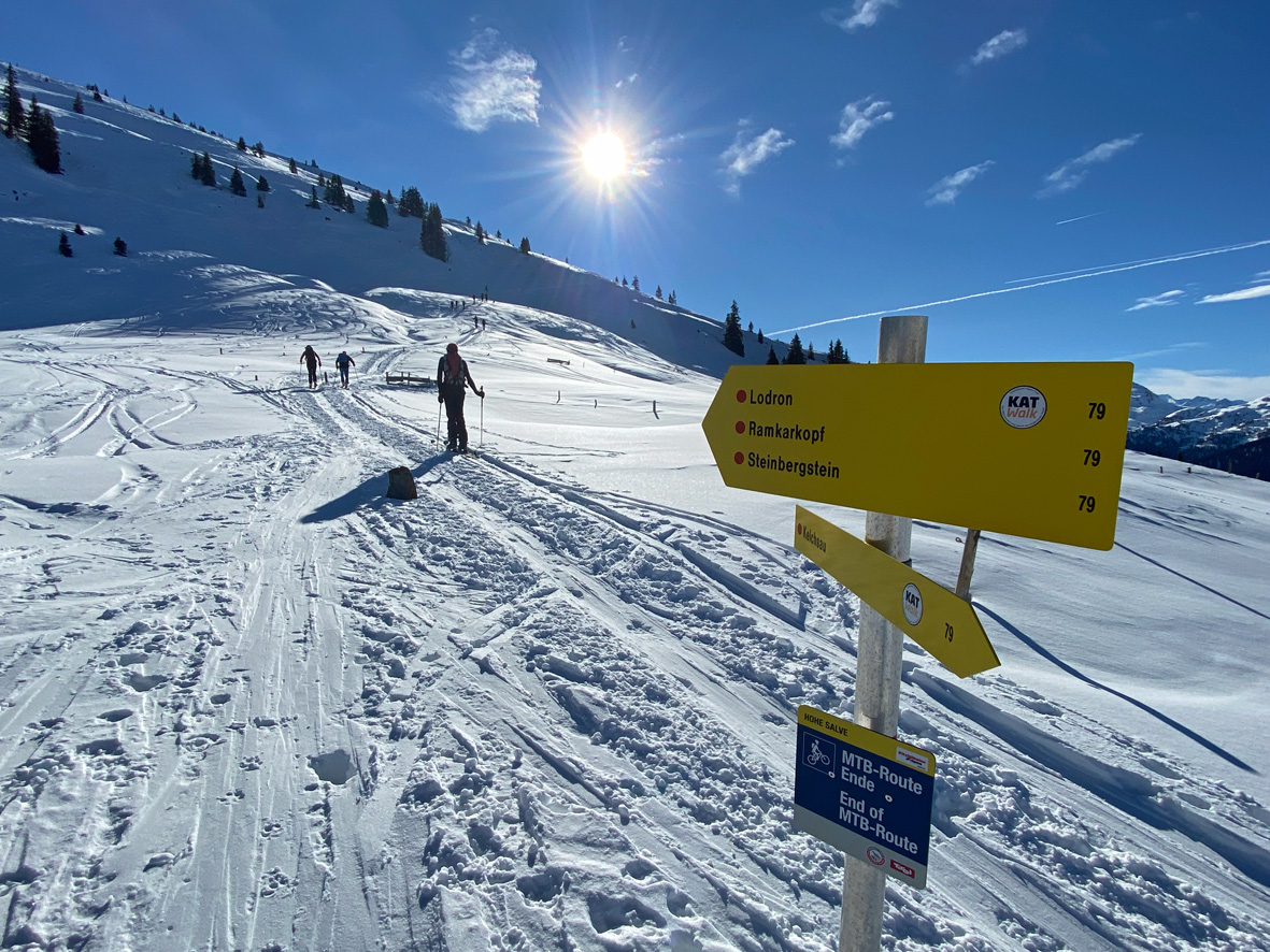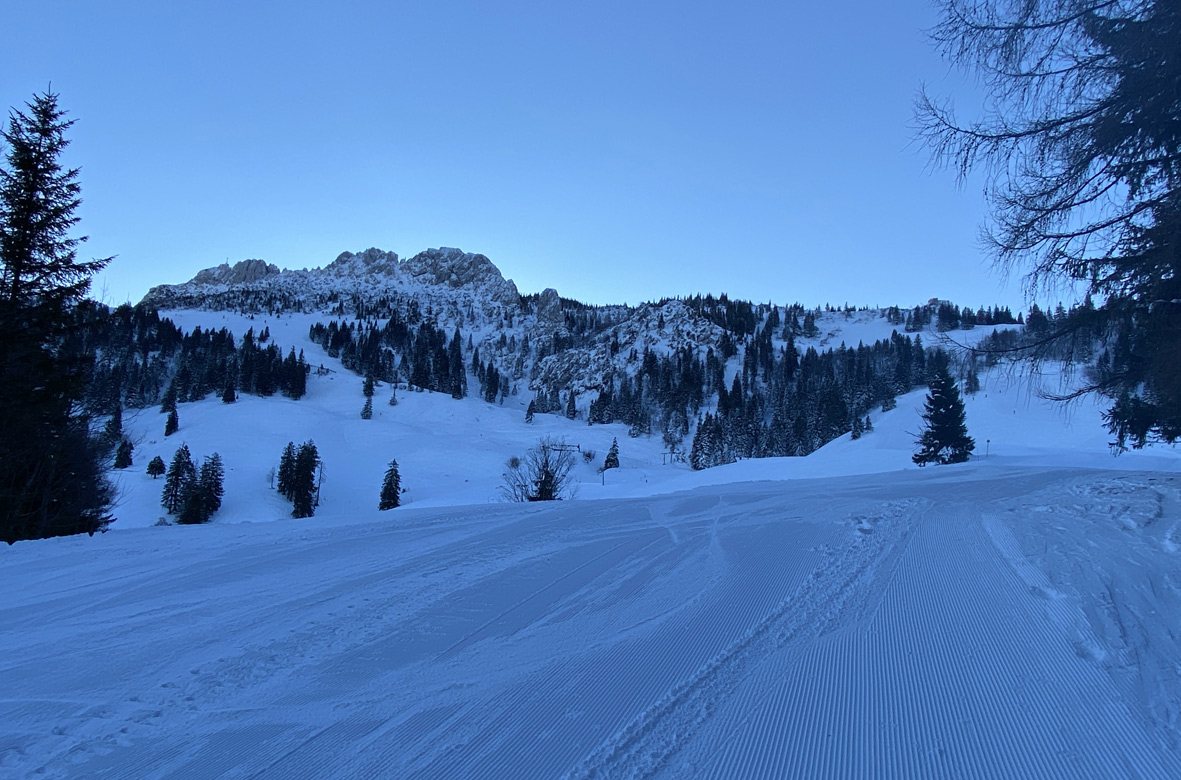 Ab 1200 m Pulverschnee, der nach oben immer besser wird. Nach dem Gipfelradler am Roßkopf Abfahrt über den Nordhang und weiter zum Kurvenlift.