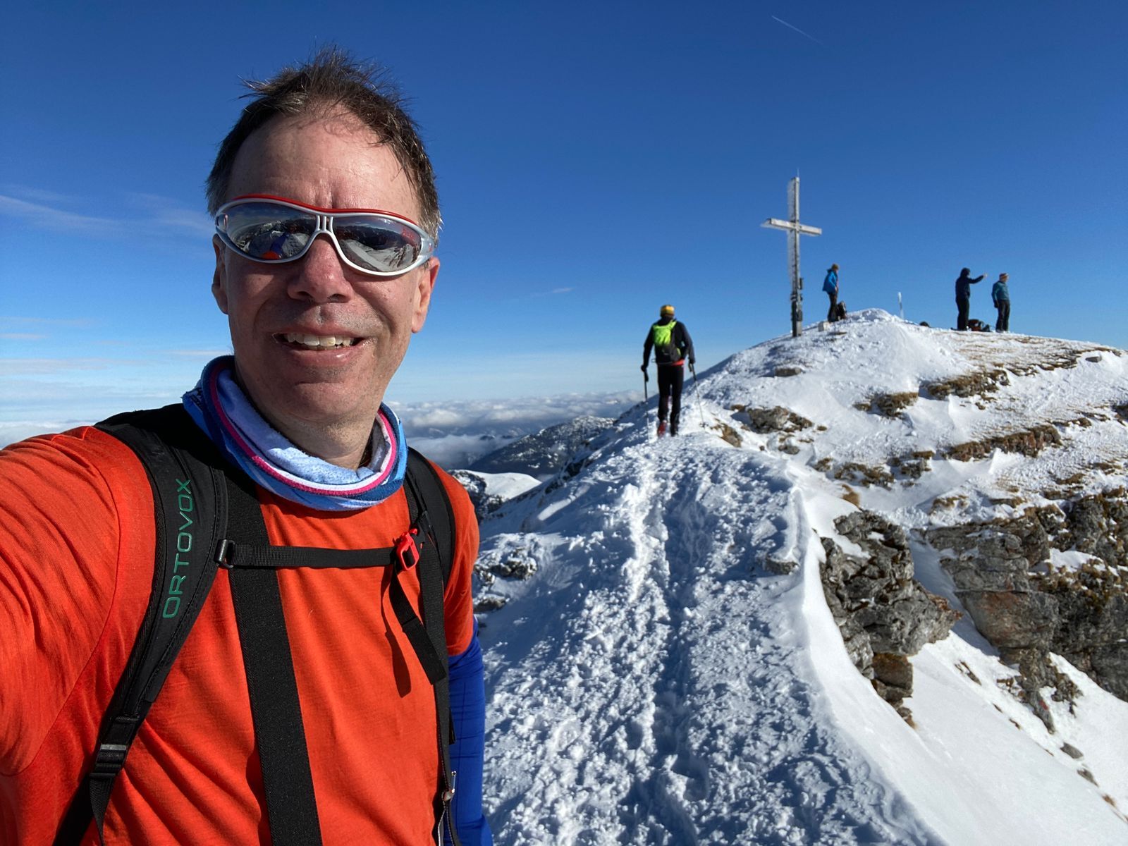 Vor ein paar Wochen gab es bei Fratzenbuch einen Post mit einem Webcamfoto vom Spitzingsee - halb Gras, halb Schnee, aber schon eine Skitourenspur drin. Ein Kommentar dazu lautete: „Die ersten Roßkopf-Ultras sind unterwegs“.