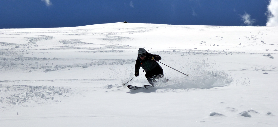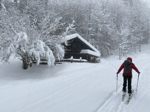 Pulverschnee noch und nöcher, in flacheren Passagen blieb man fast stecken. Kalter, feiner und frischer Schnee, lautlos und kraftarm zu fahren - einfach herrlich!