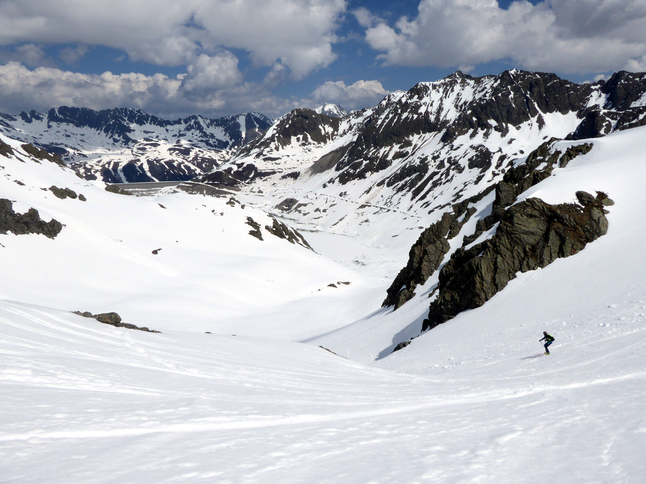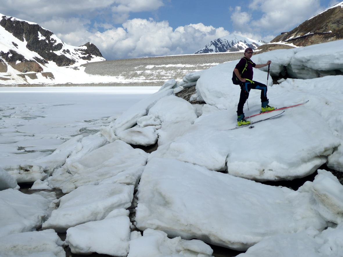 In Kühtai sind noch vom Parkplatz weg Skitouren möglich. Wir hatten us heute für den Sulzkogel entschieden, der seinem Namen alle Ehre machte: Sulz im steilen Gipfelhang, tiefer Sulz bis Sumpf bei der weiteren Abfahrt Richtung Speichersee. Sumpfkogel wäre auch ein passender Gipfelname. Anders als an der Rotbachlspitze gestern war der Schnee heute nach bewölkter Nacht und bei wärmeren Temperaturen nicht mehr durchgefroren. Keine Chance auf schönen Firn. Immerhin, vom Skidepot zum Gipfel gibt es eine gute Stapfspur. Im Stausee ist extrem weng Wasser, die Spur verläuft entsprechend tief - das Rumgerutsche auf Schollen ud Platten hat etwas Arktisches. Skifahrerisch die schönsten Hänge waren die am Schluss vom Graf-Ferdinand-Haus hinunter zur Alpenrose. Prognose: Schnee hat es noch genug, aber die Qualität...