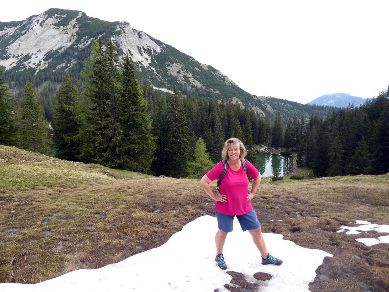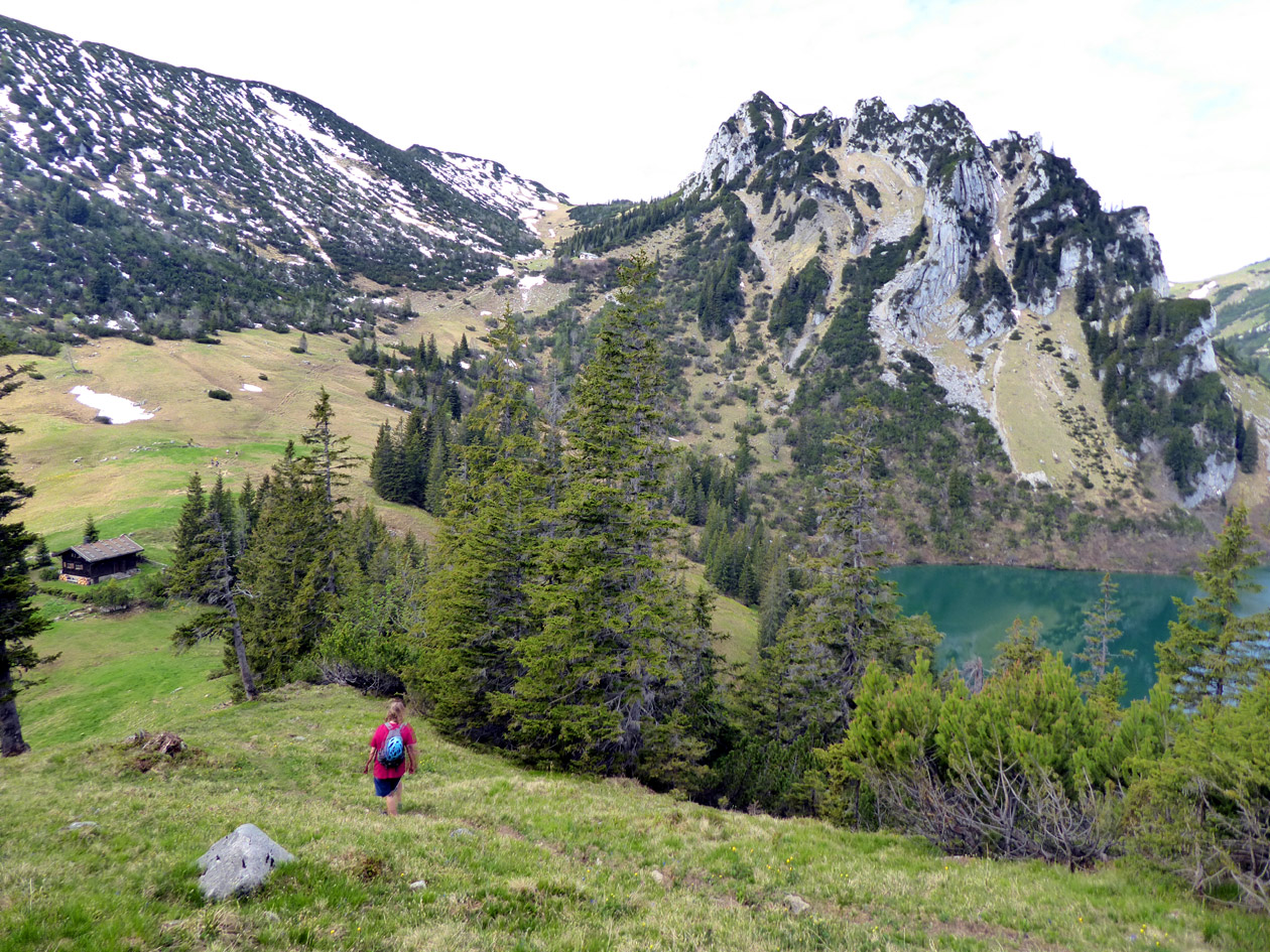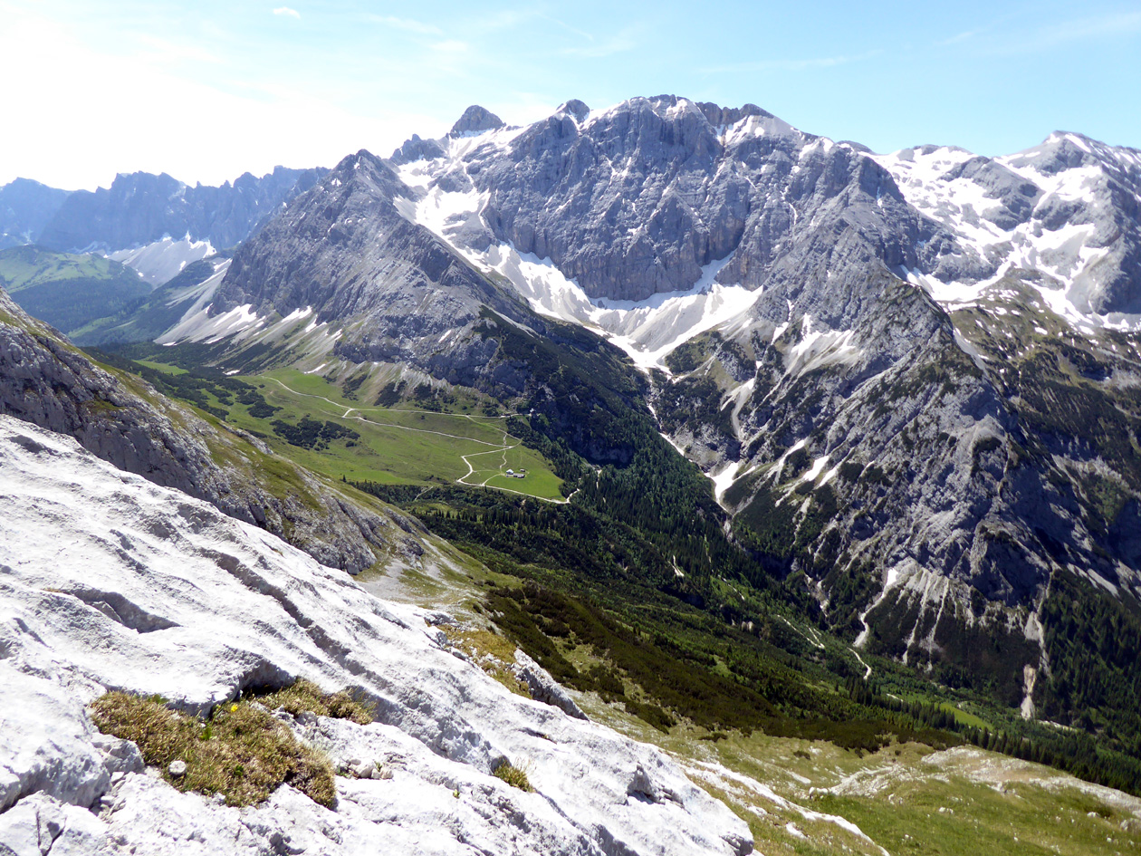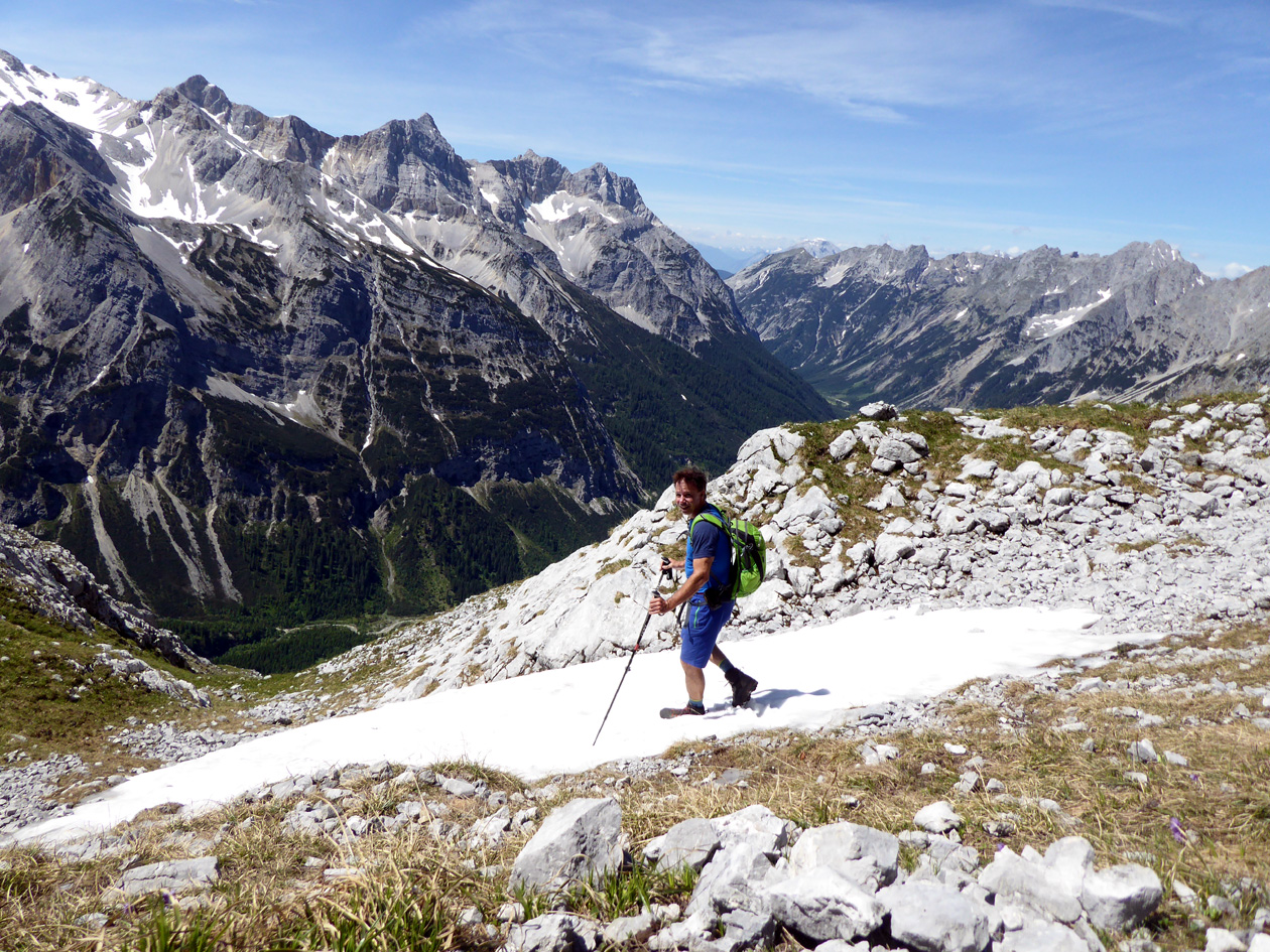 Und sonst: Herrliche Landschaft - und den Andreas Ruech habe ich beim verdienten Weißbier am Karwendelhaus leider knapp verpasst. Schneelage: In der Abfahrt vom Hochalmsattel zum kleinen Ahornboden zwei kleine Schneefelder auf Höhe der Kaltwasserkarspotze, 2x20 Meter schieben (willkommene Erfrischung).