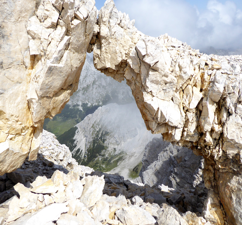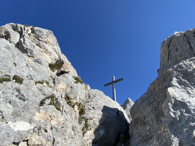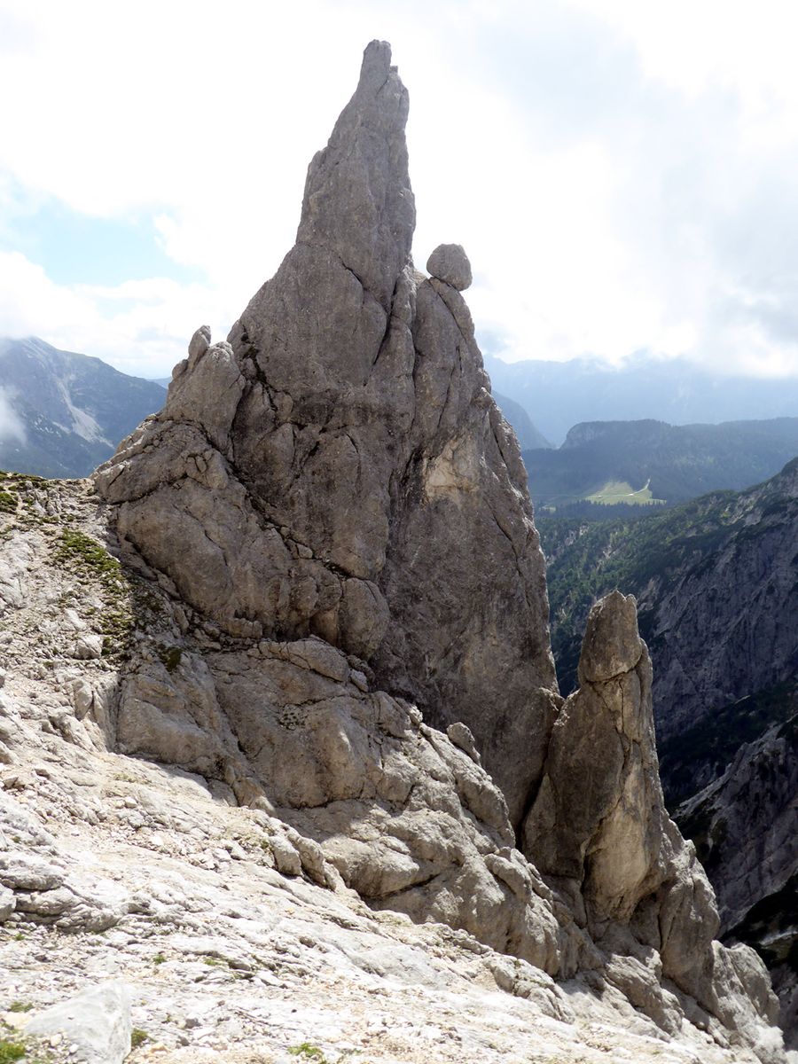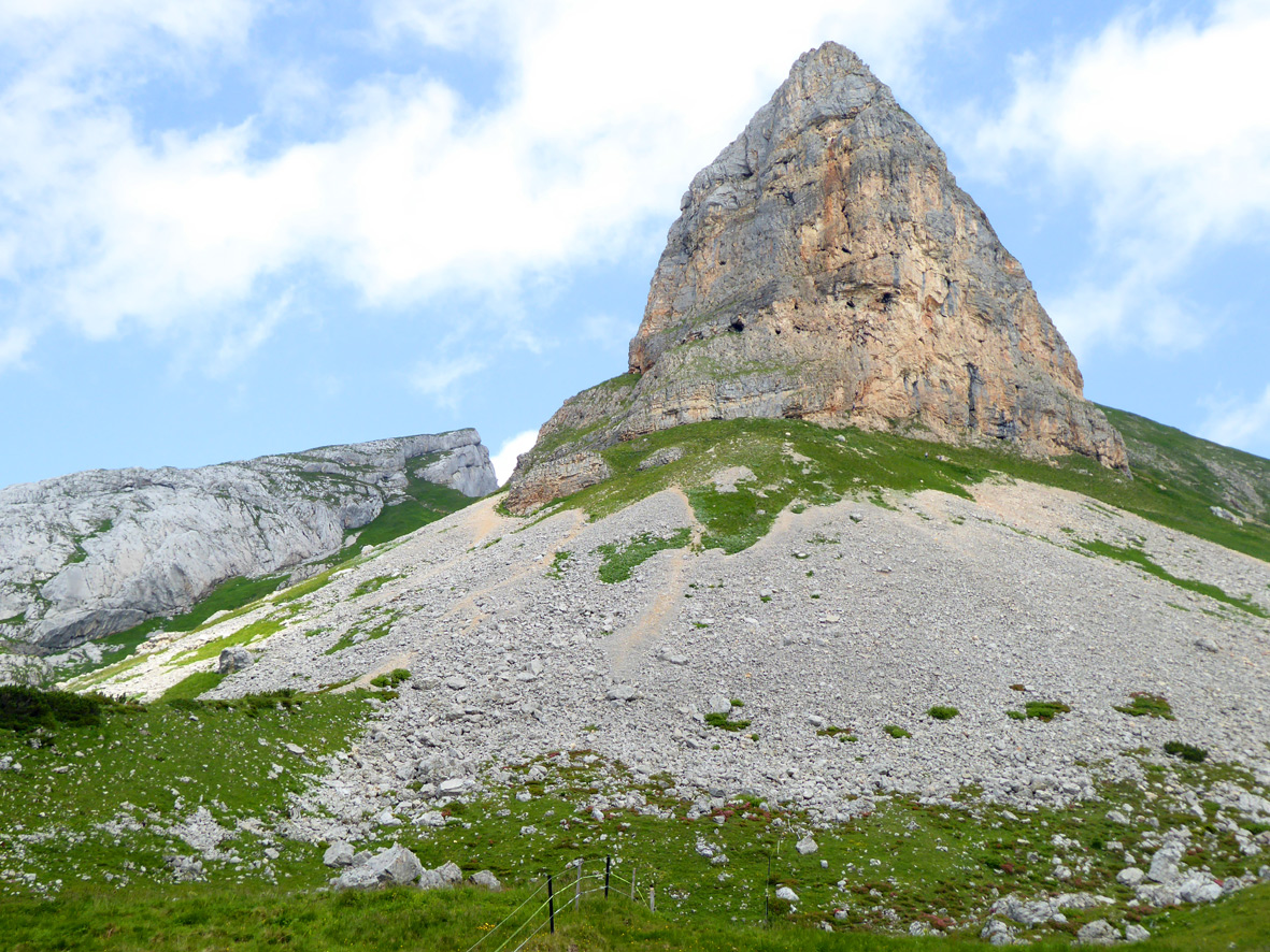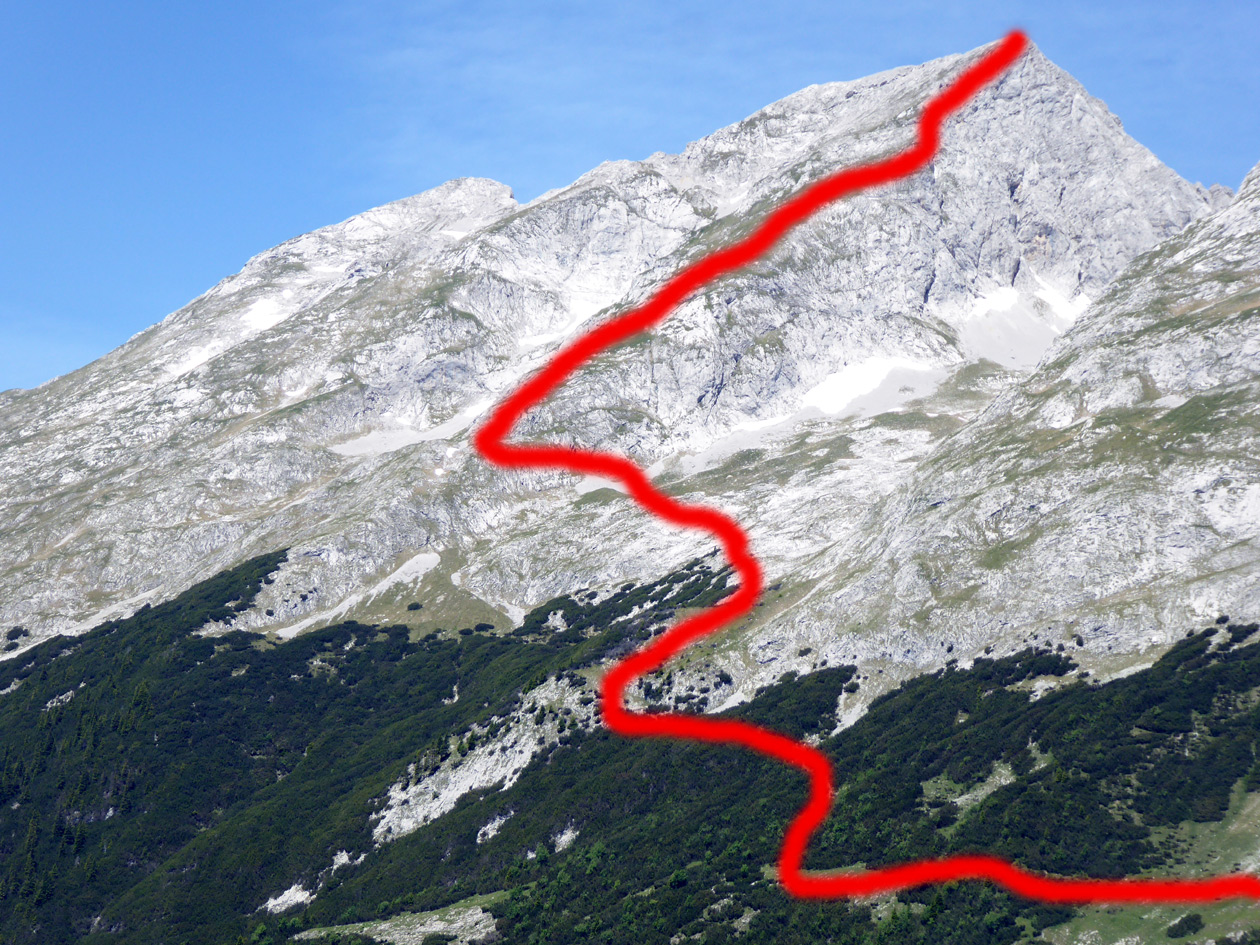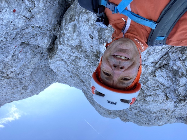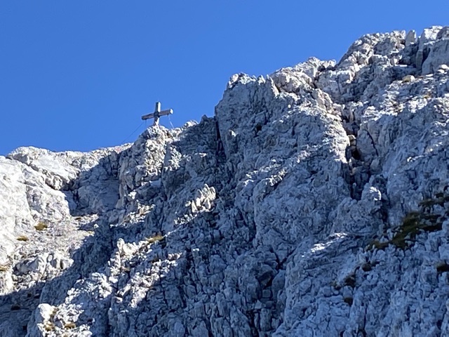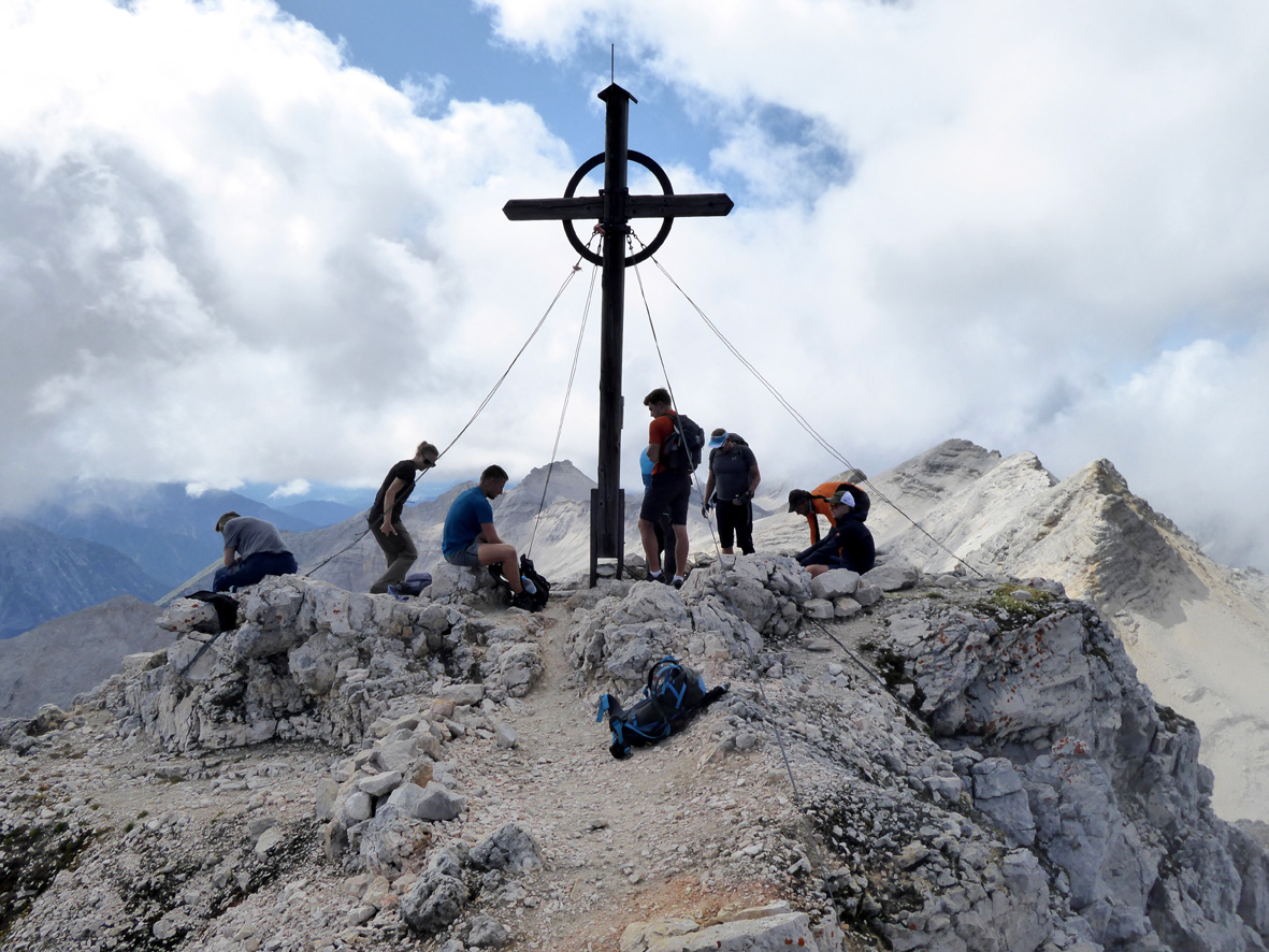 Das Pedelec ist nützlich für die ersten 600 Hm, weiter zu Fuß zum Wörnersattel, nun Steinschlaghelm auf und 500 Hm durchaus anspruchsvoll hinauf; das Klettergelände ist nie schwieriger als II, verlangt aber permanent höchste Konzentration.