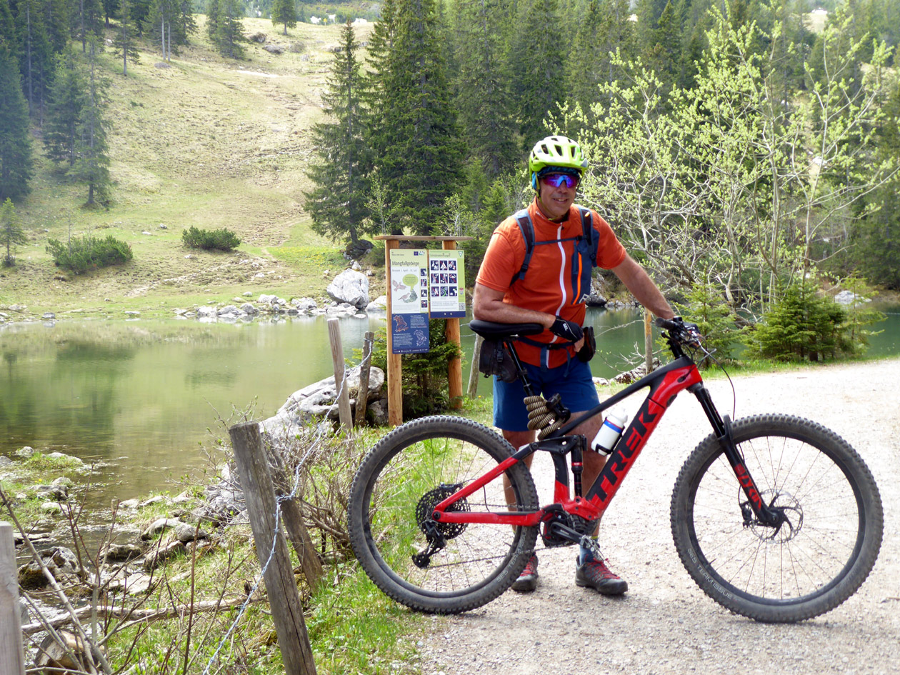 Heute mal Strom-Experiment in den Bergen: Wie weit komme ich mit meinem MTB-Pedelec? Die Teststrecke: Karwendelrunde (68 km, 1800 Höhenmeter). Das Bike: Trek Rail 9.8 mit aufgeladenem 625er Akku und Bosch Performance CX-Motor. Ergebnis: Test locker bestanden - dank sehr biobikemäßiger Fahrweise zu Beginn schaffte ich 990 Höhenmeter mit den ersten 20 Prozent Strom (von Hinterriss bis zum Karwendelsteg = zwei satte Anstiege im Eco-Modus), am Ende hatte ich 35 Prozent Akku-Reserve (2000 plus x wären in diesem Stil also gegangen).