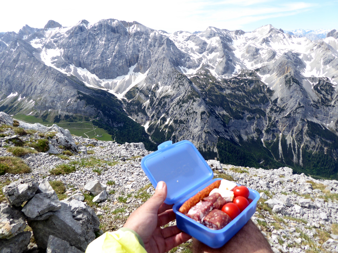 Zehn Jahre nach meinem letzten Besuch ging's mal wieder auf die Vogelkarspitze (https://www.tourentipp.com/de/…ur-Karwendelhaus_742.html). Die Tageshitze umging ich durch einen sehr zeitigen Aufbruch (6.30 Uhr im Risstal). Mit dem MTB durchs Johannistal in den Kleinen Ahornboden, hinauf zum morgens noch einsamen Hochalmsattel und weiter zum Bikedepot. Beim Weiterweg zu Fuß traf ich auf ca. 25 Gämsen, drei Murmeltiere und eine Schlange sowie im Abstieg auf einen weiteren Gipfelstürmer. Tolle Aussicht von diesem ruhigen Gipfel (das Gipfekbuch reicht zurück bis 2002). Die Schrofen ließen sich gut gehen, im oberen Teil ist der Fels teils brüchig-bröselig. Zwischendurch Mini-Schneefelder zur Erfrischung. Trotz gelegentlicher Steinmandl braucht man ein gewisses Gespür für die Wegfindung - gegenüber an der markierten Östlichen Karwendelspitze war deutlich mehr los. Danach noch kurz ein Abstecher ins Karwendelhaus zum Andi Ruech, der diesmal eine mir bis dato unbekannte Spezialität einschenkte: Latschenschnaps.