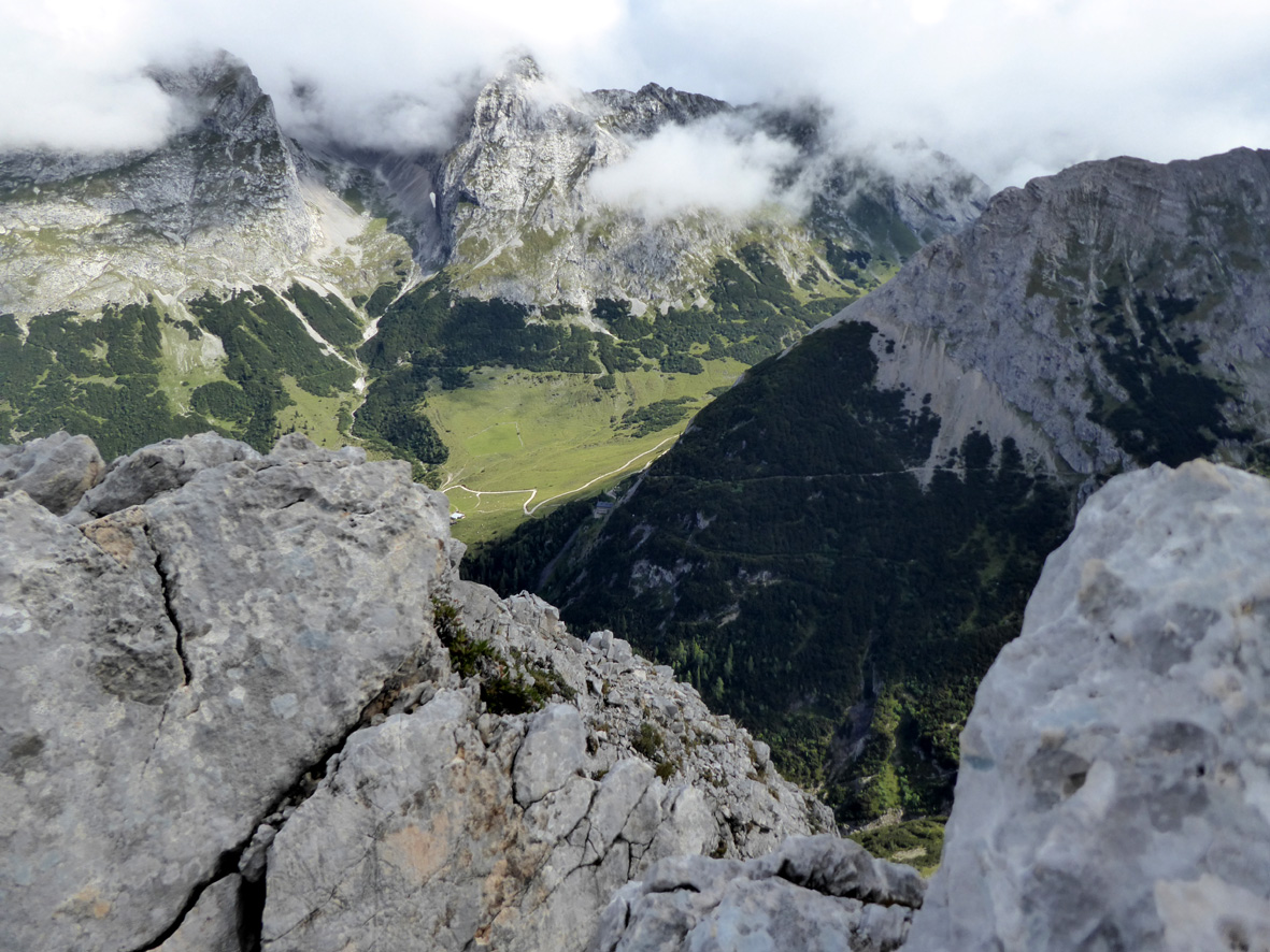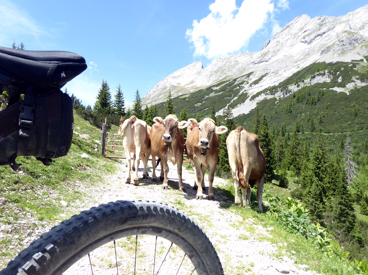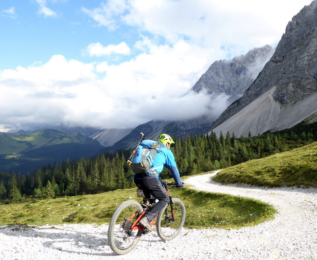 Hinunter durchs Schlauchkar zum Apres-Weißbier am Karwendelhaus, ehe es sich in der Abendsonne angenehm hinunter zum Kleinen Ahornboden und weiter durchs Johannistal nach Hinterrss rollte.