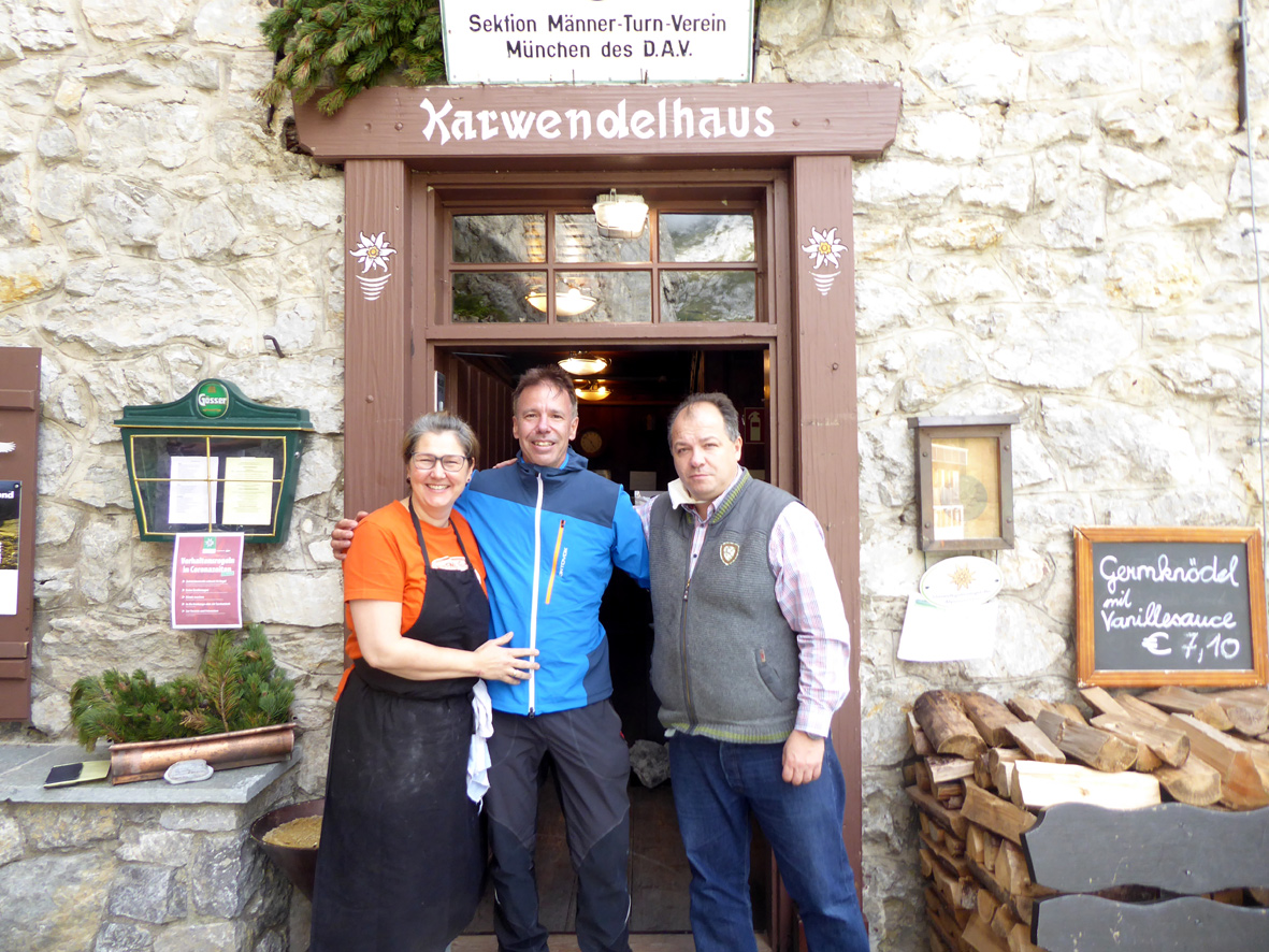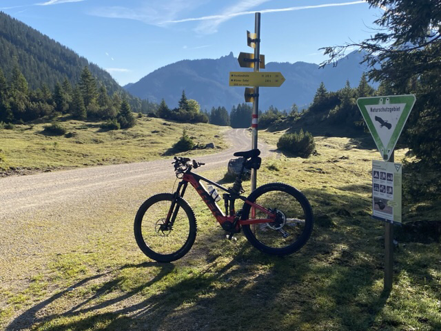 Weil die eigentliche Tour ja am Karwendelhaus beginnt, ging es dorthin mit dem Pedelec-MTB in flotten 54 Minuten ab der Mautstelle in Hinterriss (übrigens, weil manche ja glauben, so ein E-Bike fährt den Berg von selbst hinauf: Irrtum, der Puls war durchweg zwischen 140 und 150 - es geht halt nur schneller, und das was ja das Ziel, nämlich zügig am Karwendelhaus zu sein).