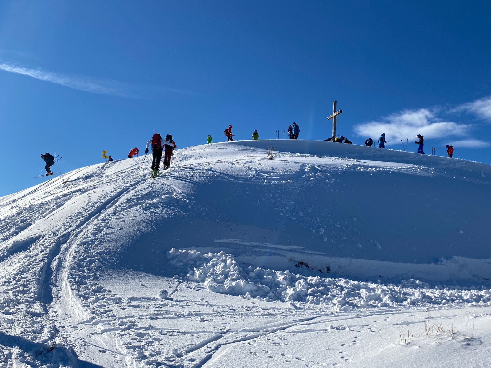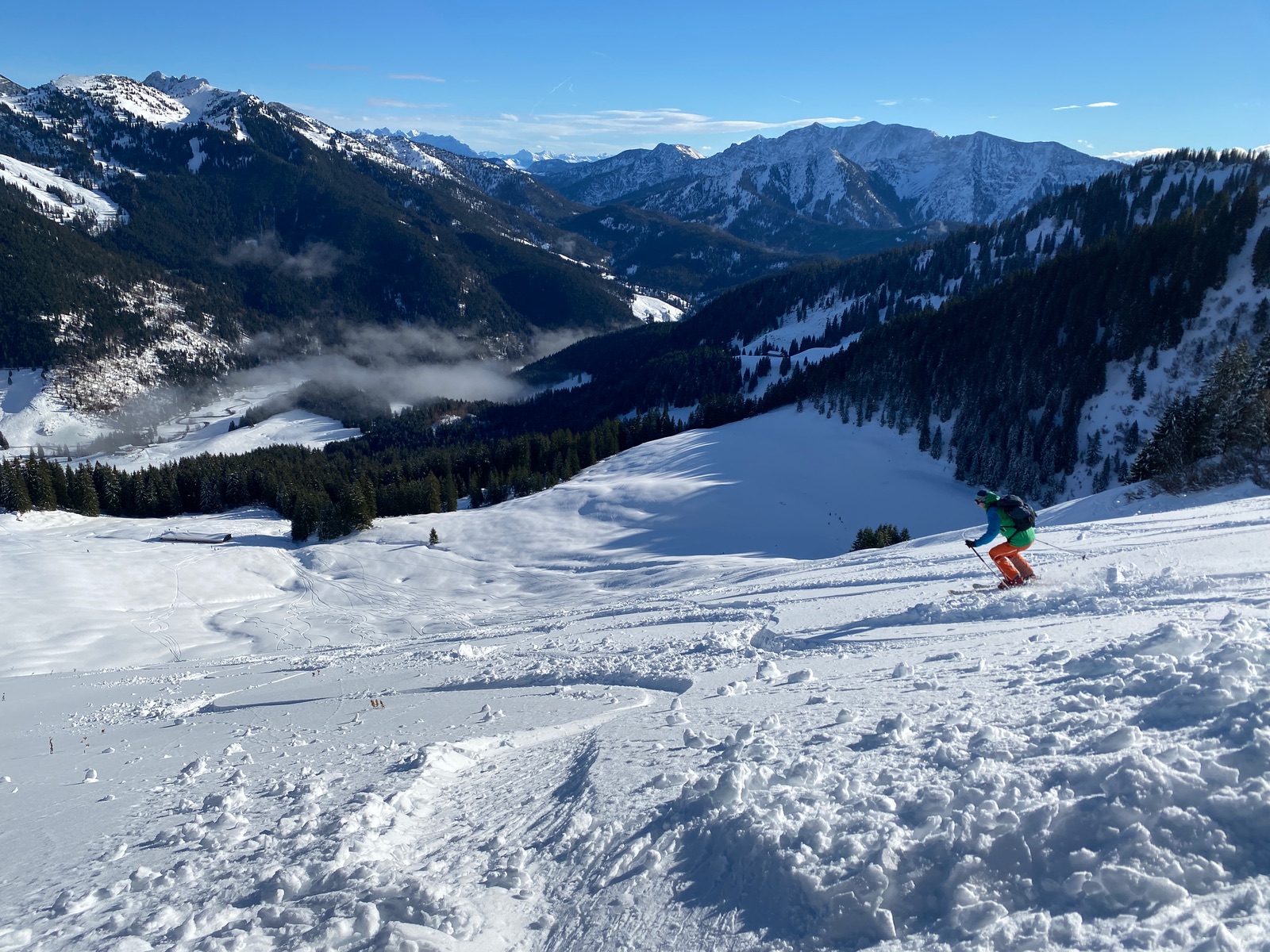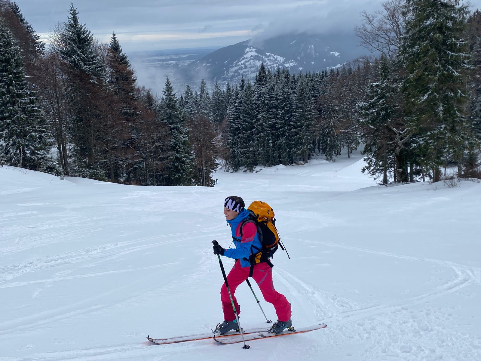 Vom Kurvenlift über den Firstalmkessel in leicht batzigem Schnee recht einsam hinauf zum Stümpfling. Als wir gerade abfellten, kam die Pistenraupe - teils wird schon präpariert. Abfahrt Stümpfling Richtung Valepp gut im Mix zwischen Präparation und „wildem Schnee“. Was sehr negativ auffiel: Viele Aufsteigende vom Stümpflingparkplatz latschten entgegen aller Regeln nicht am Rand, sondern mittig die Piste rauf - super gefährlich, total unnötig und alle vernünftigen Tourengeher leider in Verruf bringend.