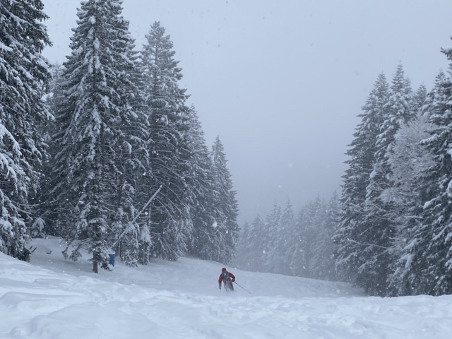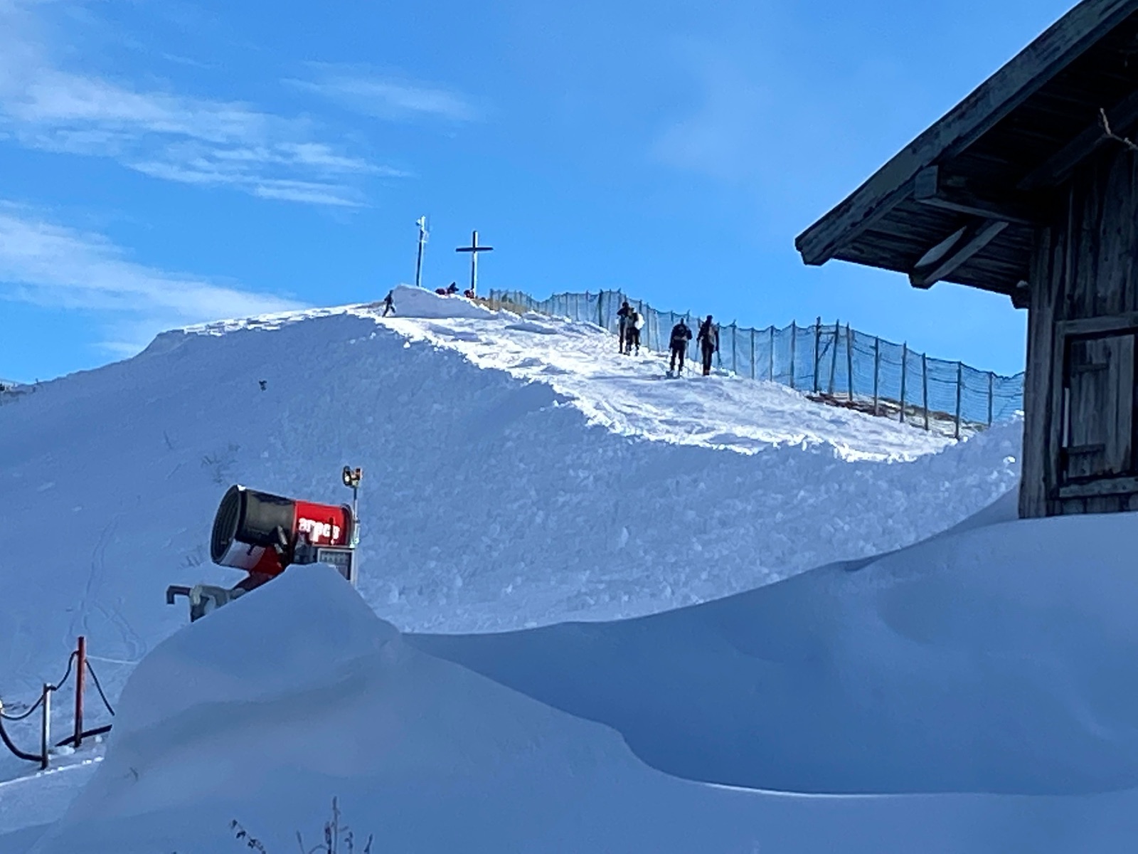 Ob schon was im freien Gelände geht? Mit Steinski sicher, aber wir hatten gute Bretter dabei und wählten für diese zum Einlaufen in die neue Saison die vom Wochenende her präparierte Piste. Die gehörte heute allein den vielen Tourengehern, ein paar schwärmten auch Richtung Gilfert aus. Reichlich Naturschnee schon am Parkplatz (5 Euro), trotzdem liefen morgens noch ein paar Schneekanonen. Jenseits der am Wochenende gewalzten Pisten (da war zwei Tage kommerzieller Skibetrieb) fluffiger Pulver, 50 cm und mehr. Fazit: perfekt zum lockeren Umstellen von Sommer- auf Wintermodus. Wenn es nochmal draufschneit, wird es inneralpin ab 1300 m richtig gut.