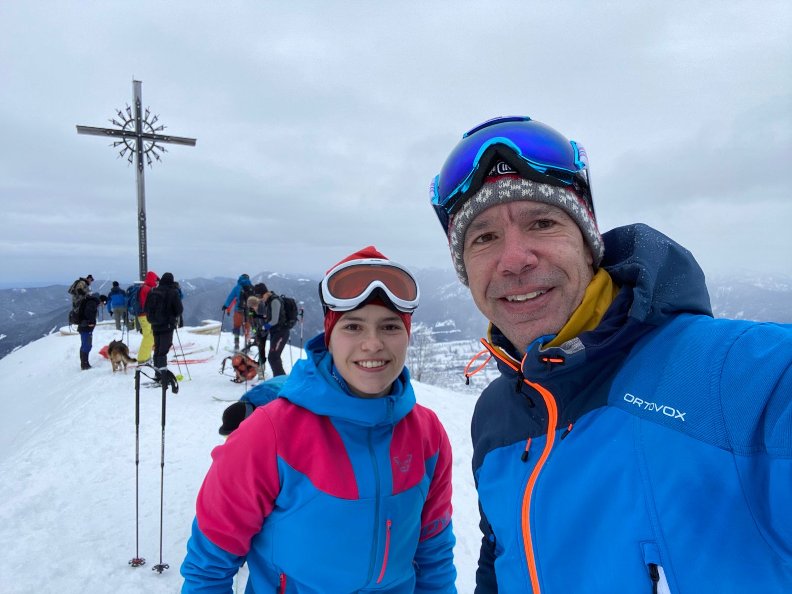 Beim zweiten Aufstieg über die Grünseeroute zum Roßkopf trafen wir diese Klientel zum Glück nicht mehr an. Osthang war ein Sulz-Firn-Mix und schön zu fahren. Nordhang präpariert, geht alles ohne Steinski.
