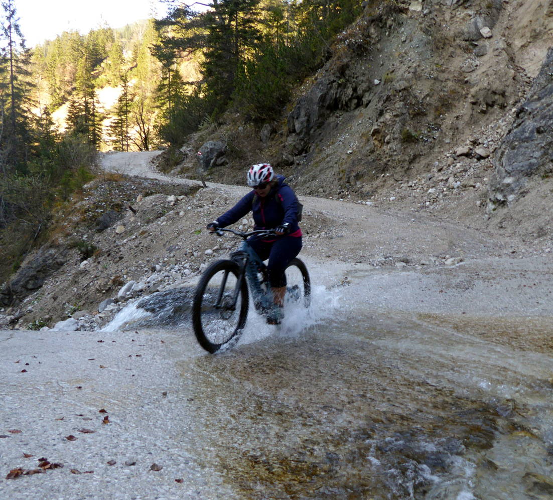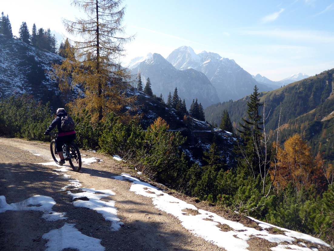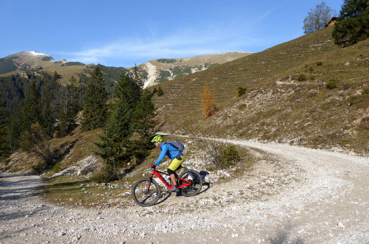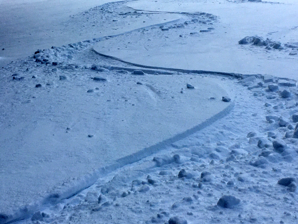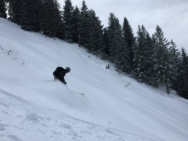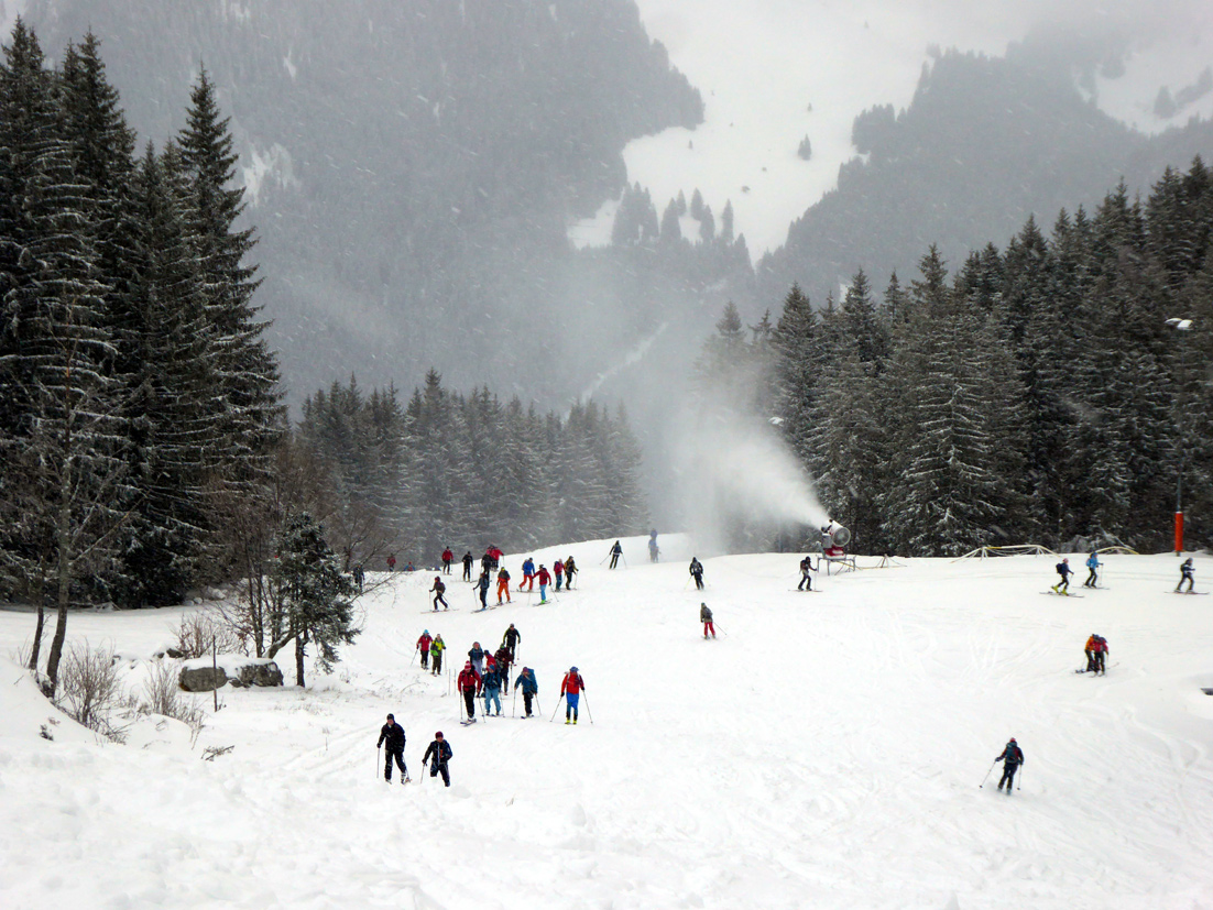 Gefahreneinschätzung: Keine Lawinengefahr, kaum Steinkontakt -aber auf die vielen Schlittenfahrer muss man, vor allem im Talbereich, ein Auge haben. Sie lassen sich aber alle gut umkurven.