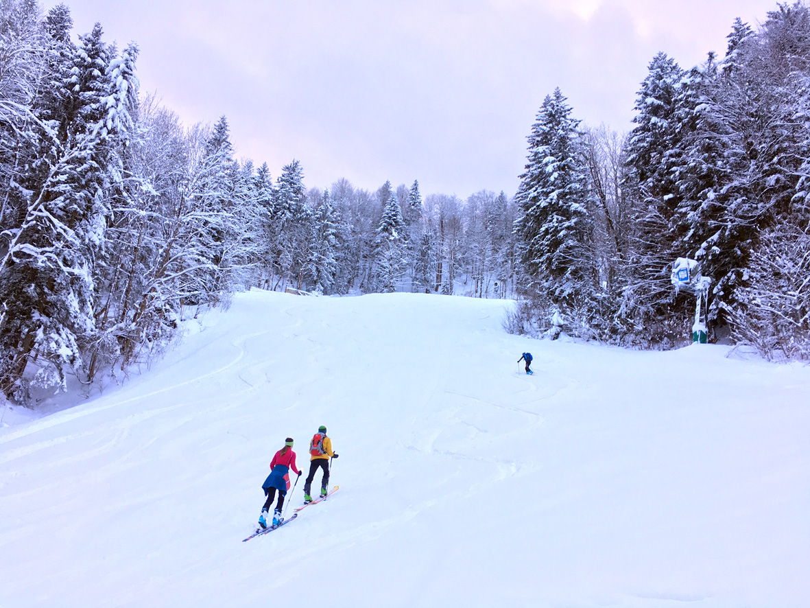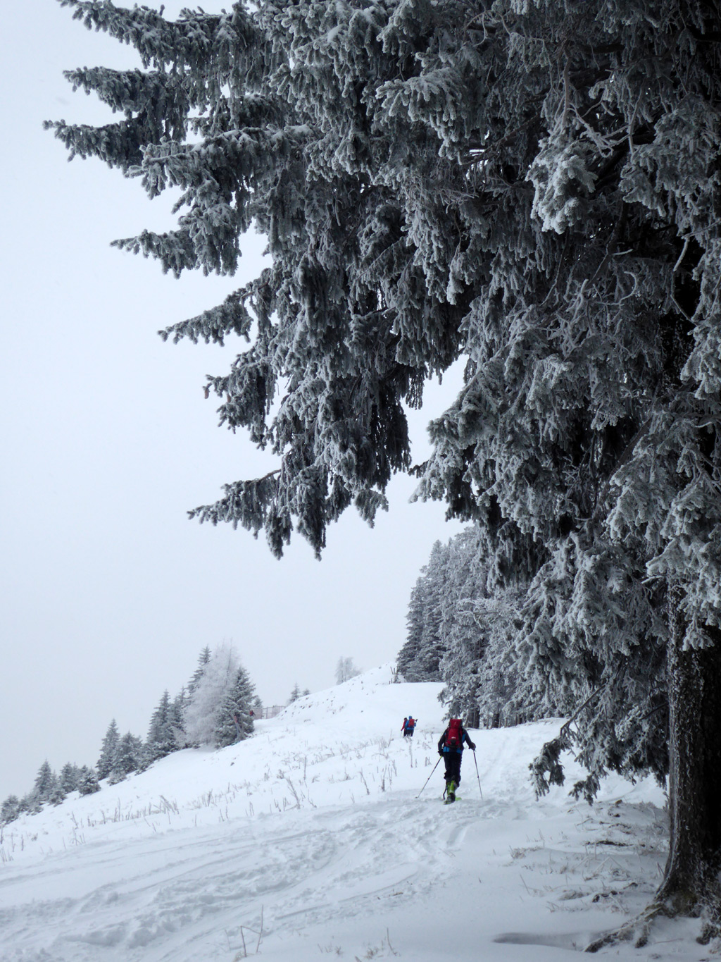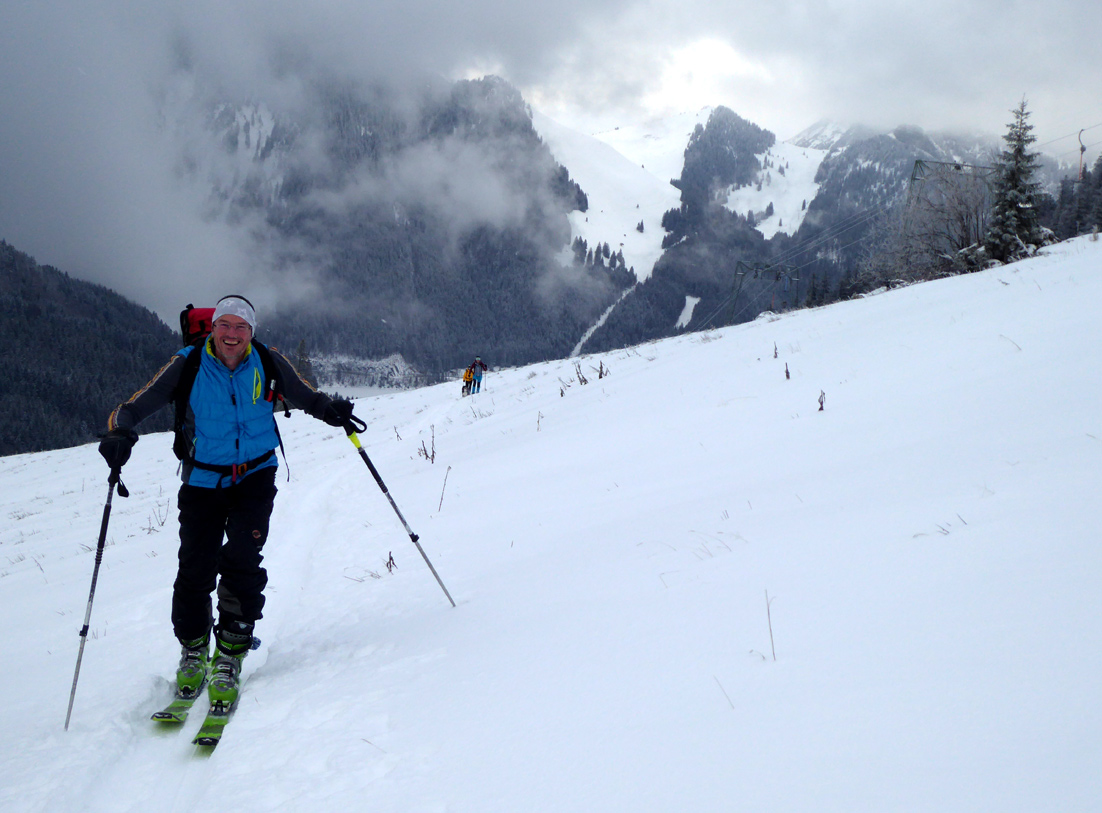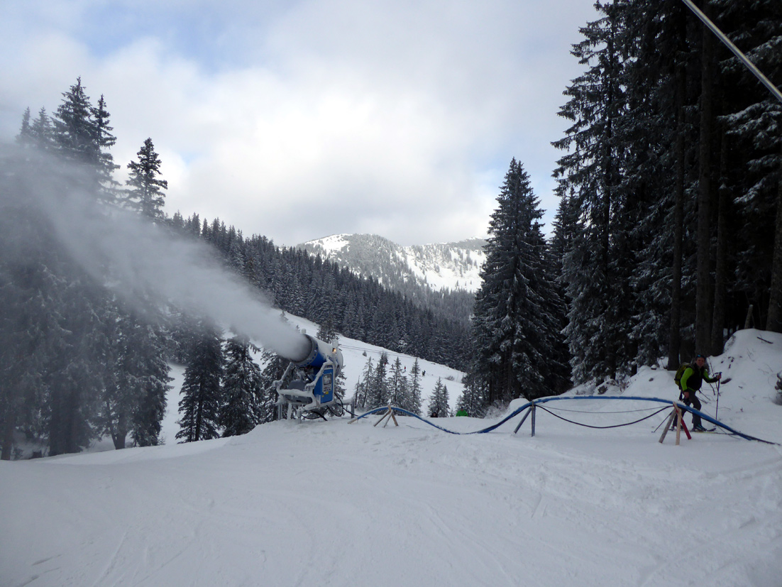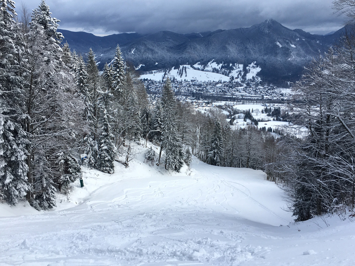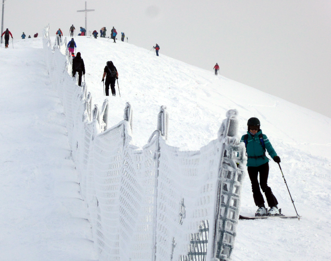 Tourenverhältnisse: Es gibt ja schon zwei aktuelle Posts zum Spitzingsee (vom Fasangartner und vom Bernhard), also fasse ich mich kurz. Wir haben heute versucht, uns jenseits der Massen zu bewegen (gefühlt waren sicher 2500 Leute unterwegs) - Start schon um 8.30 Uhr am Parkplatz Kurvenlift, der zu diese Zeit noch relativ frei war. Aufstieg über die Dreitannenroute (oberhalb vom Firstalmkessel) zum Stümpfling, erste Abfahrt bis auf Höhe Albert-Link-Hütte, Felle wieder rauf und dann zunächst links Richtung Stolzenberg zur Unteren Haushamer Alm, dort Querung zur Grünseealm und (nun linkshaltend) am Grünsee oberhalb vorbei auf den Roßkopf. Abfahrt über Nordhang und Stümpflingpiste zum Kurvenlift, insgesamt gut 900 Höhenmeter. Bei unseren Aufstiegsvarianten war es vergleichsweise einsam (gegenüber dem Bandwurm auf der Stümpflingpiste). Bis zu 20 cm Neuschnee, der sich super fahren ließ. Schneekanonen laufen auch untertags, da muss man durch... Sonne ließ sich, entgegen der Prognose, kaum blicken - dafür hatten wir durch den zeitigen Start teils noch halbwegs unverspurte Pulverhänge. Bei der Heimfahrt um 12.20 Uhr fahren alle Parkplätze rappelvoll und der Bergaufstau der Langschläfer reichte die halbe Spitzingseestraße hinunter.