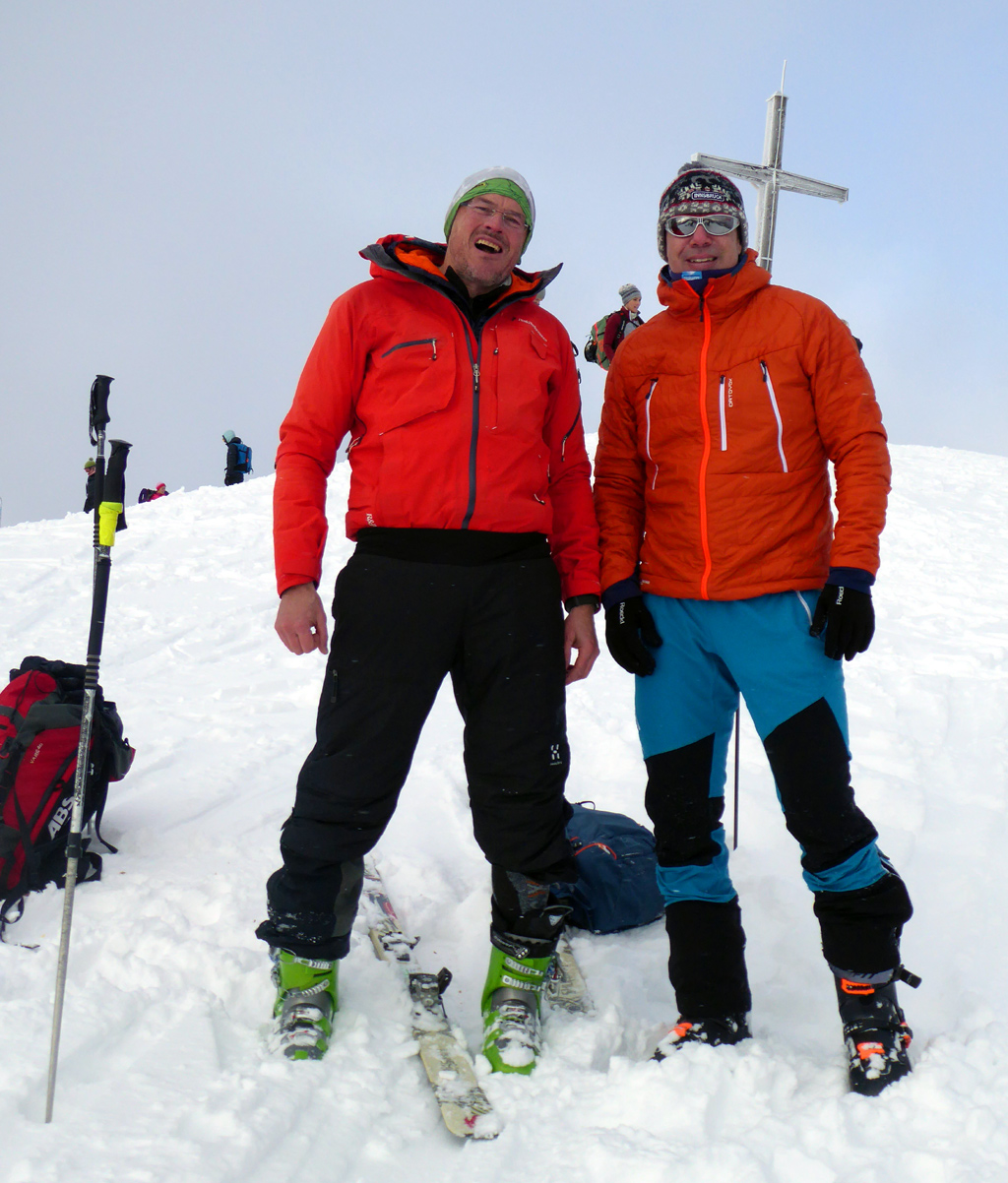 Sonstiges: Ziemlich kalt heute - meine Schorle ist mir am Roßkopfgipfel beim Trinken gefroren, das mitgebrachte Bier blieb im Rucksack. Und mein Tourenspezl Theo hatte glatt den üblichen Gipfelschnaps daheim vergessen...