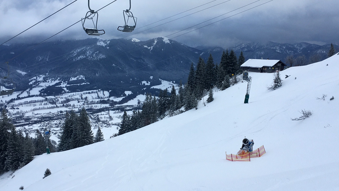 Prognose: Bleibt dank der Maschinenschneeunterlage gut und wird mit dem Schneefall am Montag richtig gut.