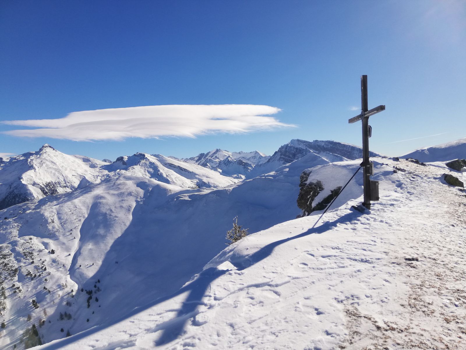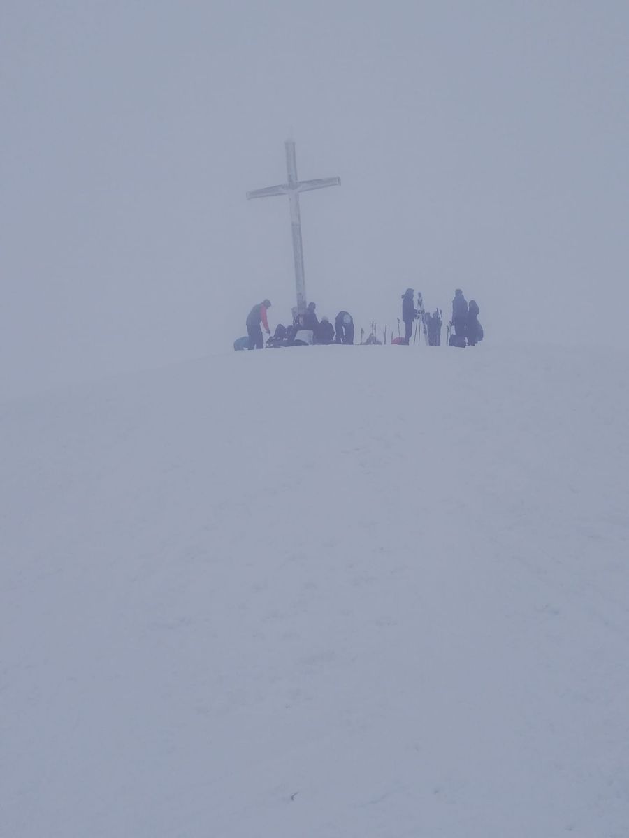 Am Gipfel ein Kreuz mit Buch von 1999, in diesem Jahr erst der siebte Eintrag.