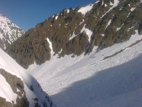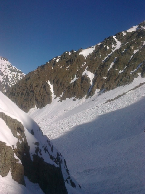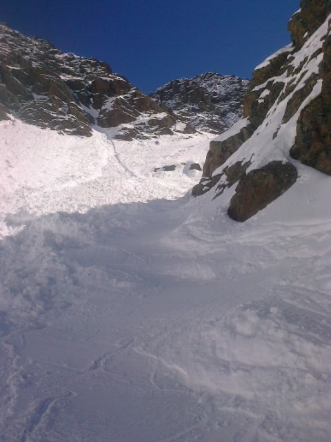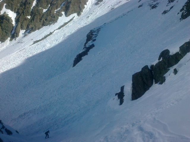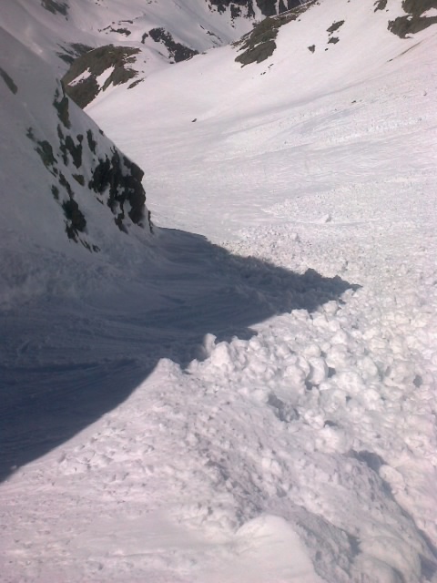 Lawinenabgang. Dieser hat den Aufstieg (und auch den Abfartsweg)