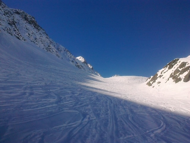 Im Aufstieg bin ich hier quer hochgestapft (kein oder kaum Platz für Spitzkehren)